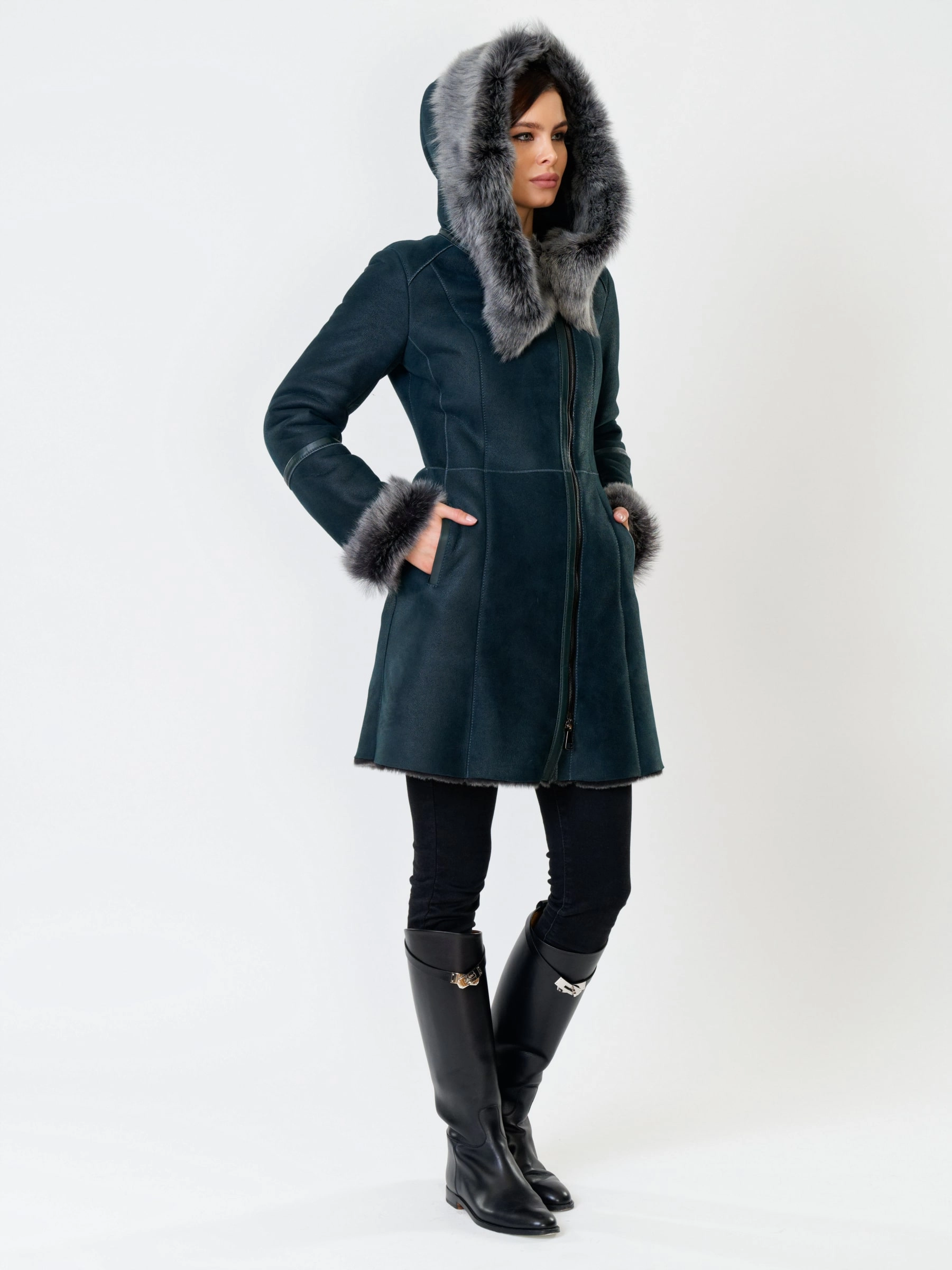 Элегантная длинная женская дубленка-косуха на молнии из натуральной овчины «мерино» длиной 90 см. Модель с несъемным капюшоном и манжетами, отделанными роскошной тосканской овчиной. Она обладает практичным полуприлегающим силуэтом и втачными рукавами. Этот повседневный must-have согреет в холода и дополнит как образ с джинсами и кедами, так и утонченные ансамбли с кожаными брюками или юбками. Он обеспечивает непрерывный комфорт и стиль.