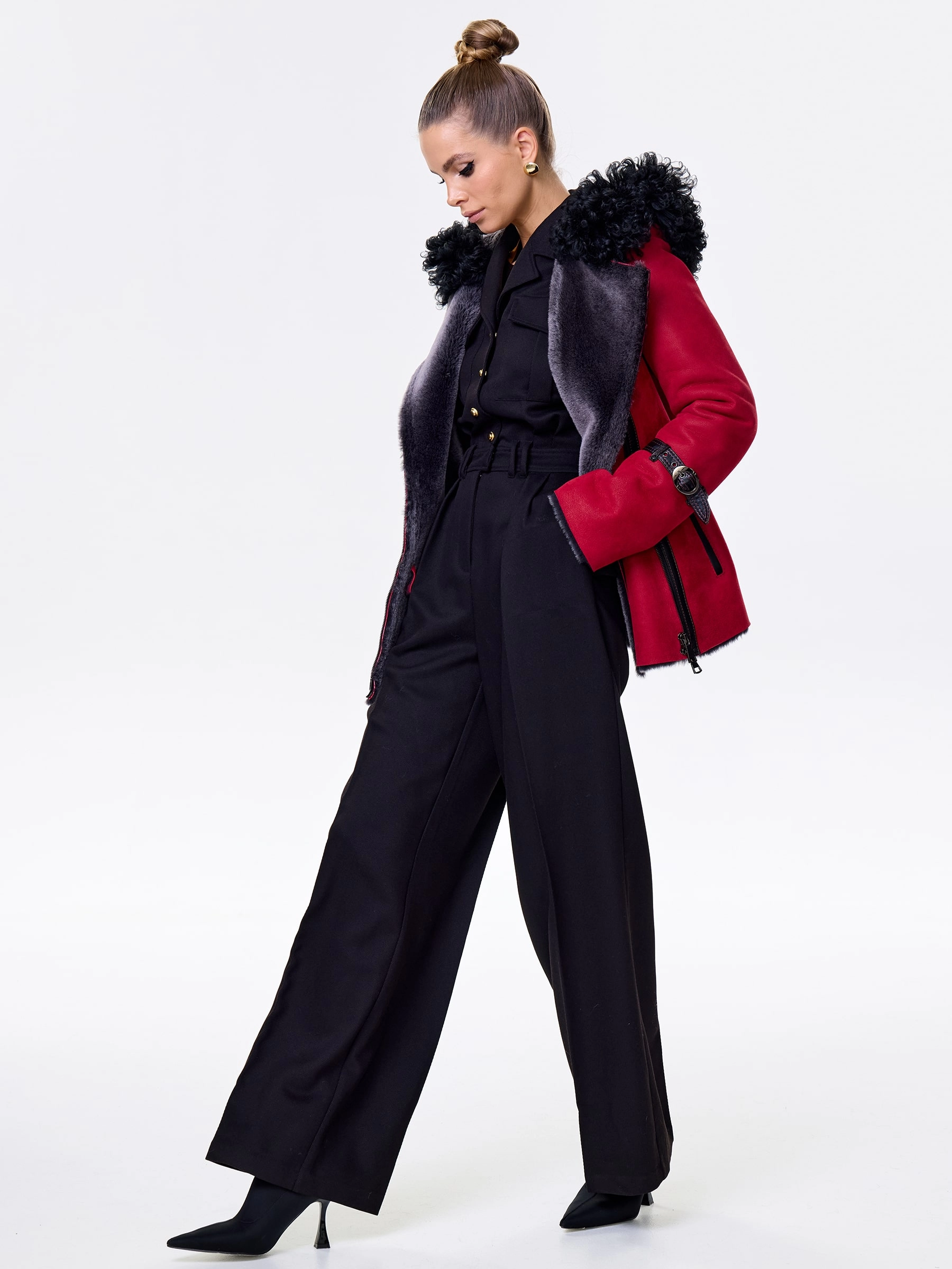 Стильная короткая дублёнка-косуха с капюшоном на молнии из натуральной овчины «мерино» длиной 66 см представлена в полуприлегающем силуэте с втачными рукавами, дополненными регулируемыми патами из натуральной кожи. Энергичный цвет модели подчёркивается контрастной отделкой несъёмного капюшона и манжет из эффектной овчины «тиградо». Максимально густой мех обеспечивает тепло и комфорт, а возможность изменить силуэт с помощью широкого ремня с пряжкой и дерзкий крой делают её универсальной. Идеально сочетается с кожаными брюками, грубыми ботинками, джинсами и объёмными свитерами для смелых повседневных образов!
