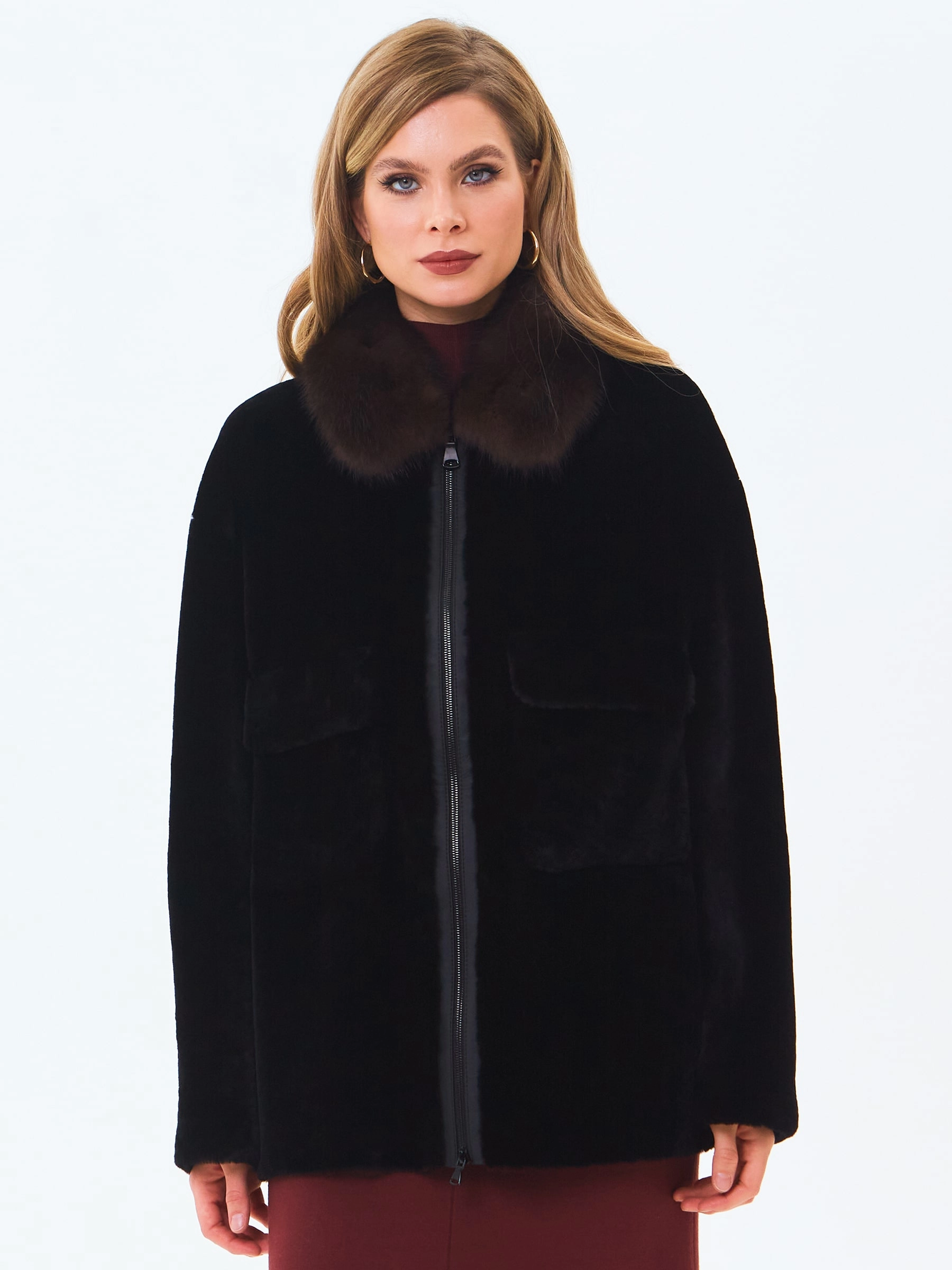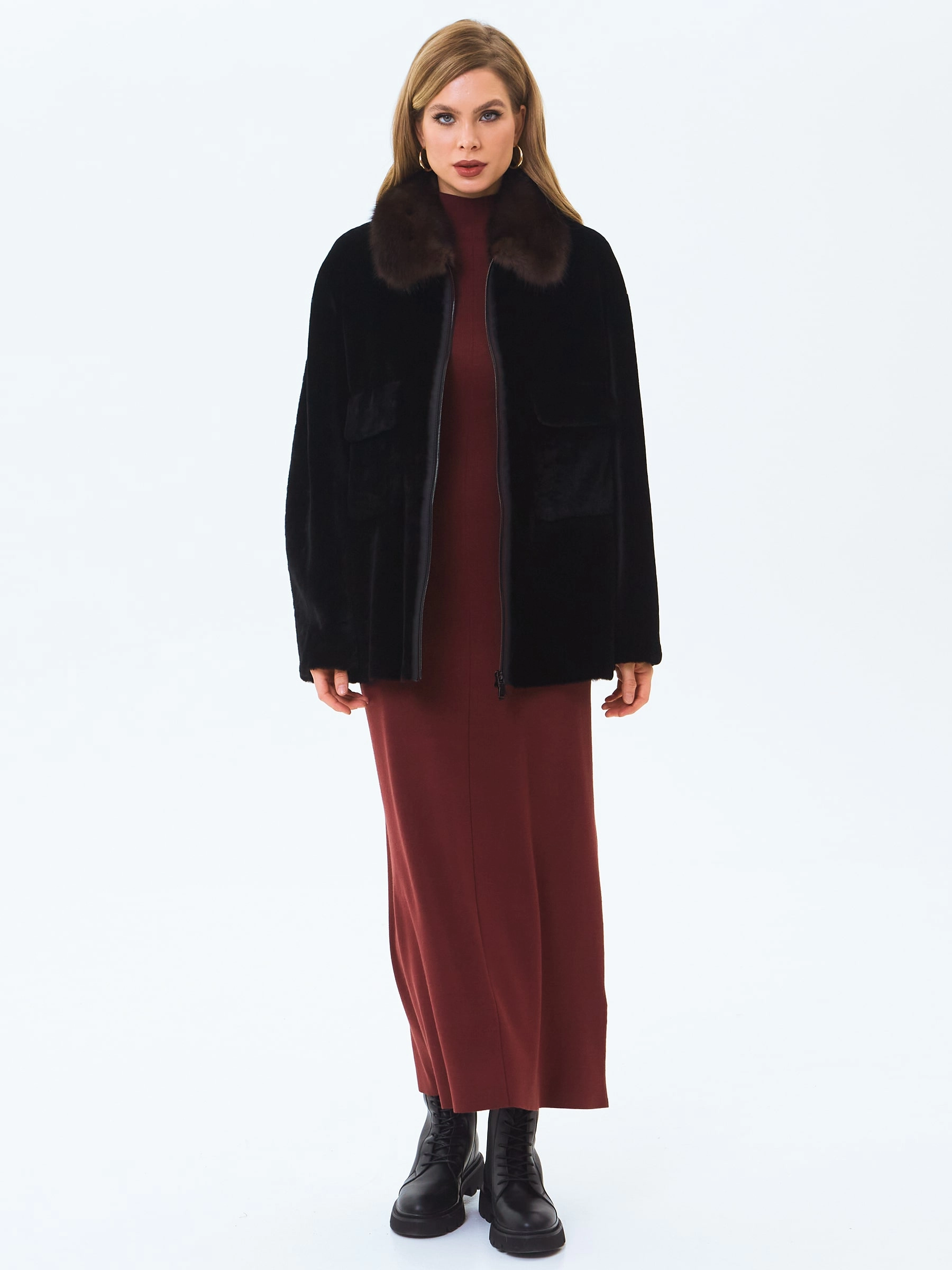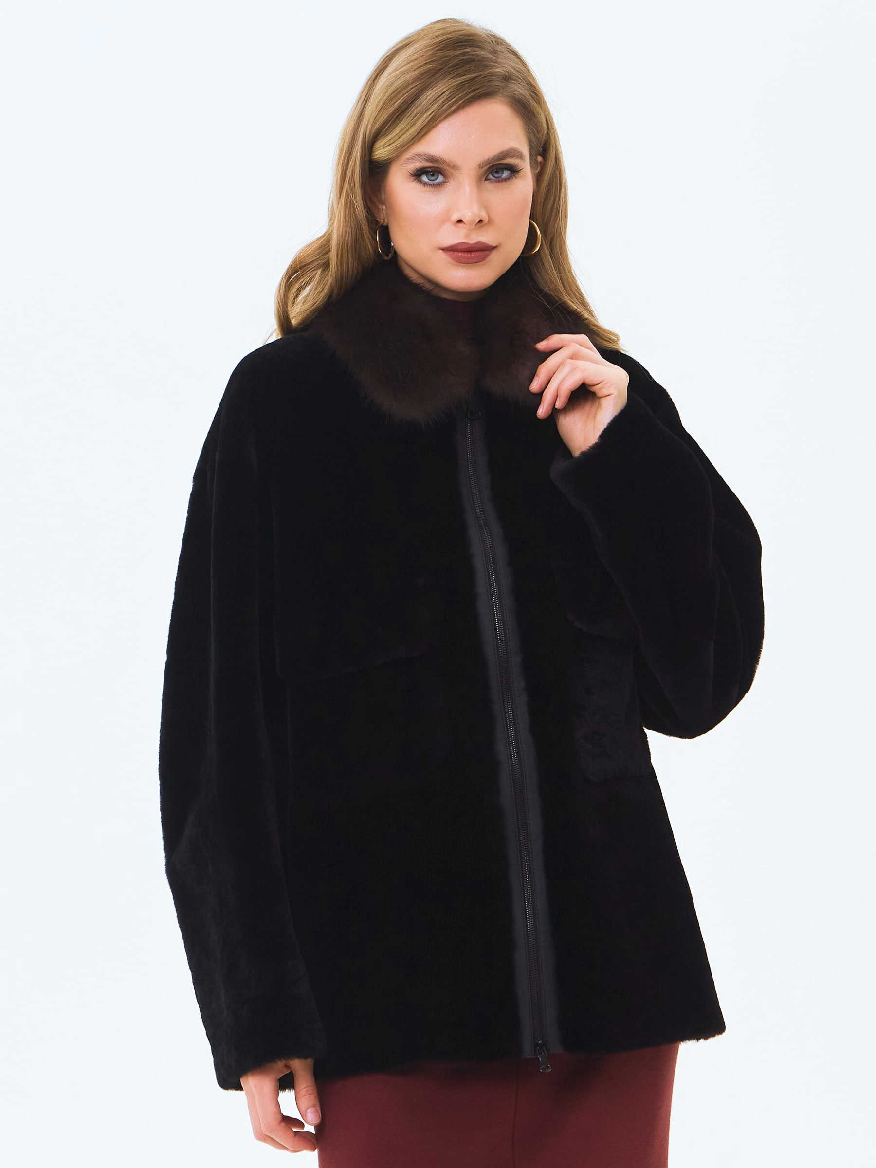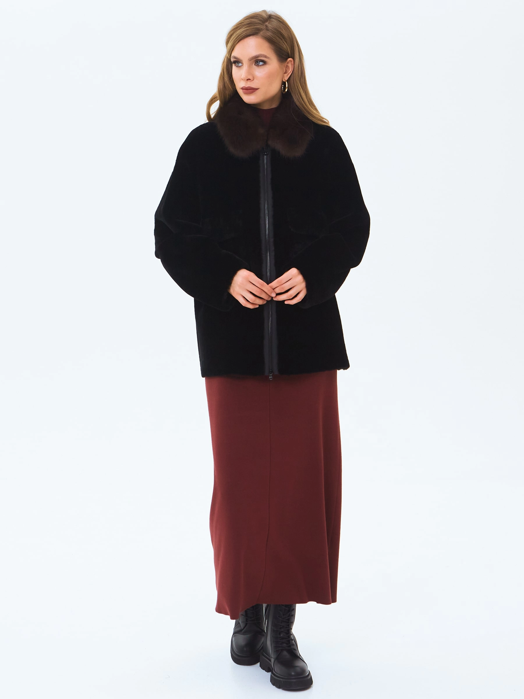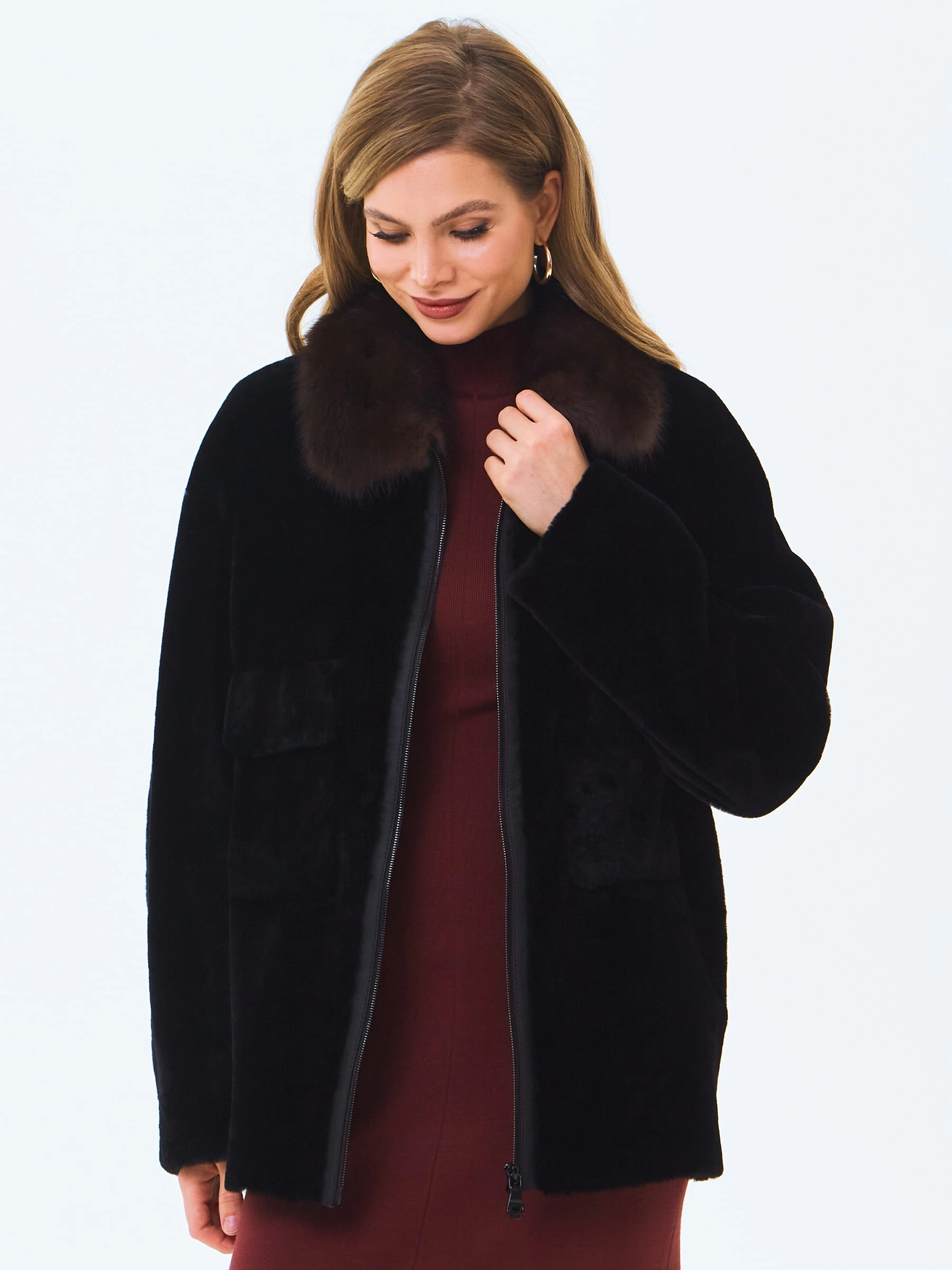 Товар дубленка женская из астрагана с воротником куницей 2063, черная, размер 46, артикул 64660 выполнен из астраган с застежкой молния. Рассчитан на сезон: зима. Длина изделия 70 см, силуэт свободный.