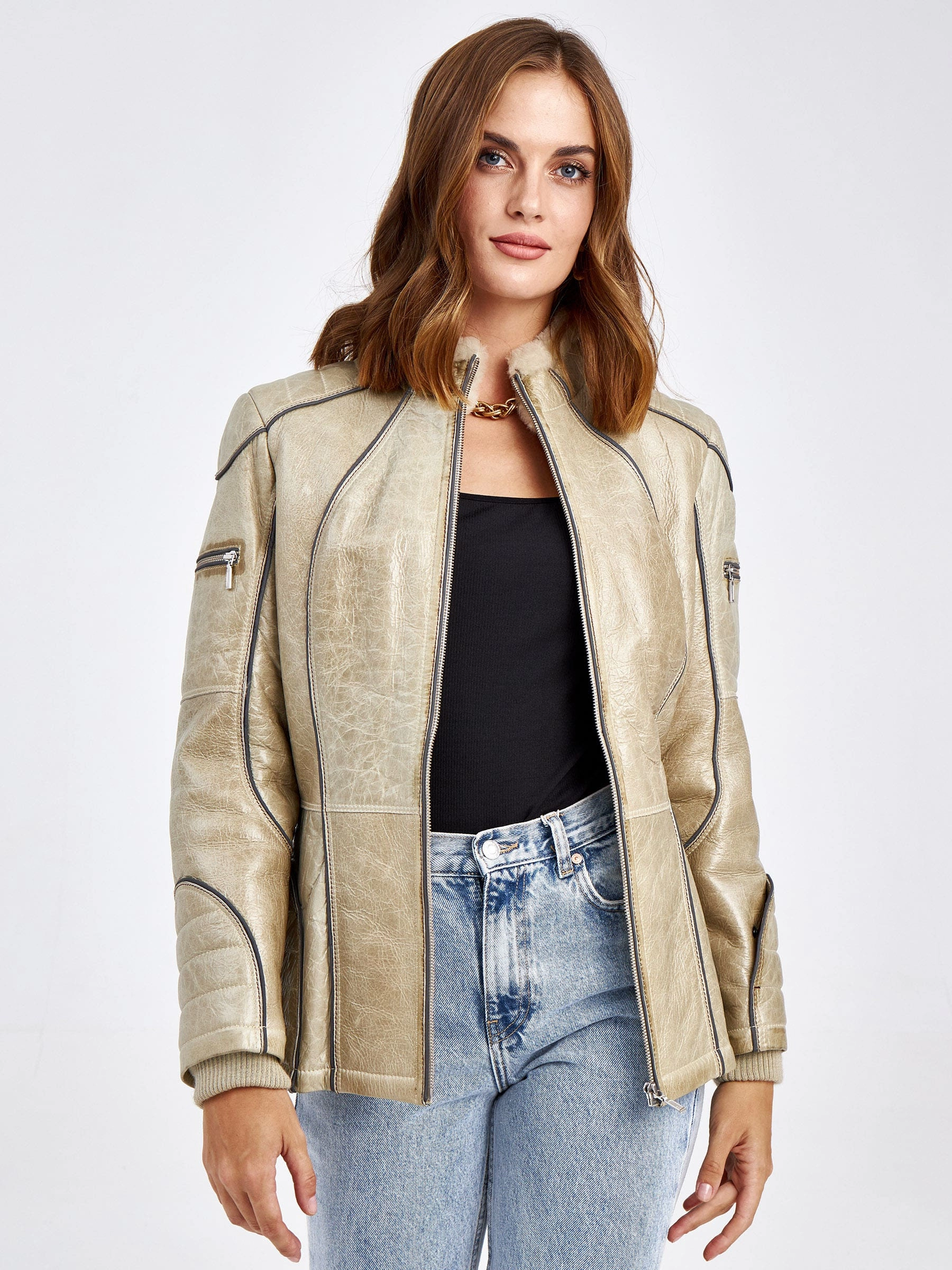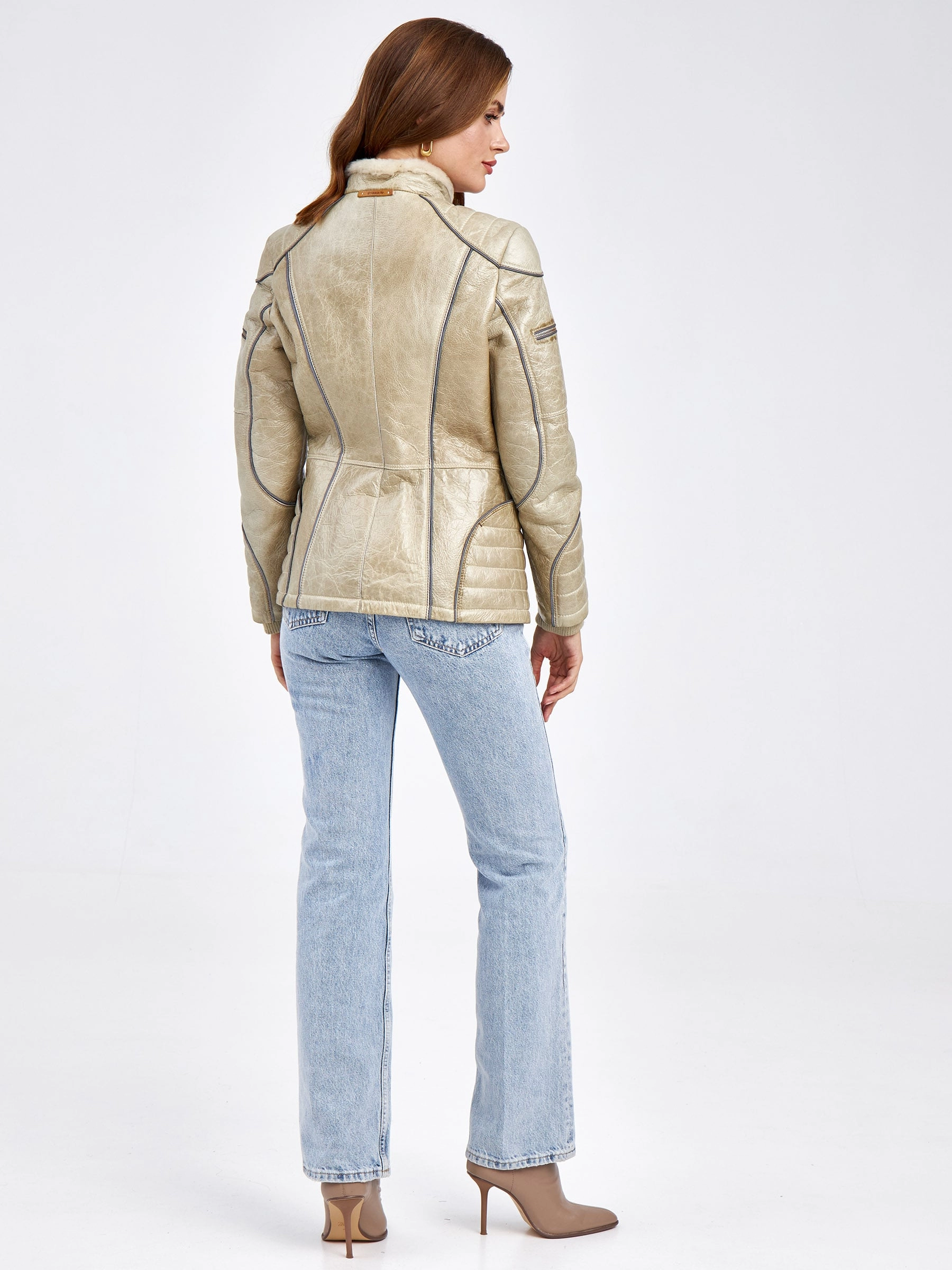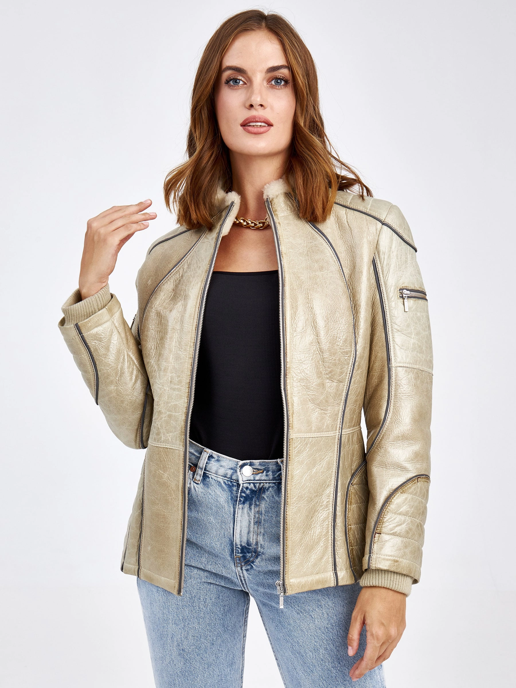 Спортивная короткая куртка из эластичной овчины «меринос» — идеальный выбор для активной городской жизни в сезоны осень-зима. Полуприлегающий силуэт длиной 51-74 см с втачными рукавами обеспечивает аккуратную, подвижную посадку, а сама мягкая кожа с коротковорсовым мехом внутри великолепно сохраняет тепло, не пропуская ветер. Модель выполнена в лаконичном утилитарном стиле: без капюшона, отделки и подкладки, что делает акцент на качестве материала и чистоте линий. Застёжка-молния и воротник-стойка добавляют образу динамики и завершённости. Эта куртка станет вашим надёжным и стильным спутником в прохладную и холодную погоду.