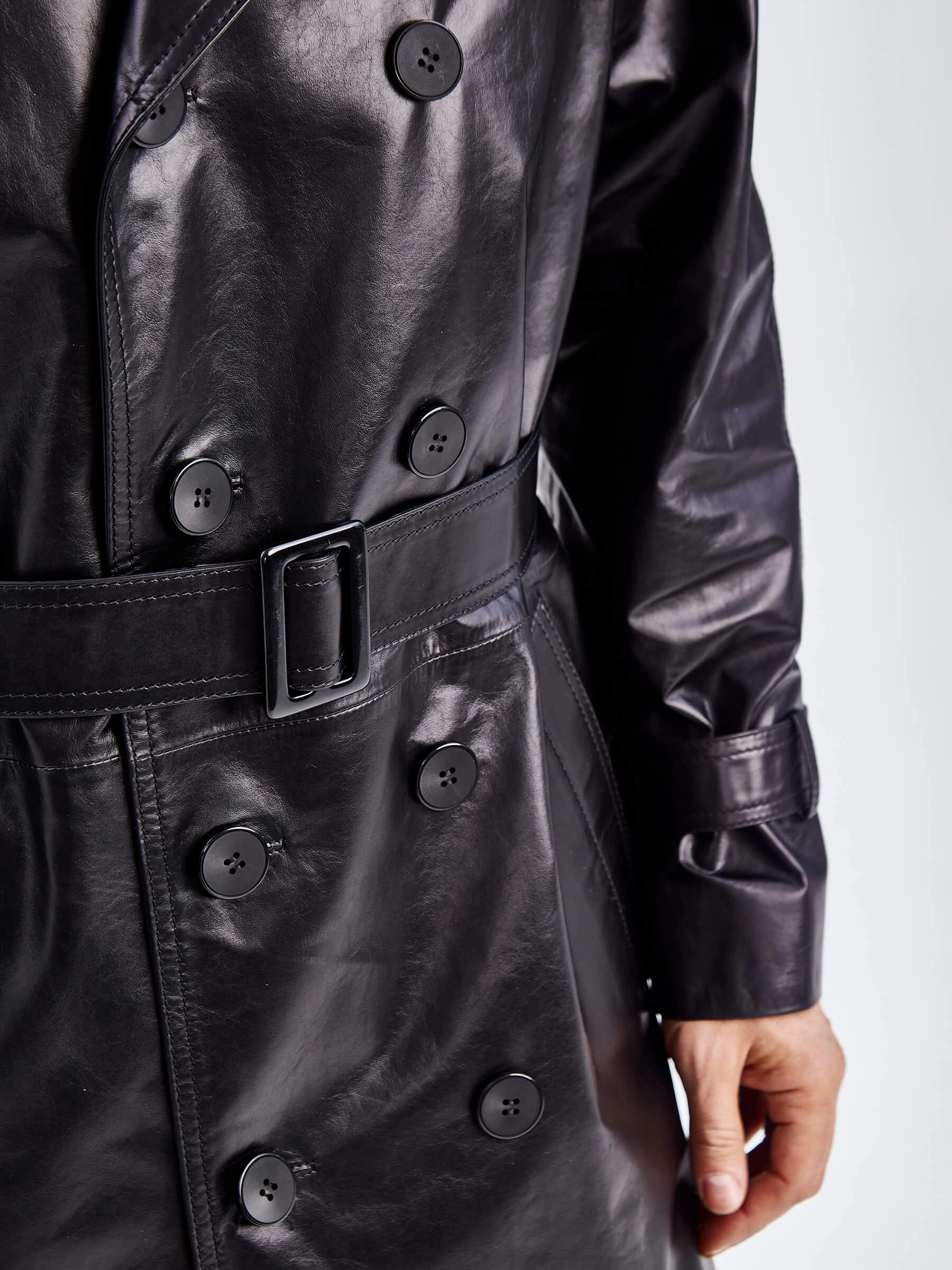 Товар двубортное мужское кожаное пальто премиум класса 553, черное, размер 52, артикул 71340 выполнен из натуральной кожи с застежкой пуговицы. Рассчитан на сезон: демисезон. Длина изделия 113 см, силуэт прямой.