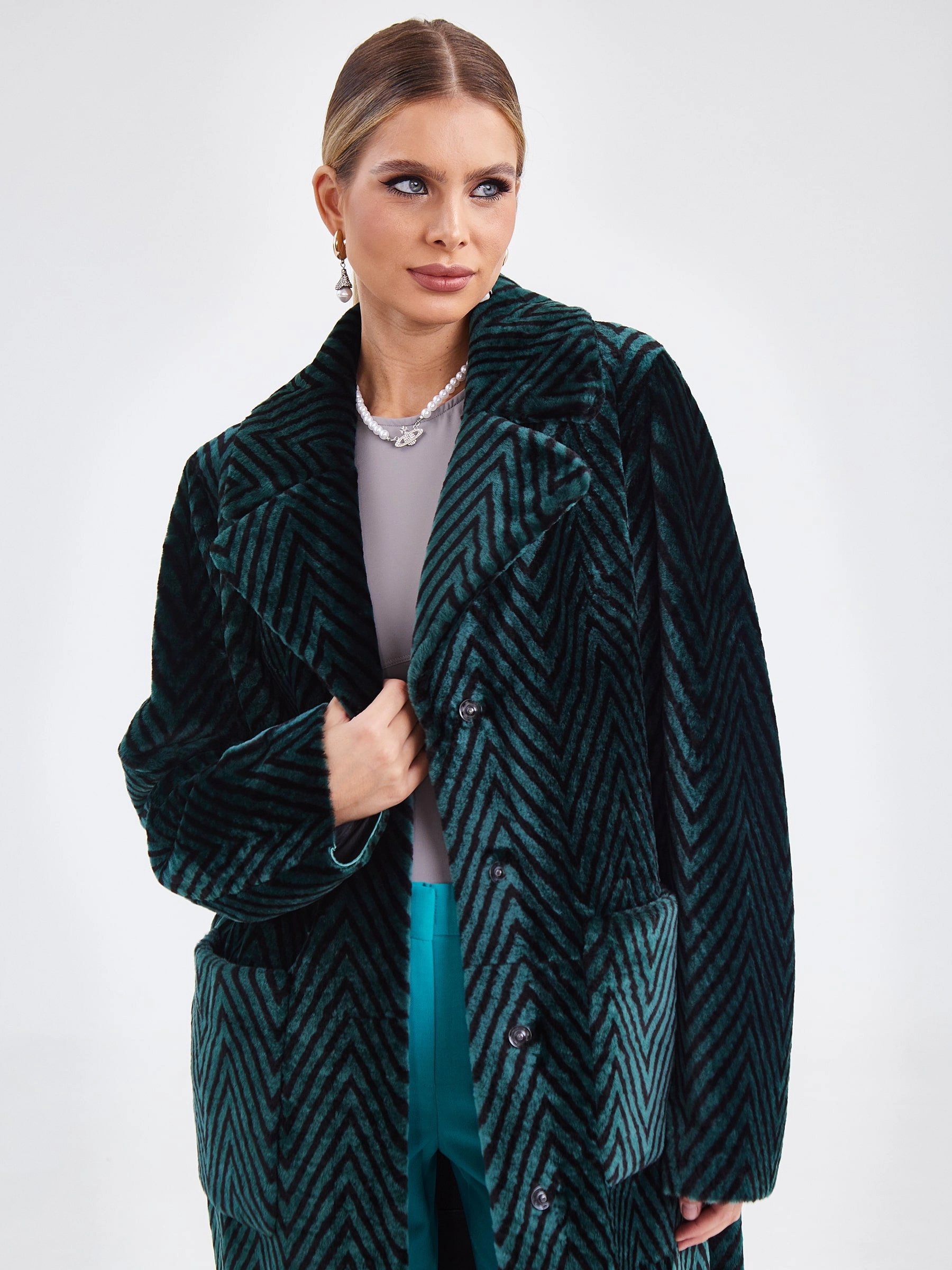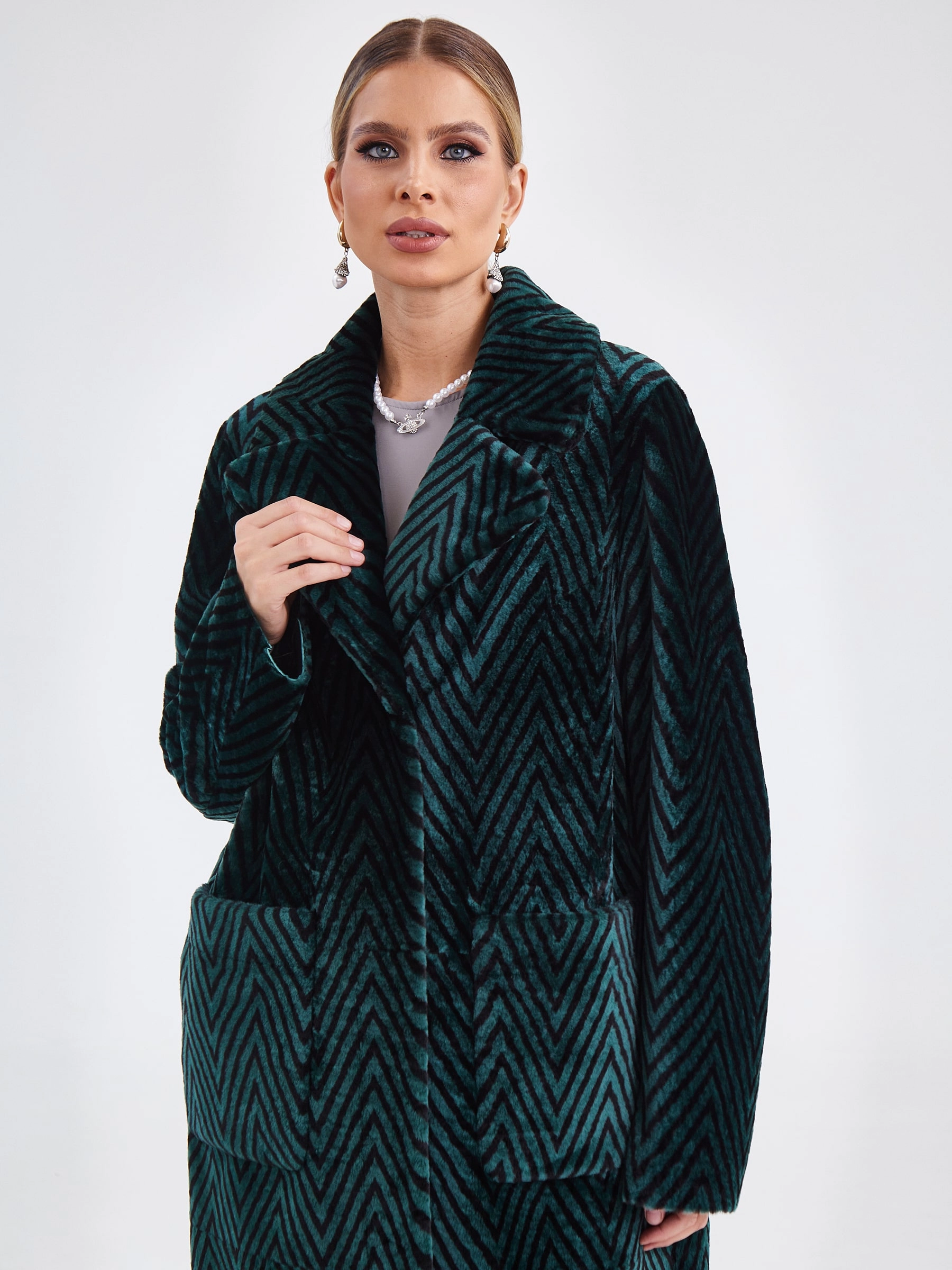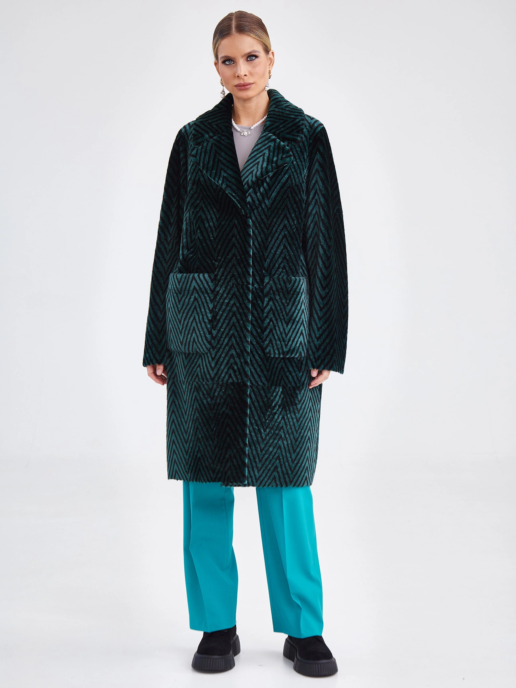 Двусторонняя женская дубленка премиум класса 2019, зеленая, размер 48, артикул 61200