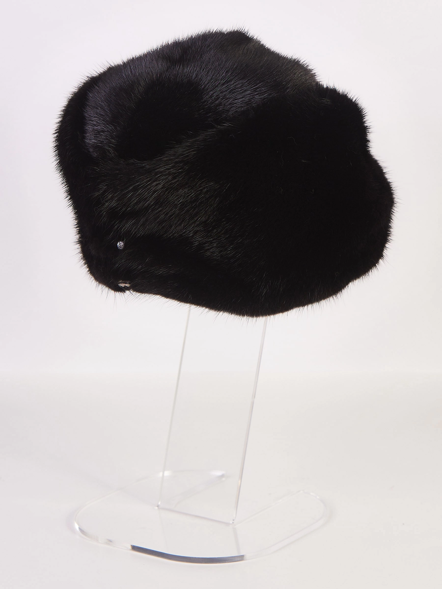 Головной убор из меха норки женский Графиня, черный, размер 58, артикул 51540
