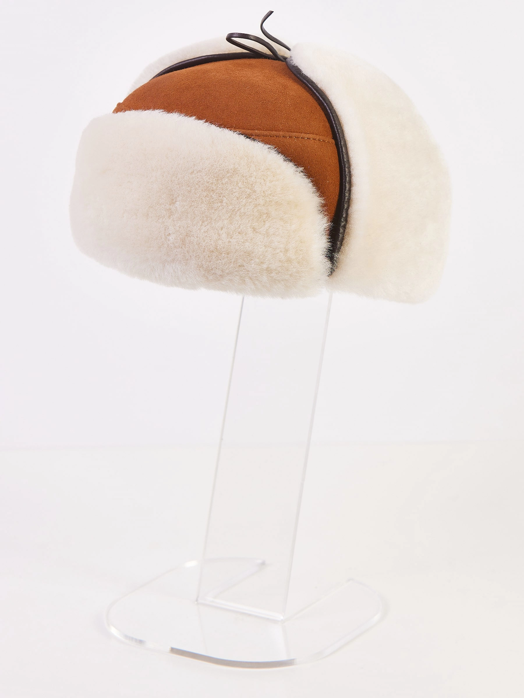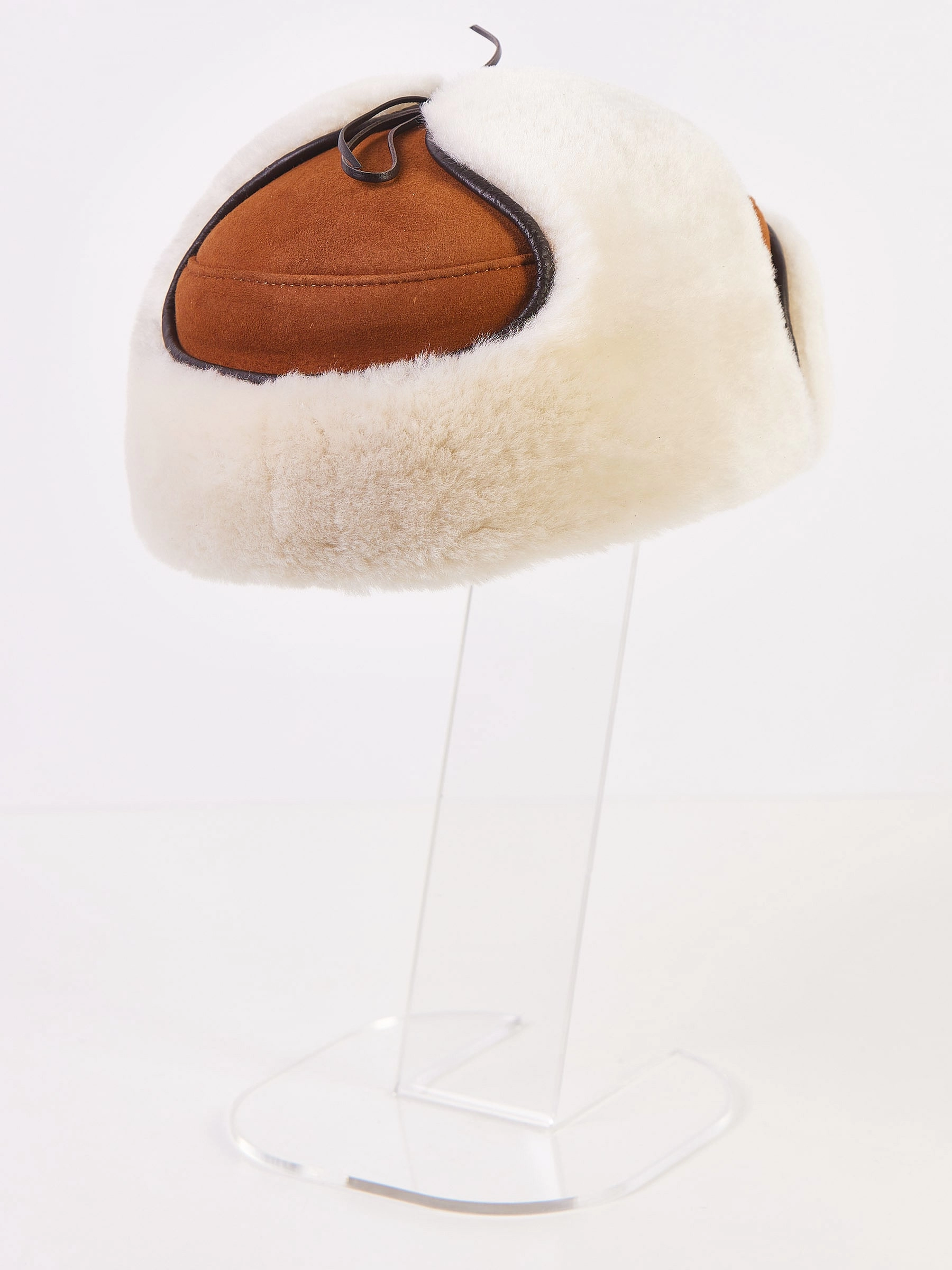 Мужская шапка-ушанка выполнена из меховой овчины в комбинации с натуральной замшей. Мех имеет высокую износостойкоть и сохраняет теплозащитные свойства. Глубокая и комфортная посадка. Меховые ушки можно легко завязать под подбородком для максимальной защиты от мороза или сзади с помощью двух узких кожаных шнурков.