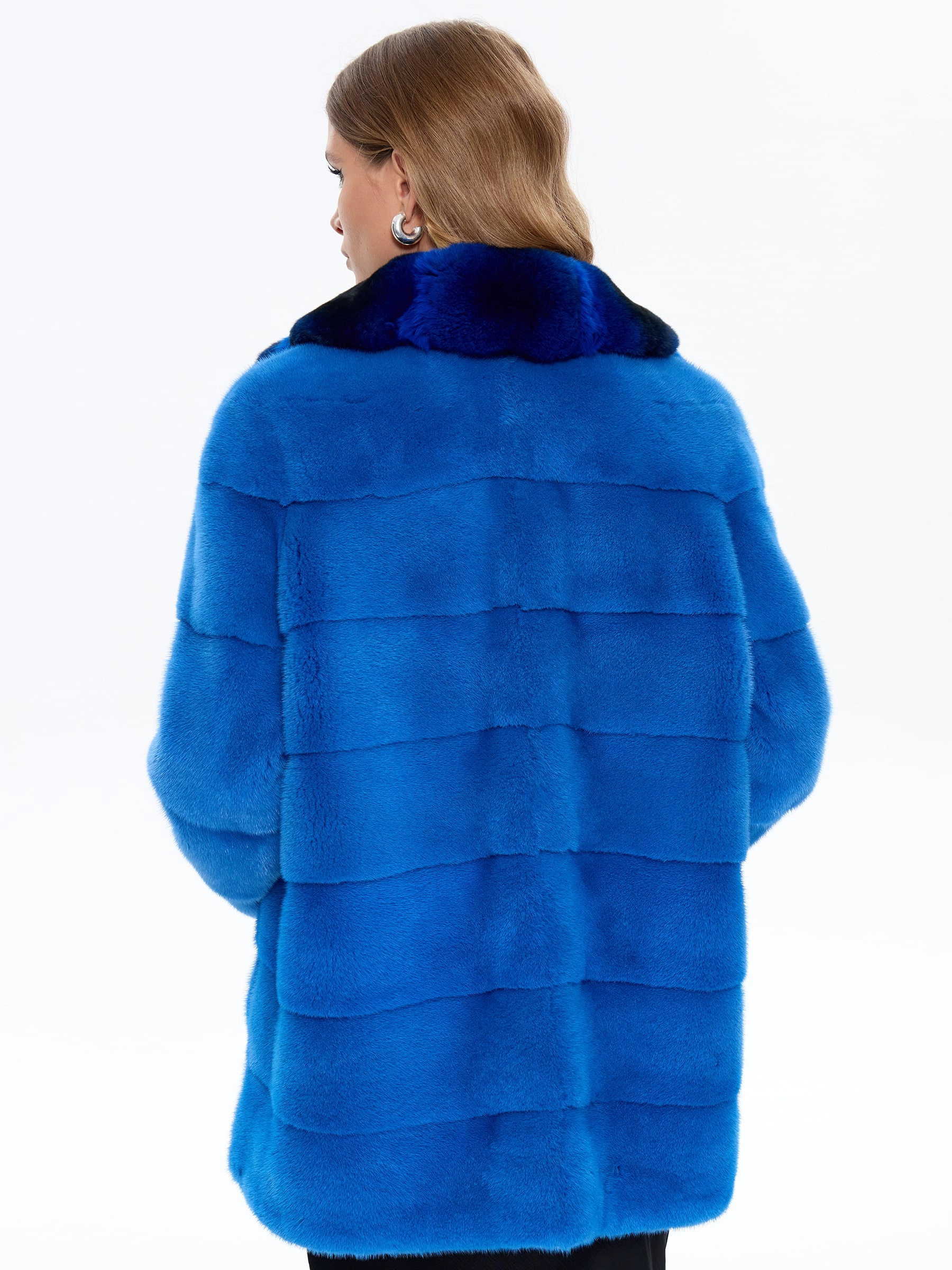 Голубая норковая шуба с шиншилой 2А, размер 54, артикул 65460