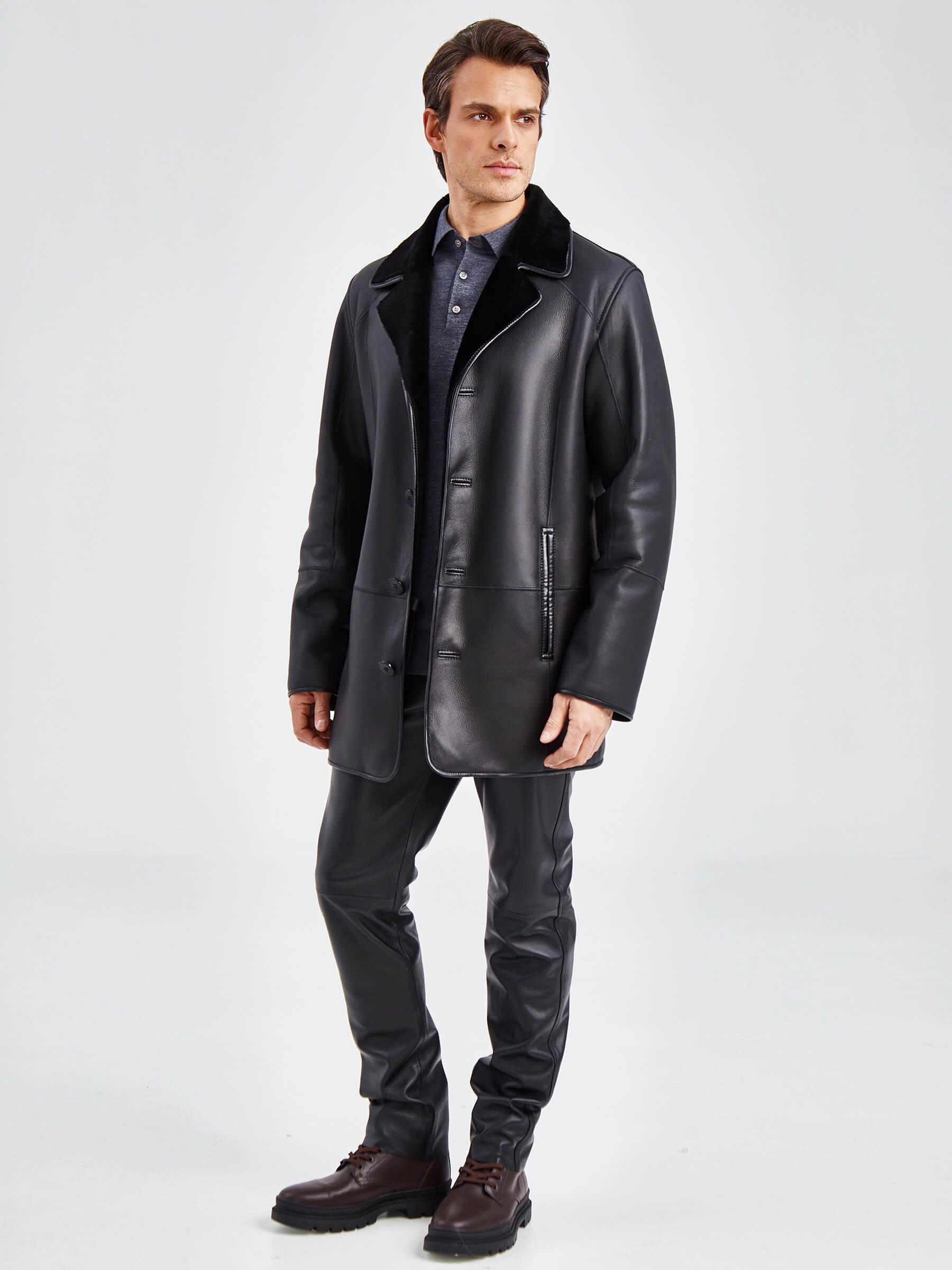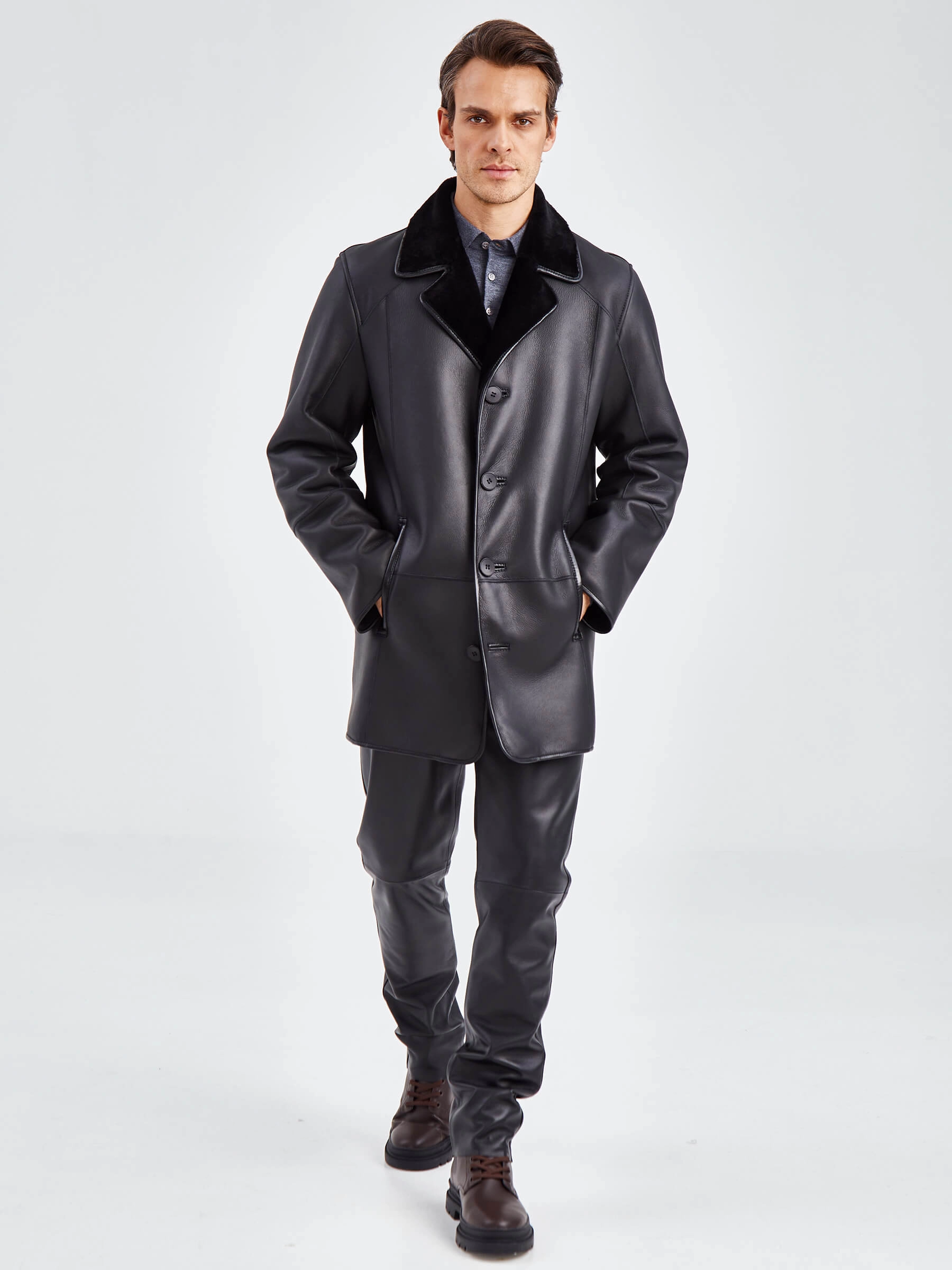 Классическая мужская дубленка премиум класса 135(пр), черная, размер 56, артикул 71400