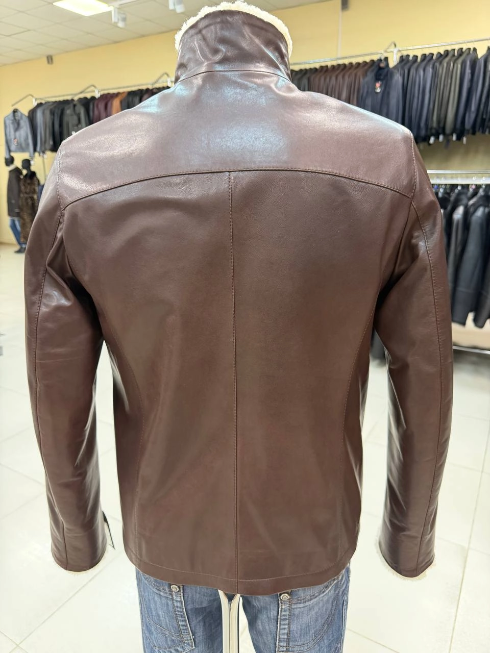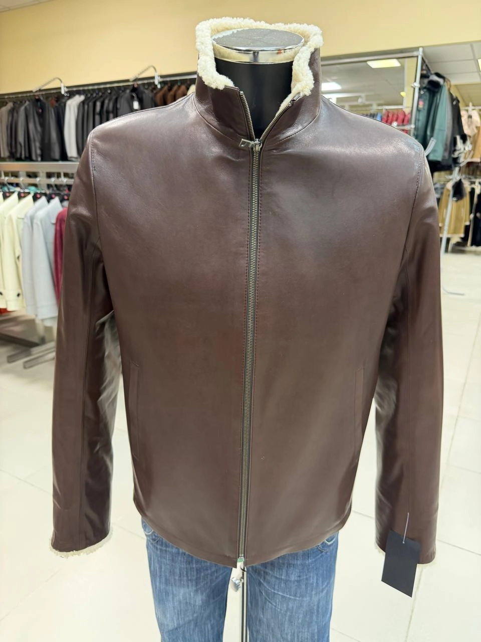 Товар коричневая короткая мужская кожаная дубленка премиум класса 564мех, размер 50, артикул 29830 выполнен из овчина " керли" с застежкой молния. Рассчитан на сезон: оснь-зима. Длина изделия 67 см, силуэт прямой.