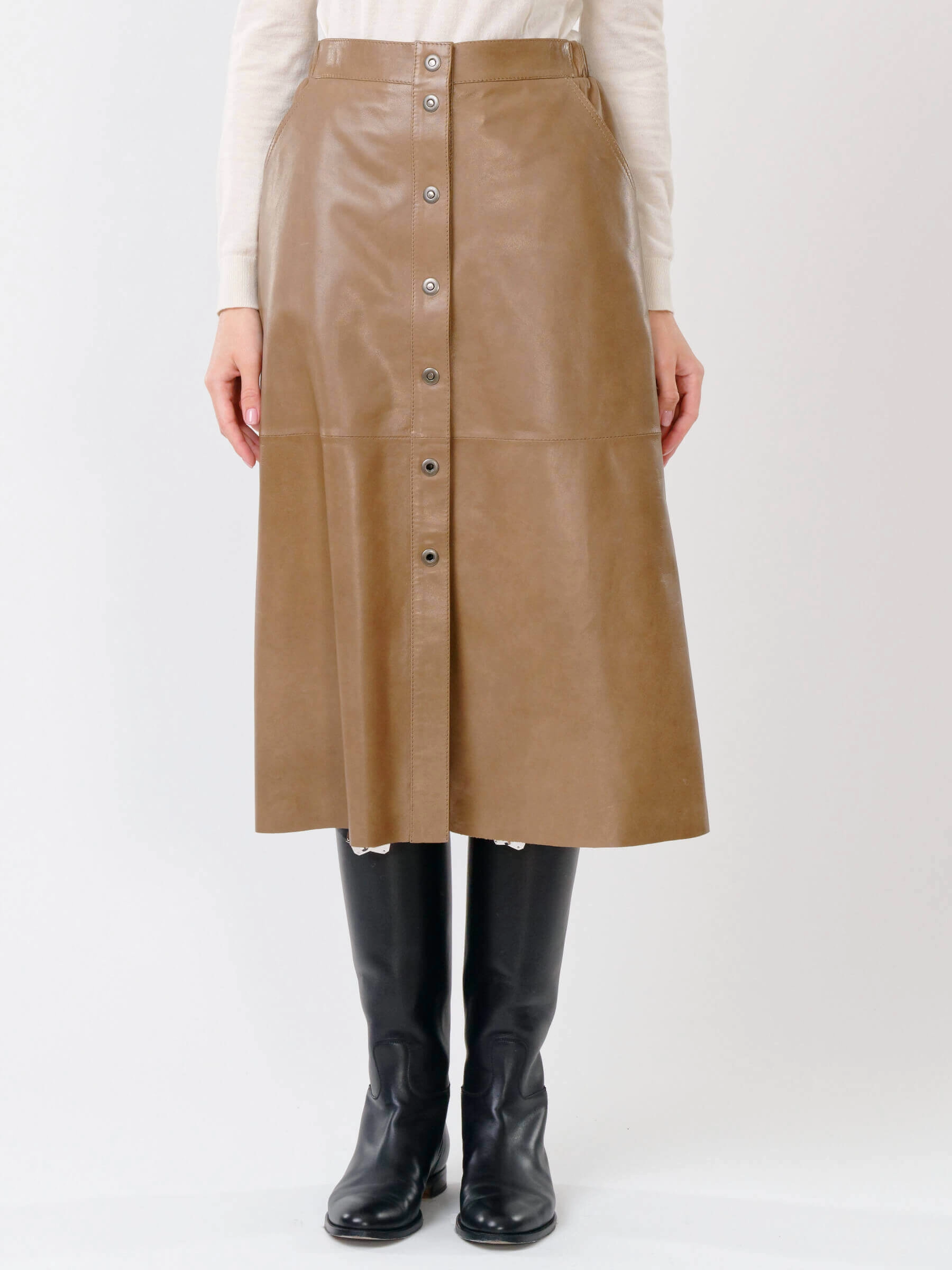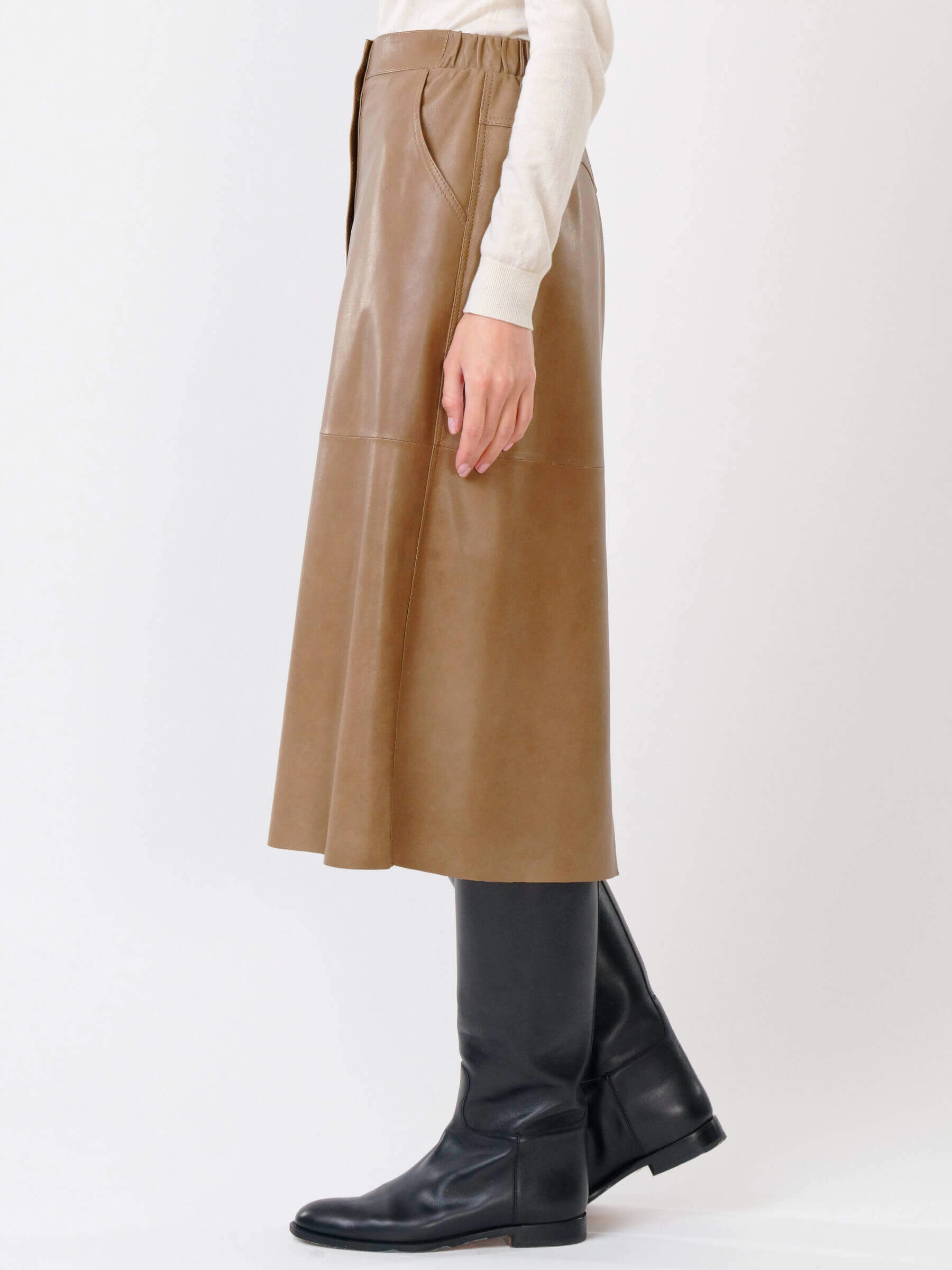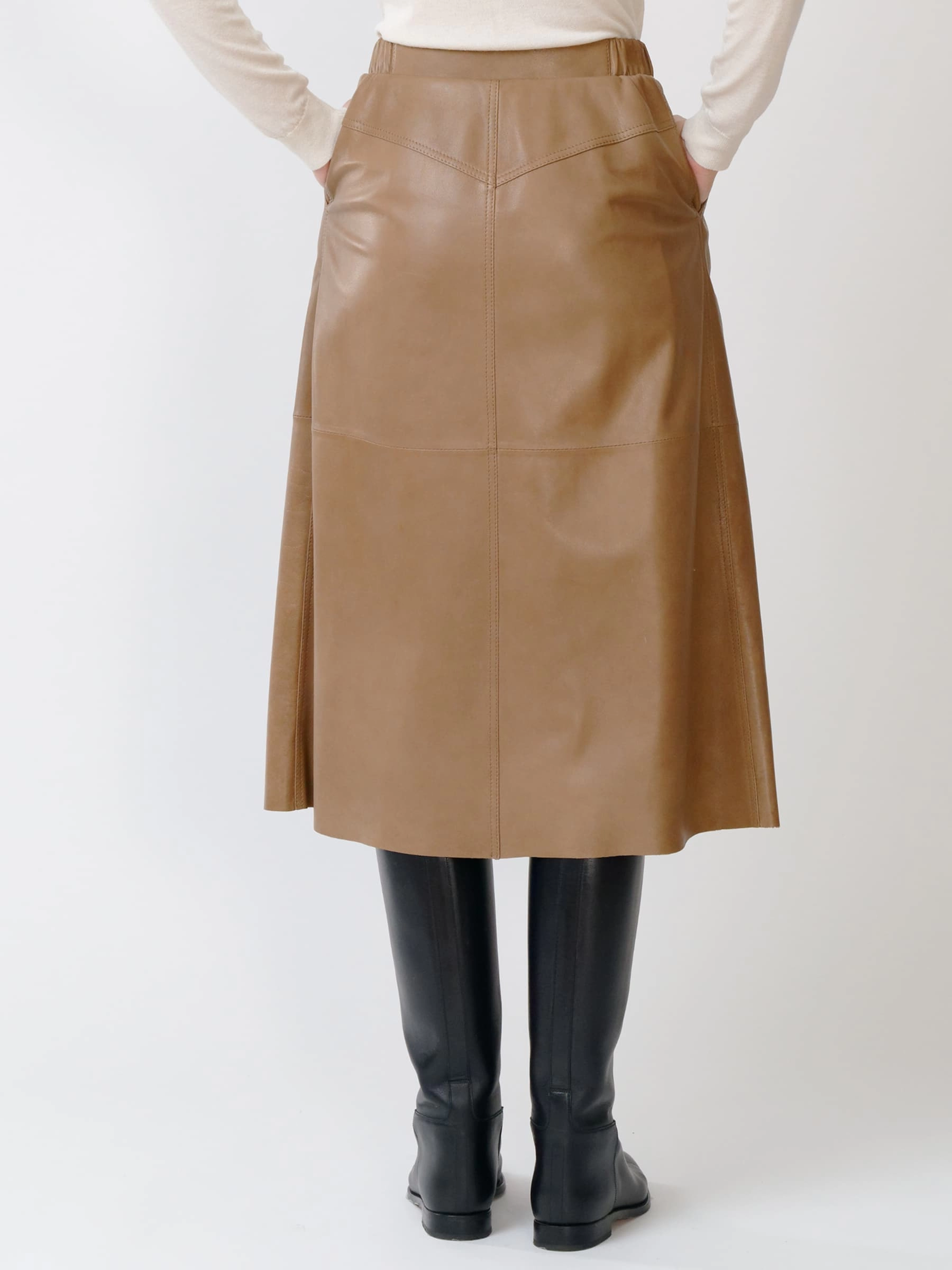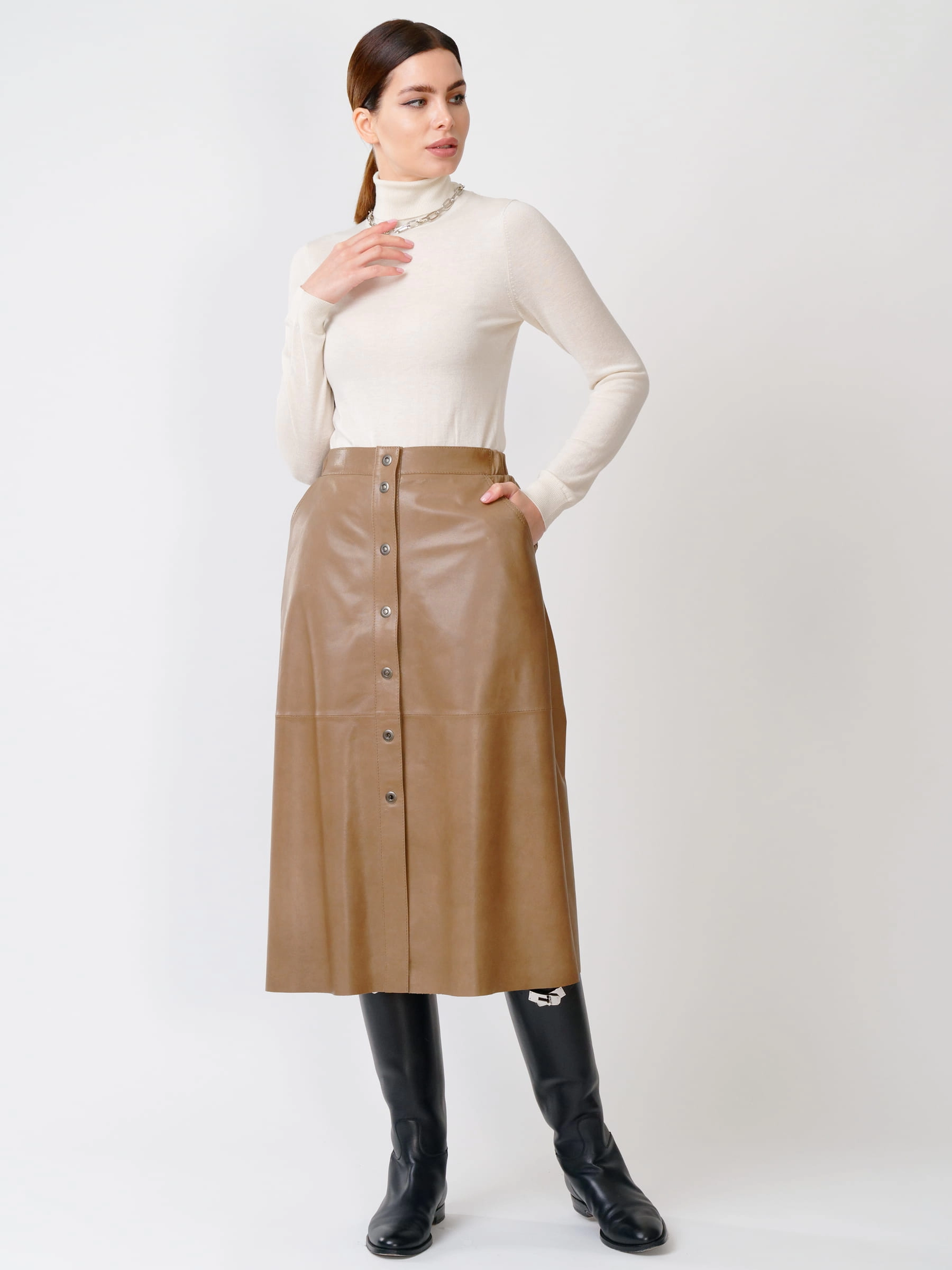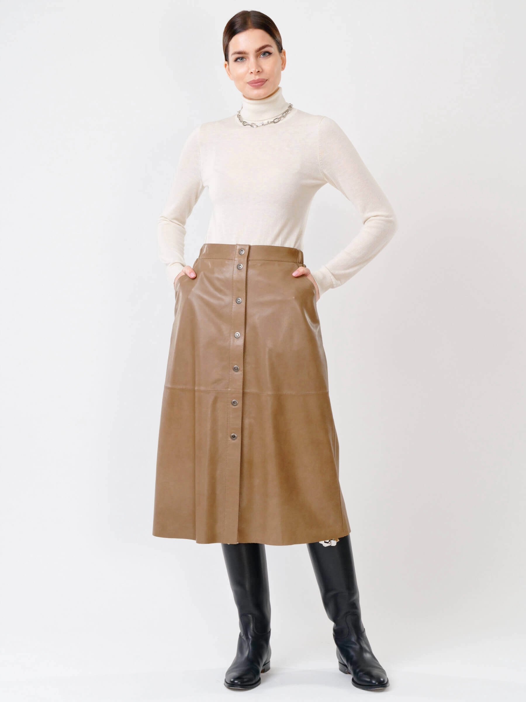 Товар коричневая кожаная юбка 08, размер 50, артикул 85541 выполнен из натуральной кожи с застежкой кнопки. Рассчитан на сезон: демисезон. Длина изделия 80 см, силуэт расклешенный.