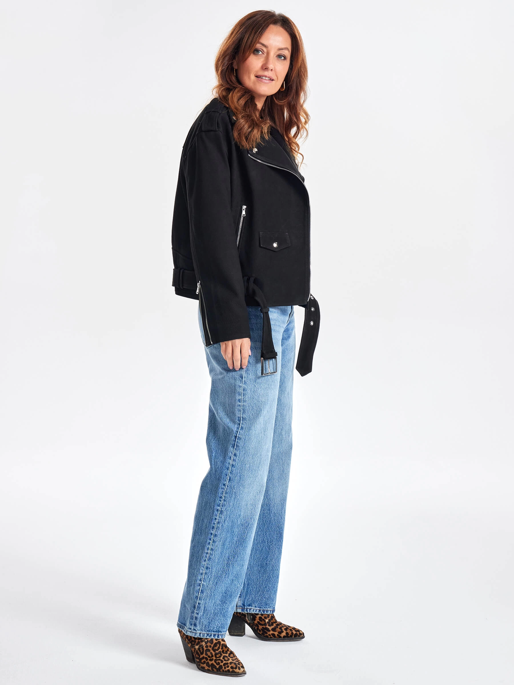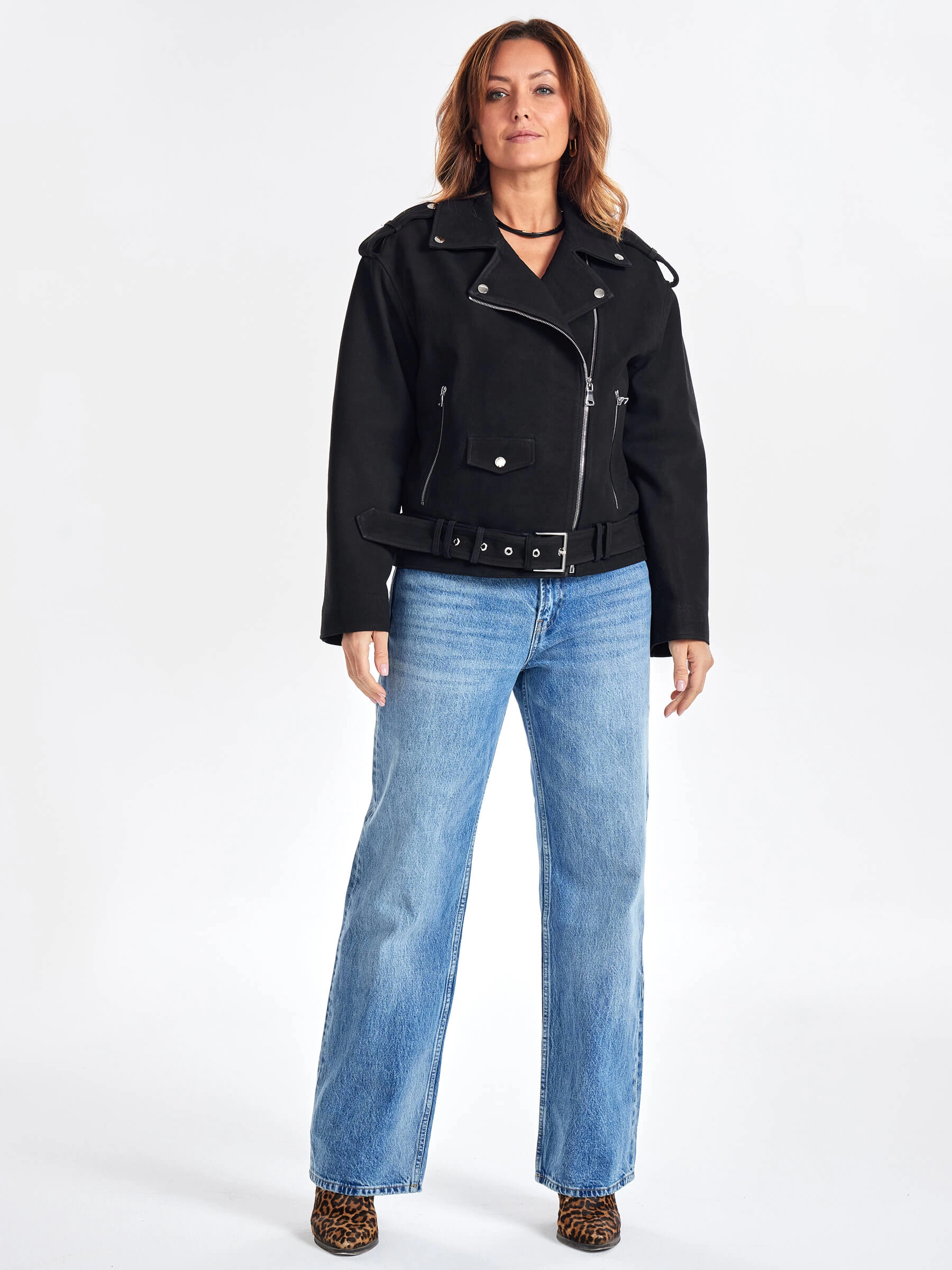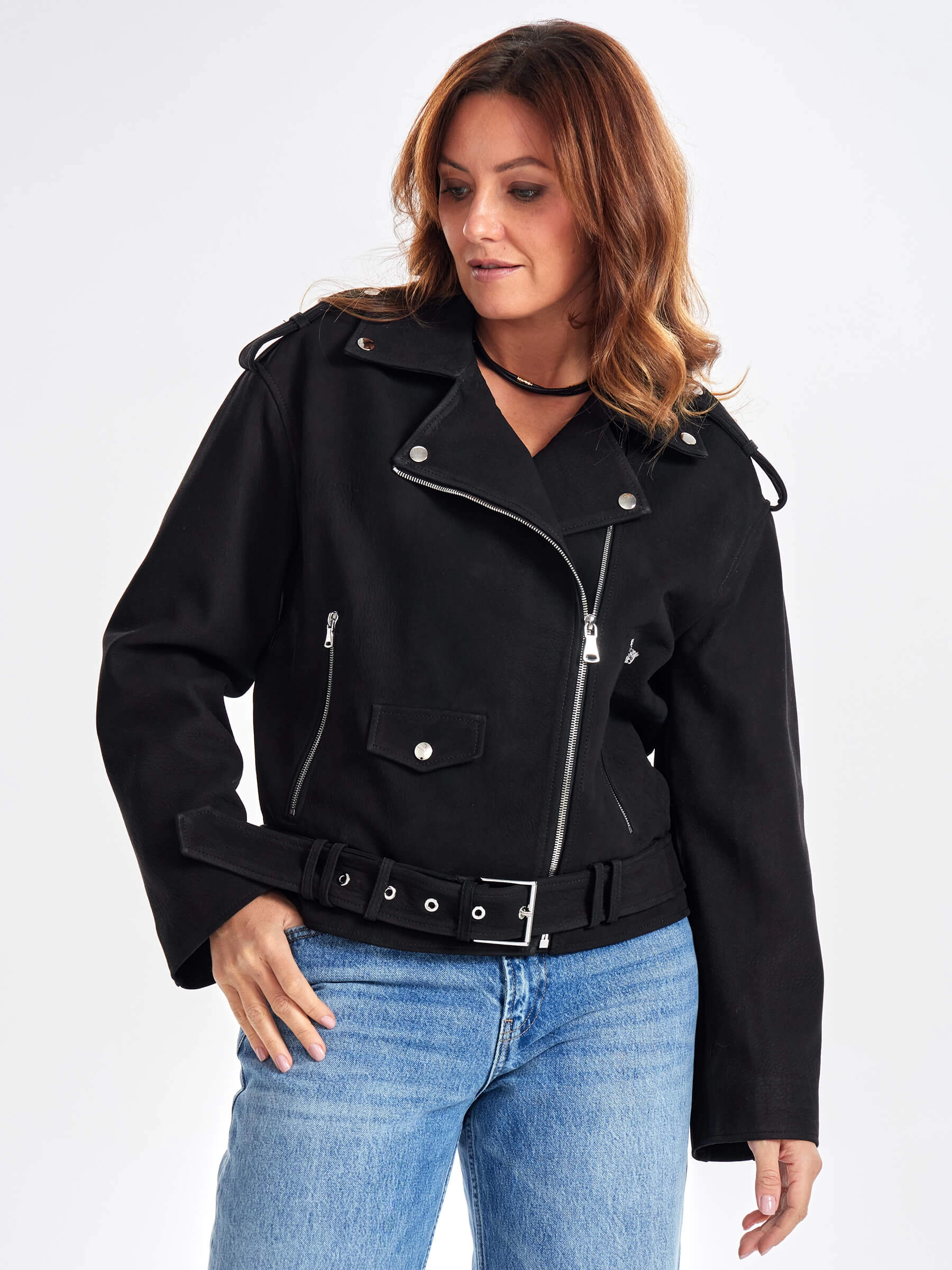 Товар короткая кожаная куртка косуха с поясом для женщин премиум класса 3052, черная, размер 48, артикул 23440 выполнен из натуральной кожи. Рассчитан на сезон: весна-осень. Длина изделия 60 см, силуэт свободный.