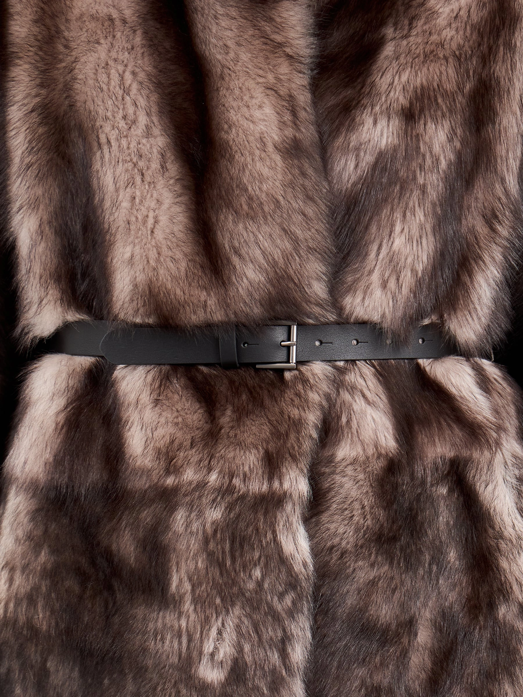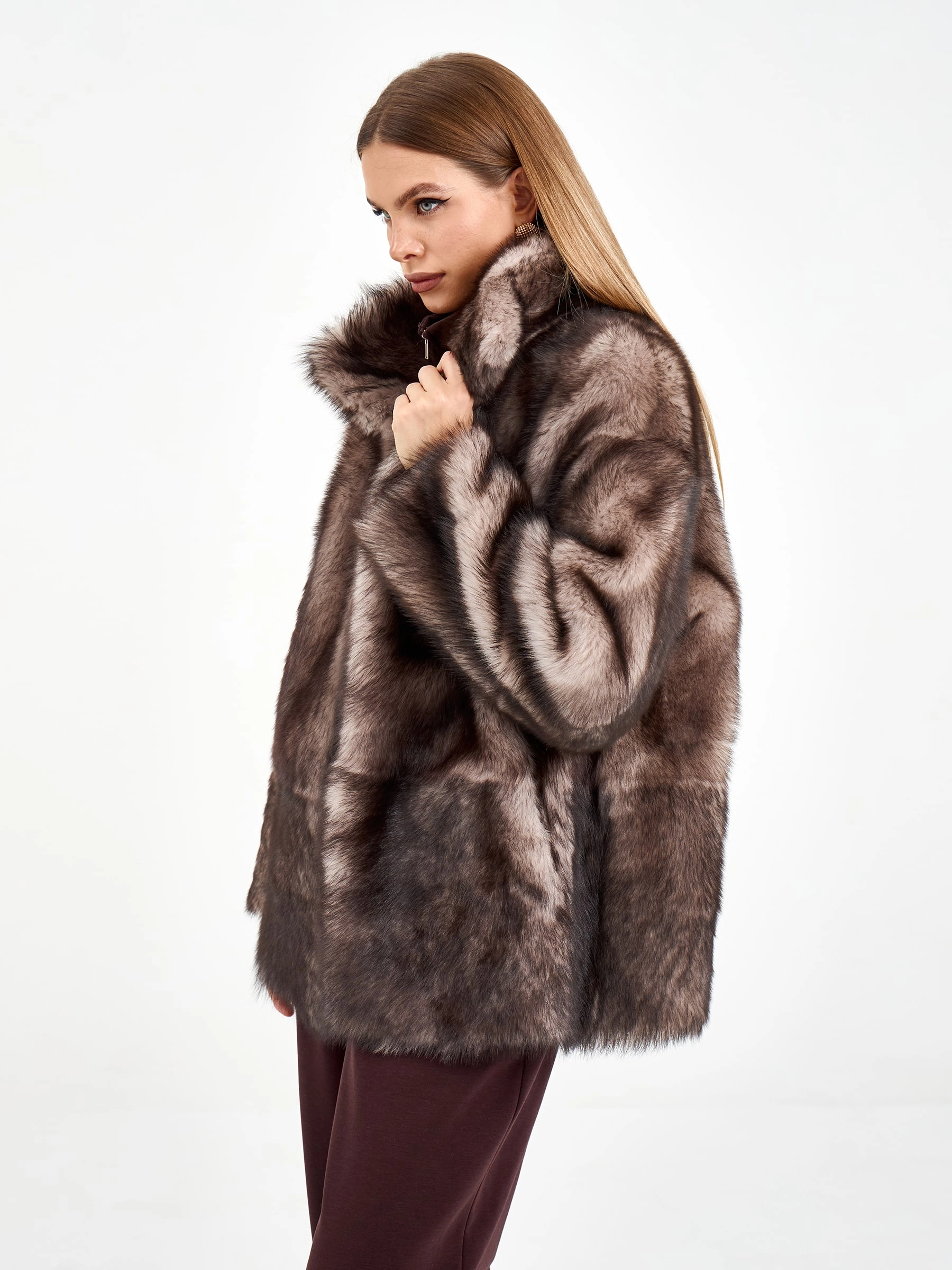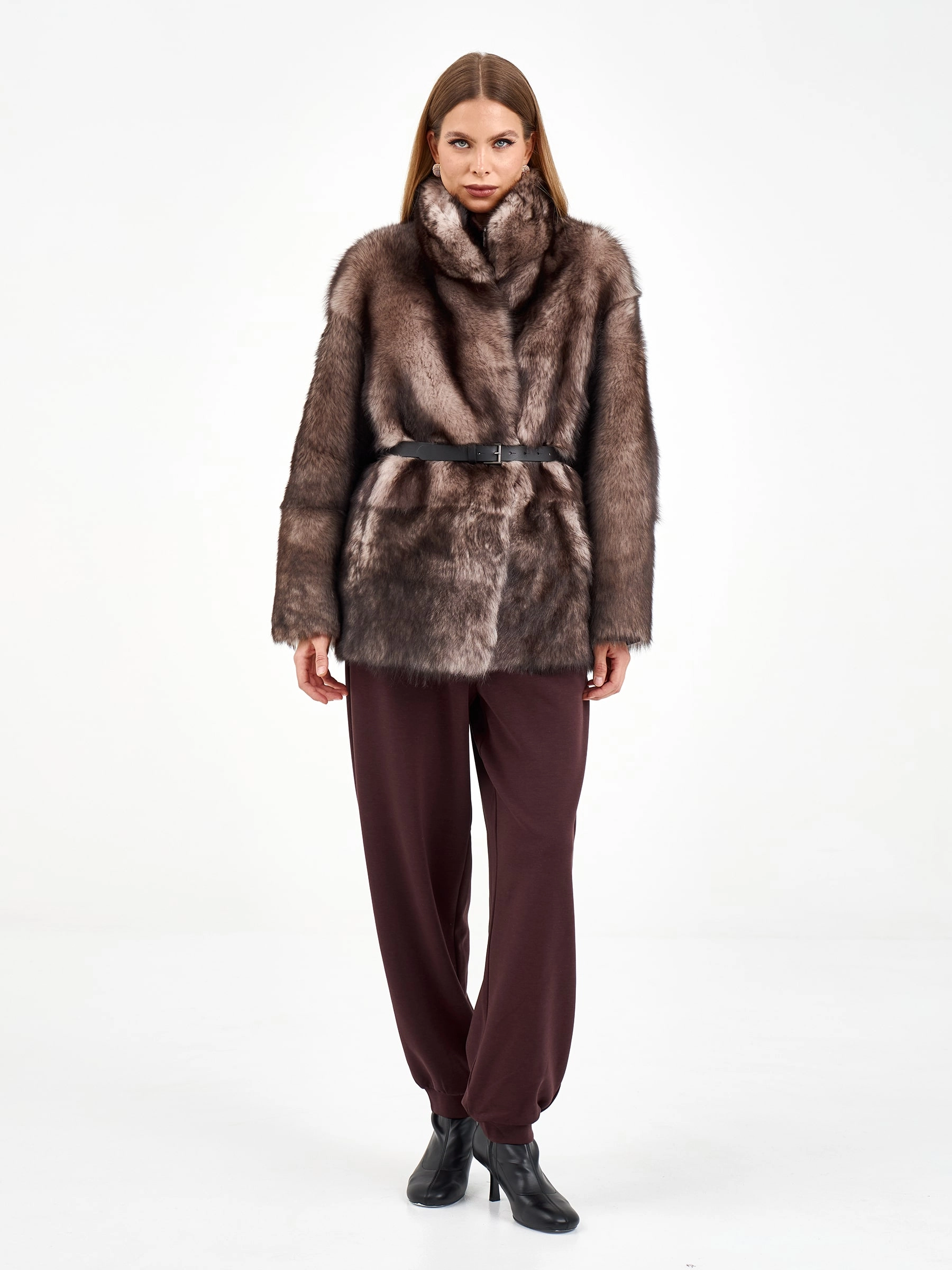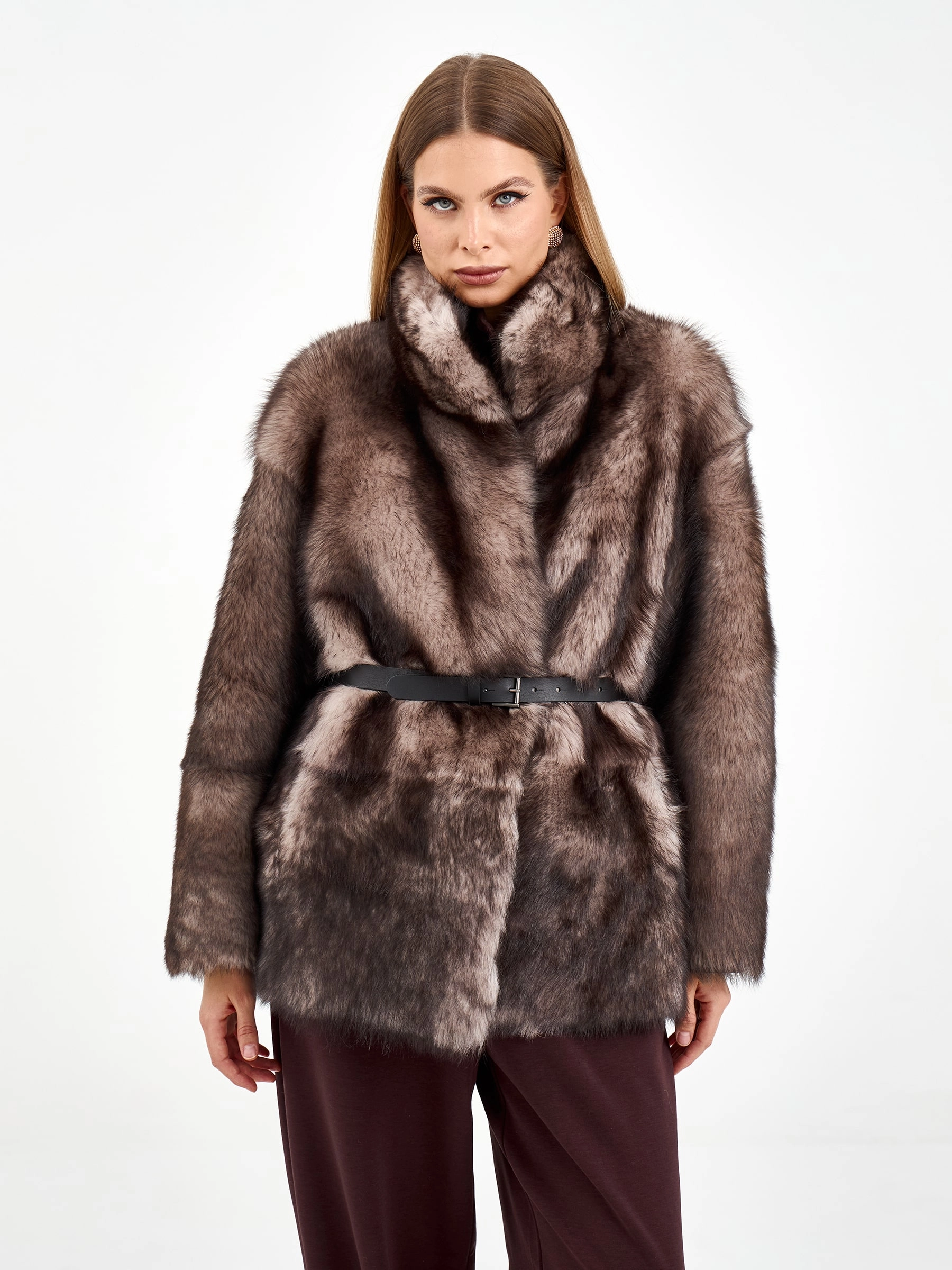 Короткая дубленка свободного кроя из натуральной овчины с удобным воротником-стойкой. Модель длиной 70 см со спущенным рукавом создана для повседневной носки, даря непревзойденный комфорт и чувство стиля. Для создания модного образа наденьте ее с объемным свитером, прямыми джинсами и анкл-ботами.