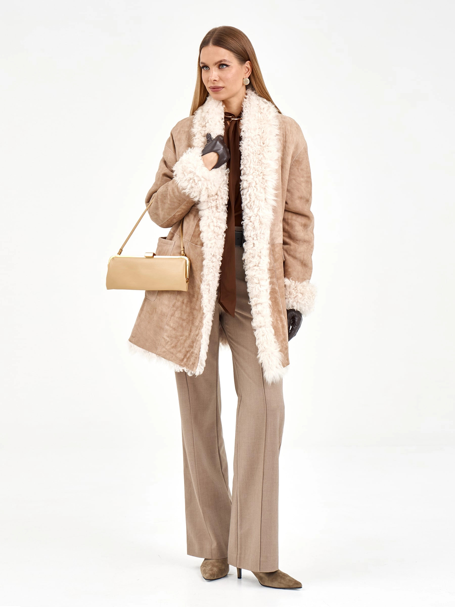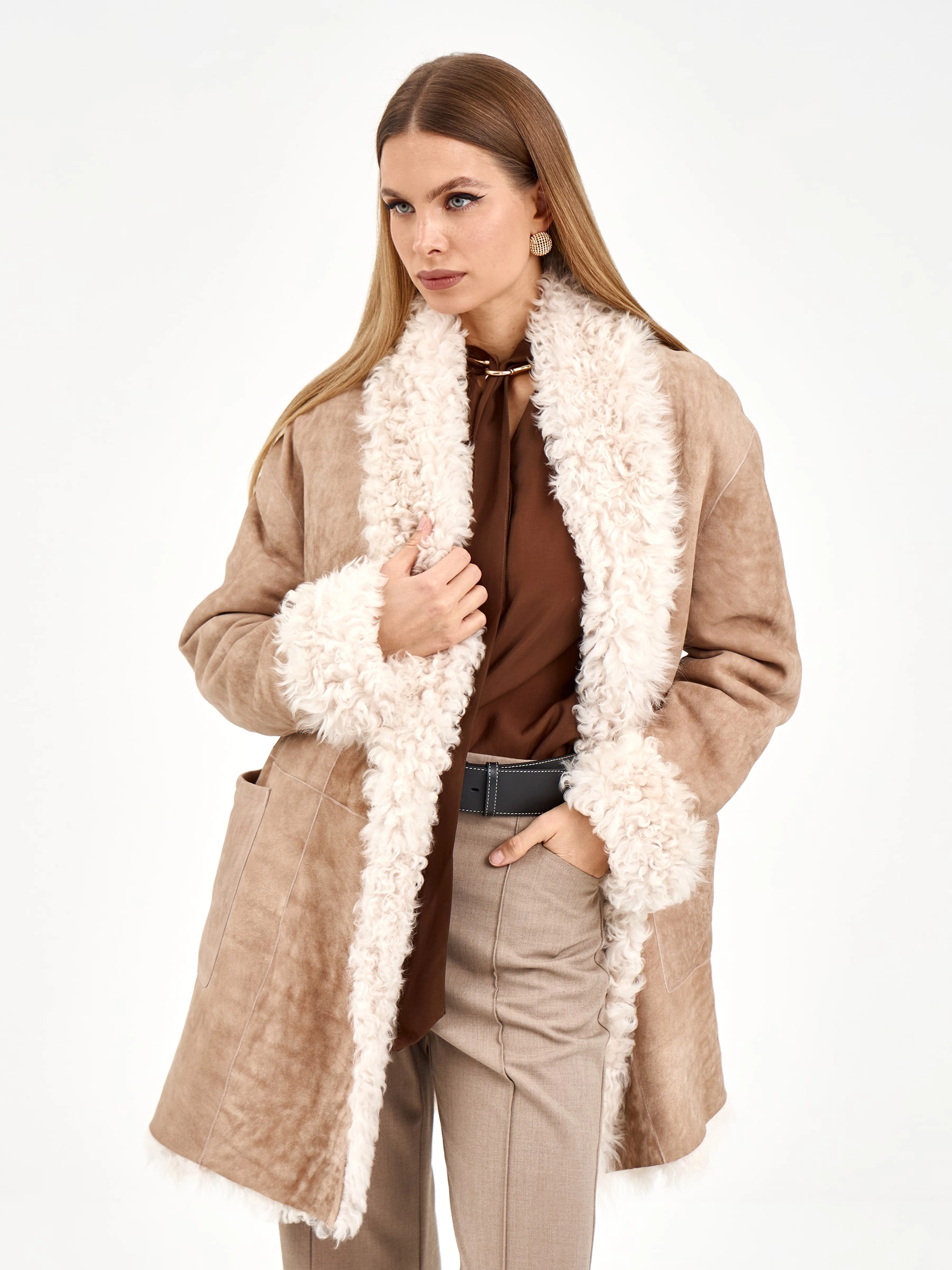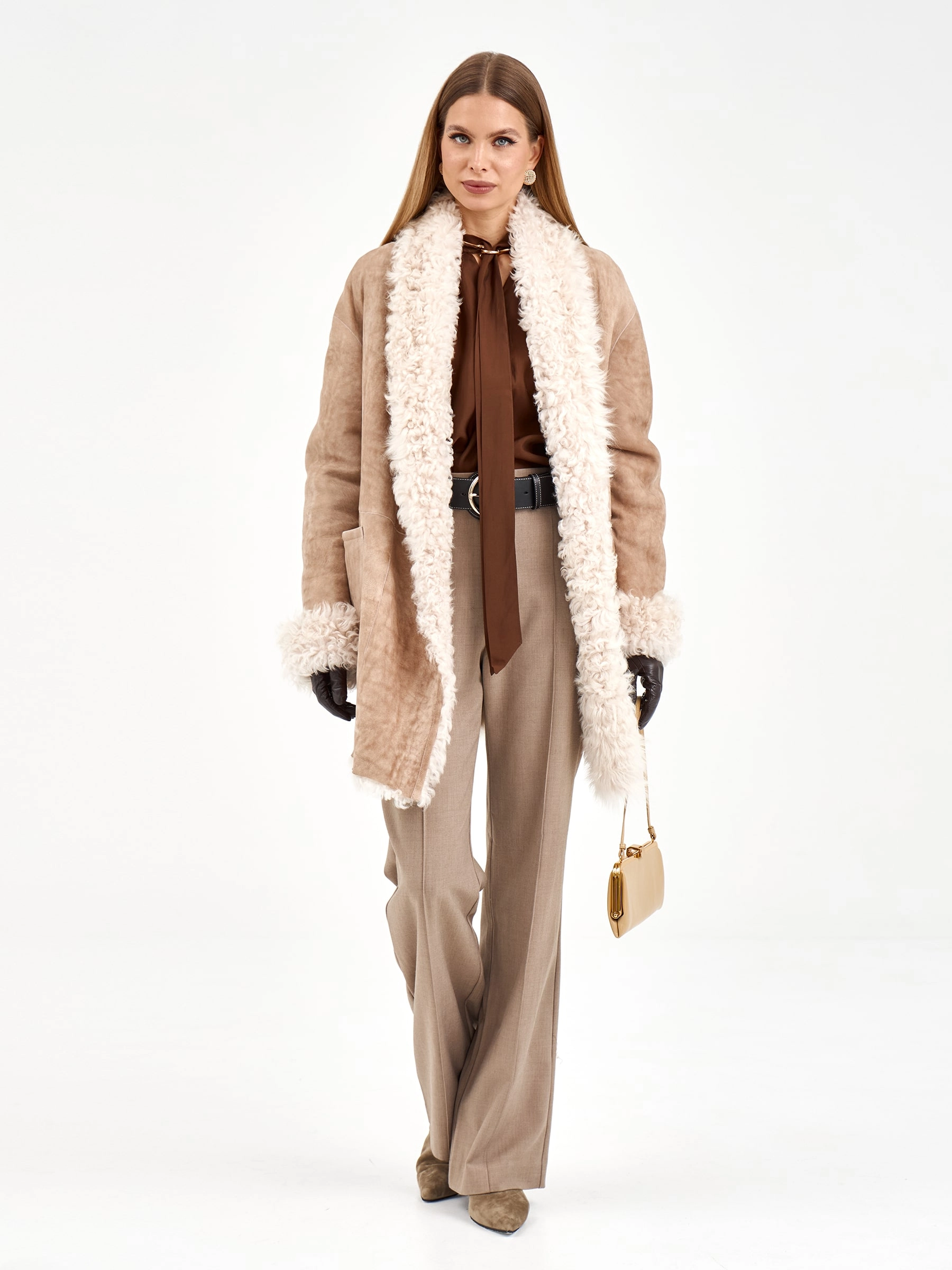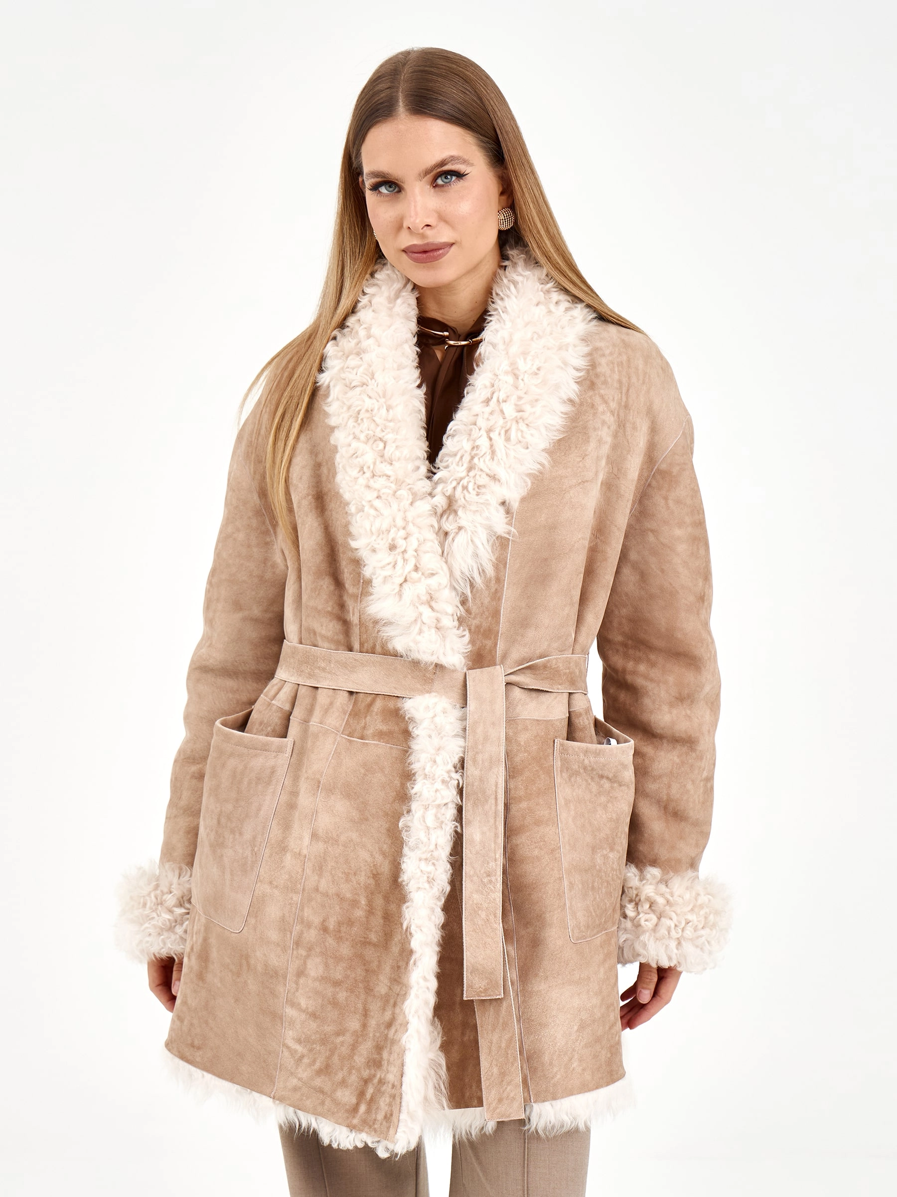 Короткая дубленка из роскошной овчины "тиградо" с эффектным шалевым воротником. Модель свободного кроя длиной 80 см с запахом и спущенным рукавом подчеркивает непринужденную элегантность - дубленка фиксиется длинным поясом, создавая выразительный силуэт, и дополнена практичными накладными карманами. Стилисты рекомендуют носить ее с однотонными комплектами - платьями-миди, узкими джинсами или кюлотами с высокими сапогами, чтобы подчеркнуть богатую текстуру меха. Идеальное решение для тех, кто ценит уют и яркие акценты в повседневном гардеробе.