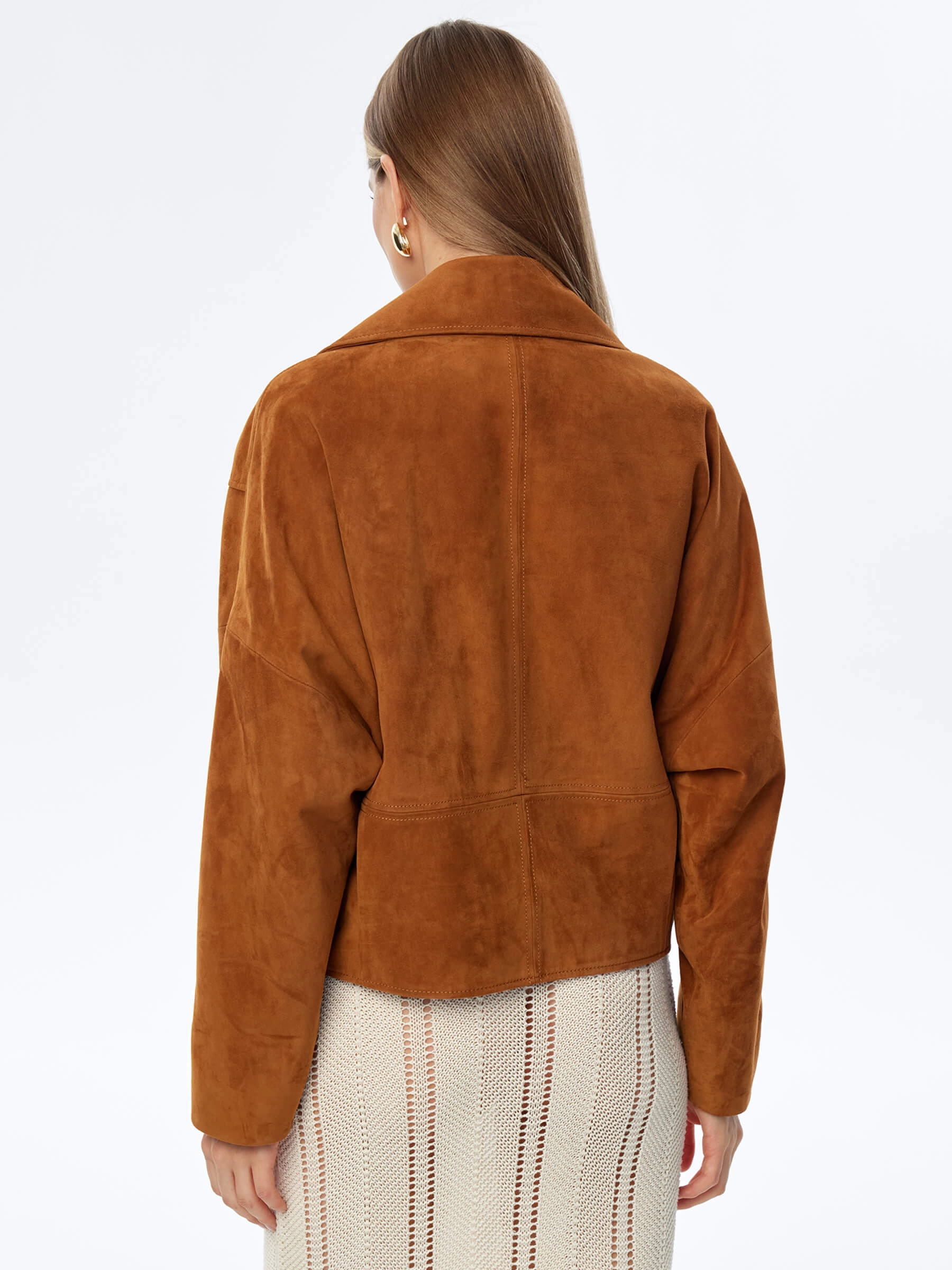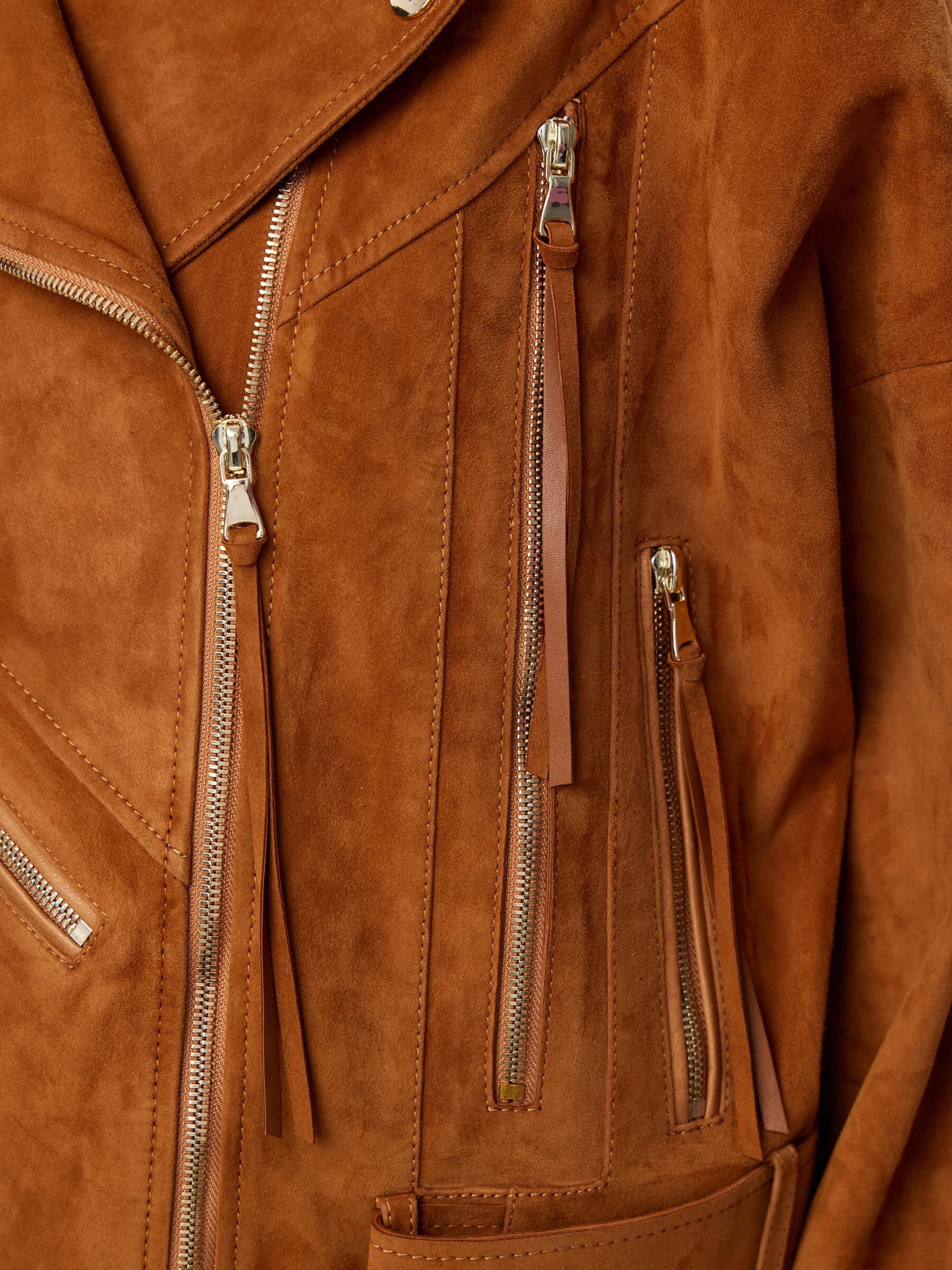 Короткая женская замшевая куртка косуха премиум класса 3051з, виски, размер 46, артикул 23920