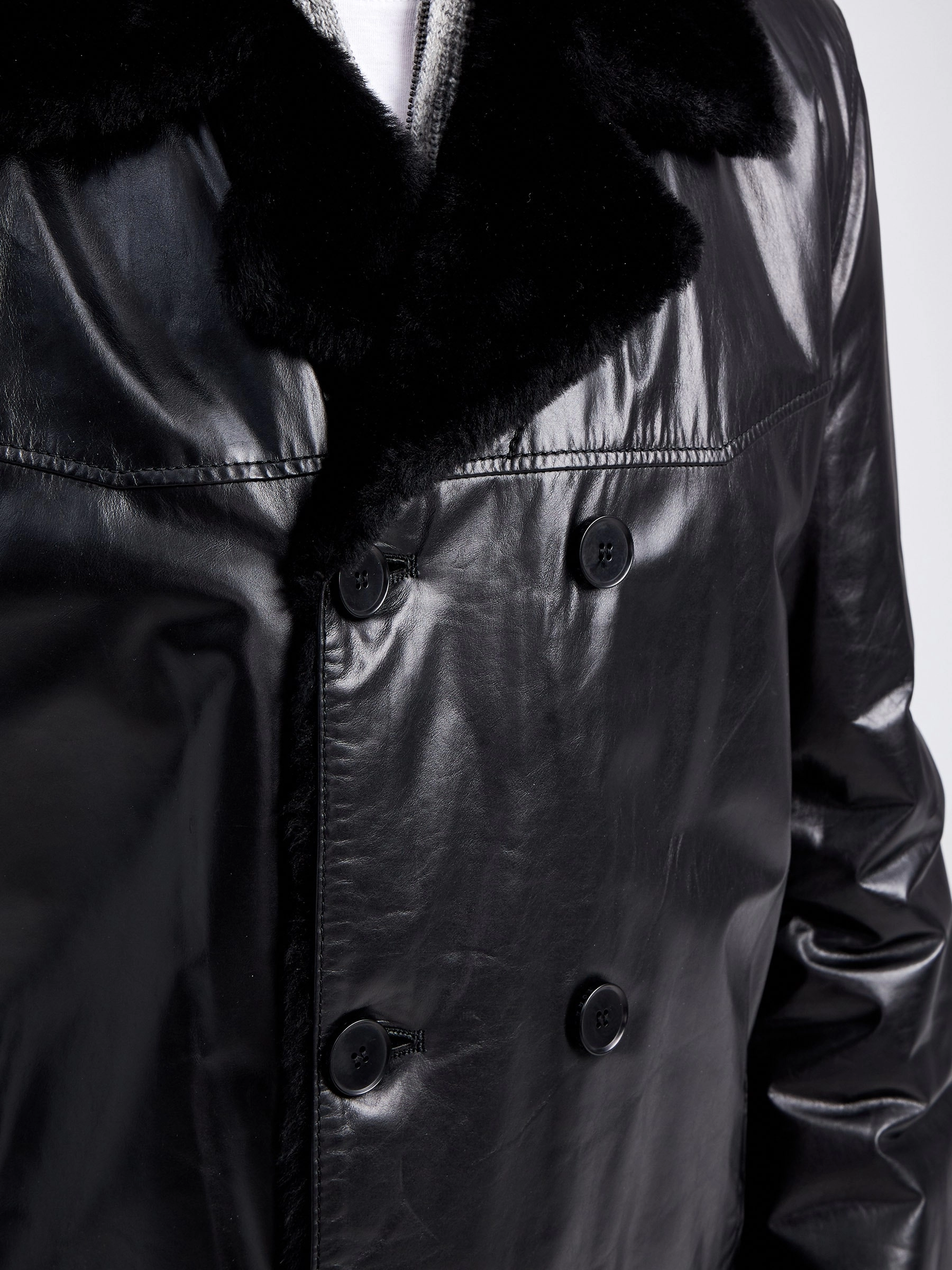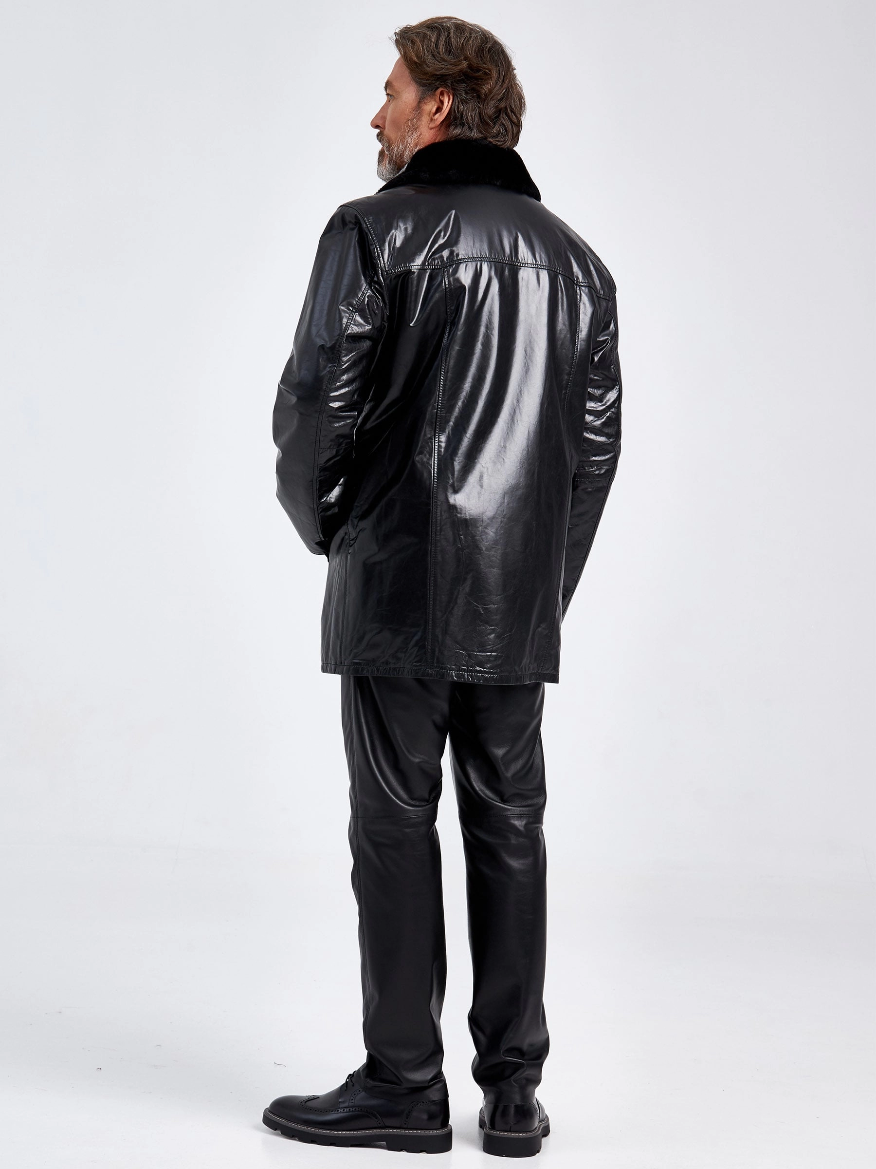 Двубортная классическая куртка с английским воротником. Для создания этой модели использовали мягкую кожу в тандеме с подкладкой из мягкой овчины, которая великолепно сохраняет тепло. Модель прекрасно сочетается как со свободной одеждой, так и со строгим деловым костюмом.