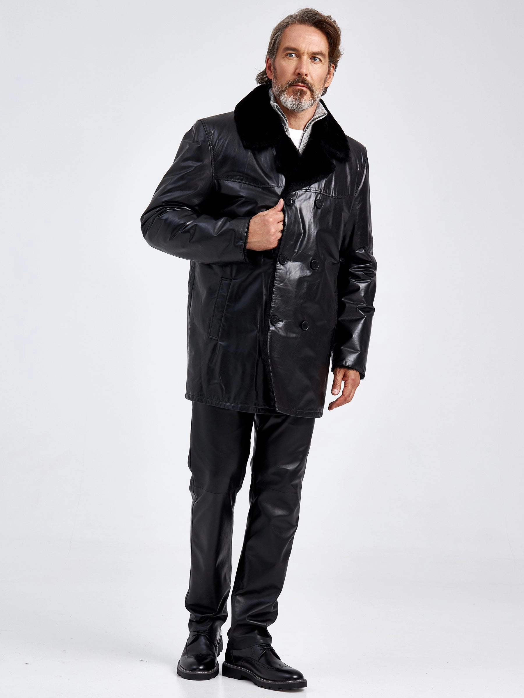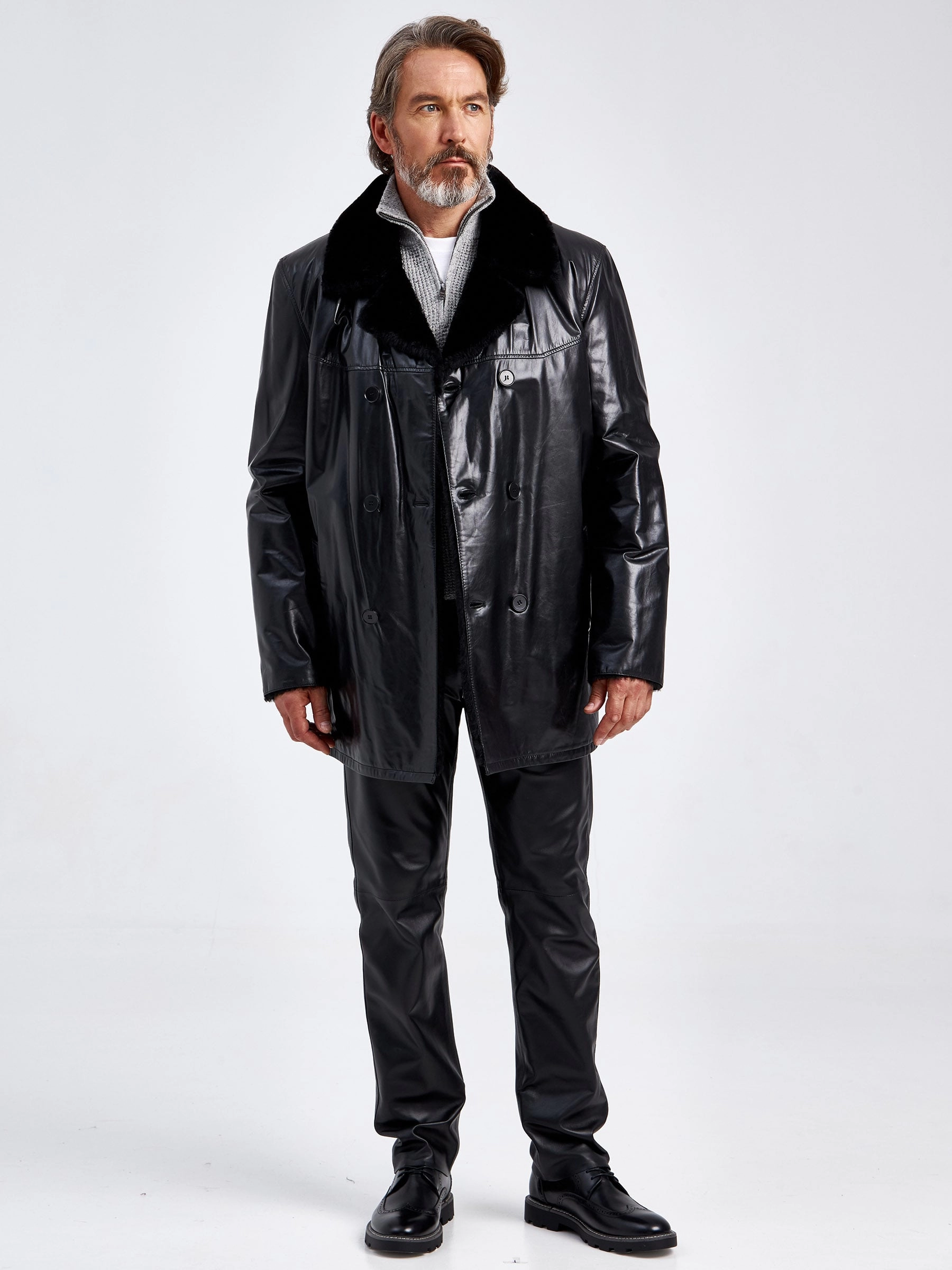 Мужская кожаная двубортная дубленка 5235, черная, размер 46, артикул 71090