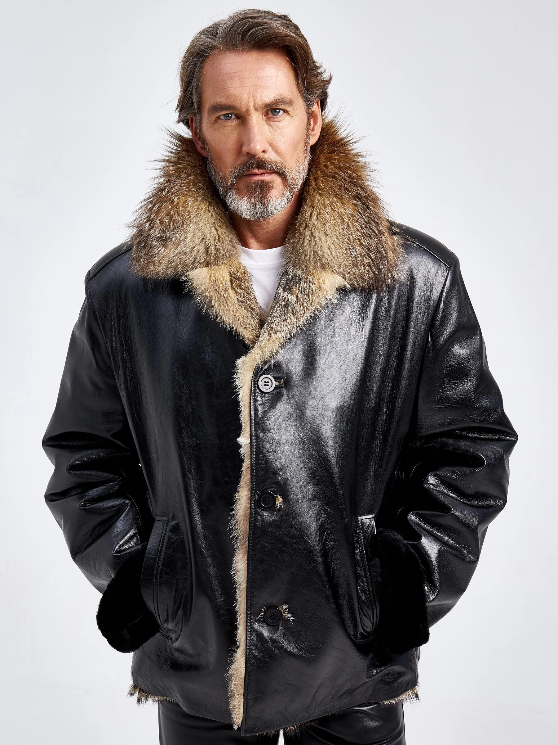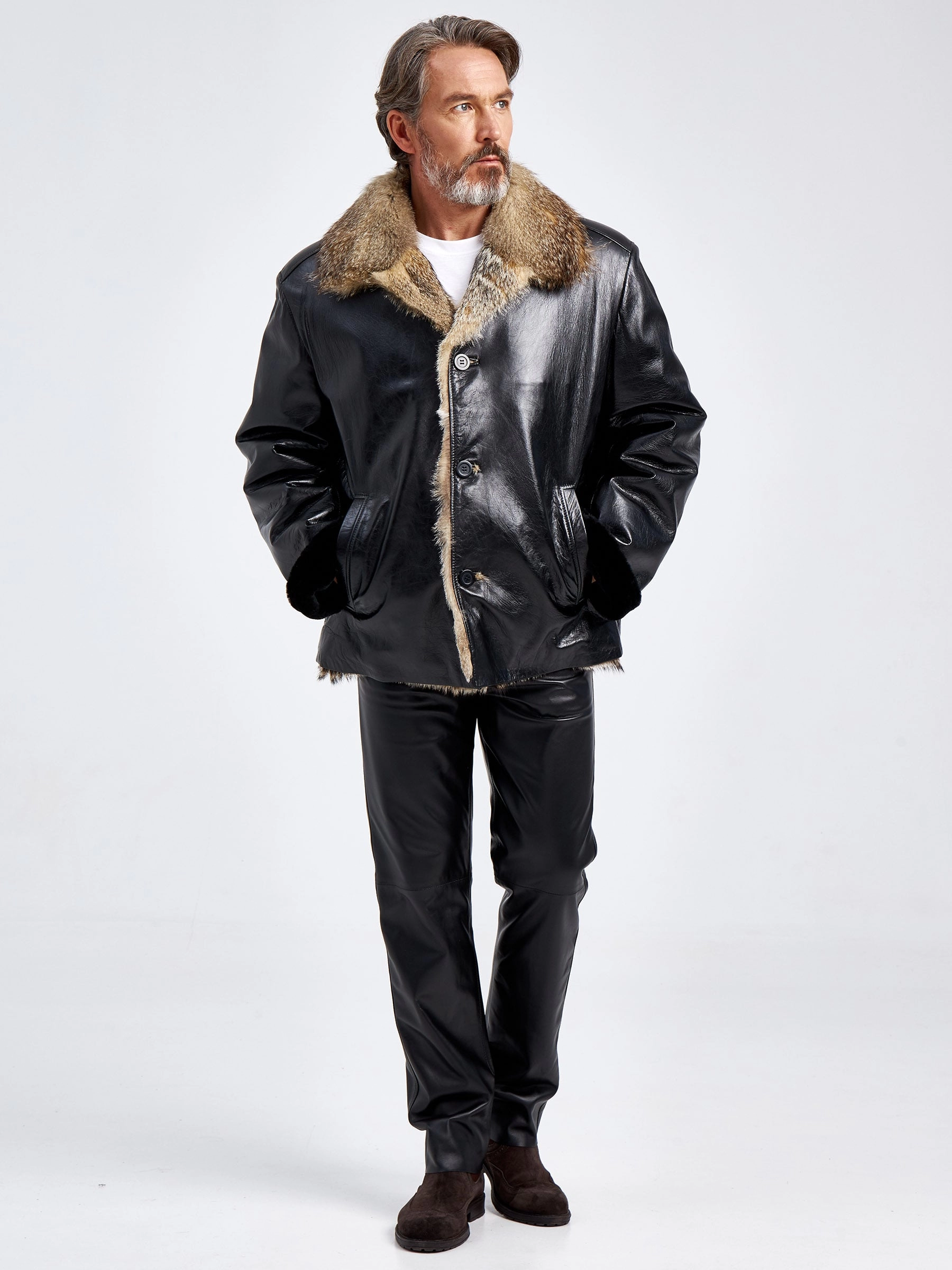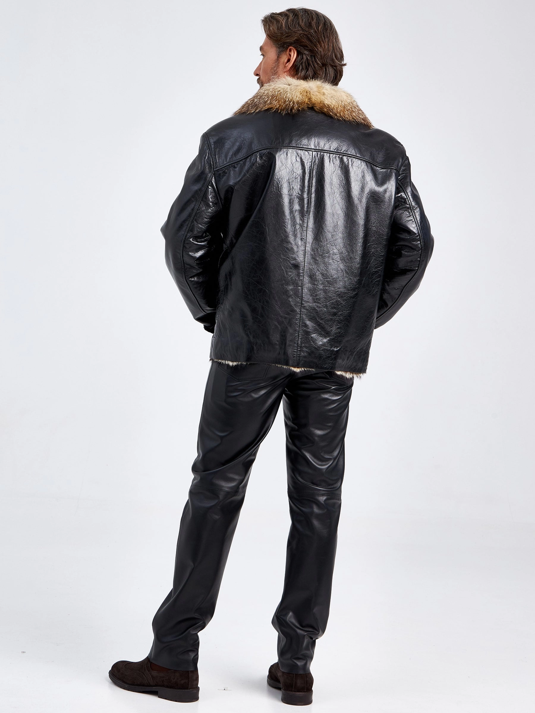 Кожаная мужская дубленка на подкладке из меха лисицы премиум класса Antonio-л, черная, размер 52, артикул 71140