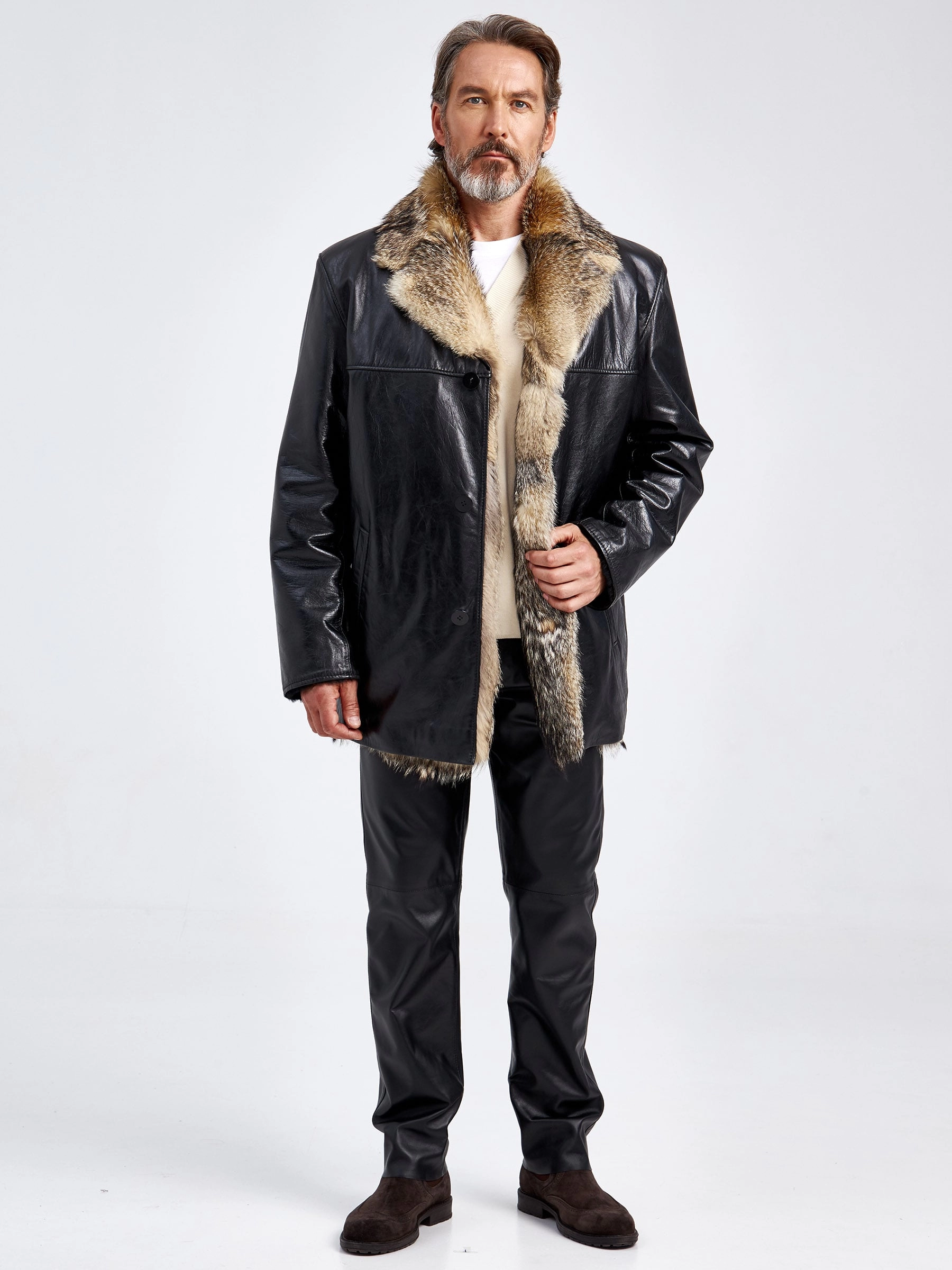 Товар кожаная дубленка на подкладке из меха лисицы премиум класса для мужчин делон 1, черная, размер 52, артикул 70880 выполнен из натуральной кожи с застежкой пуговицы. Рассчитан на сезон: осень-зима. Длина изделия 82 см, силуэт прямой.
