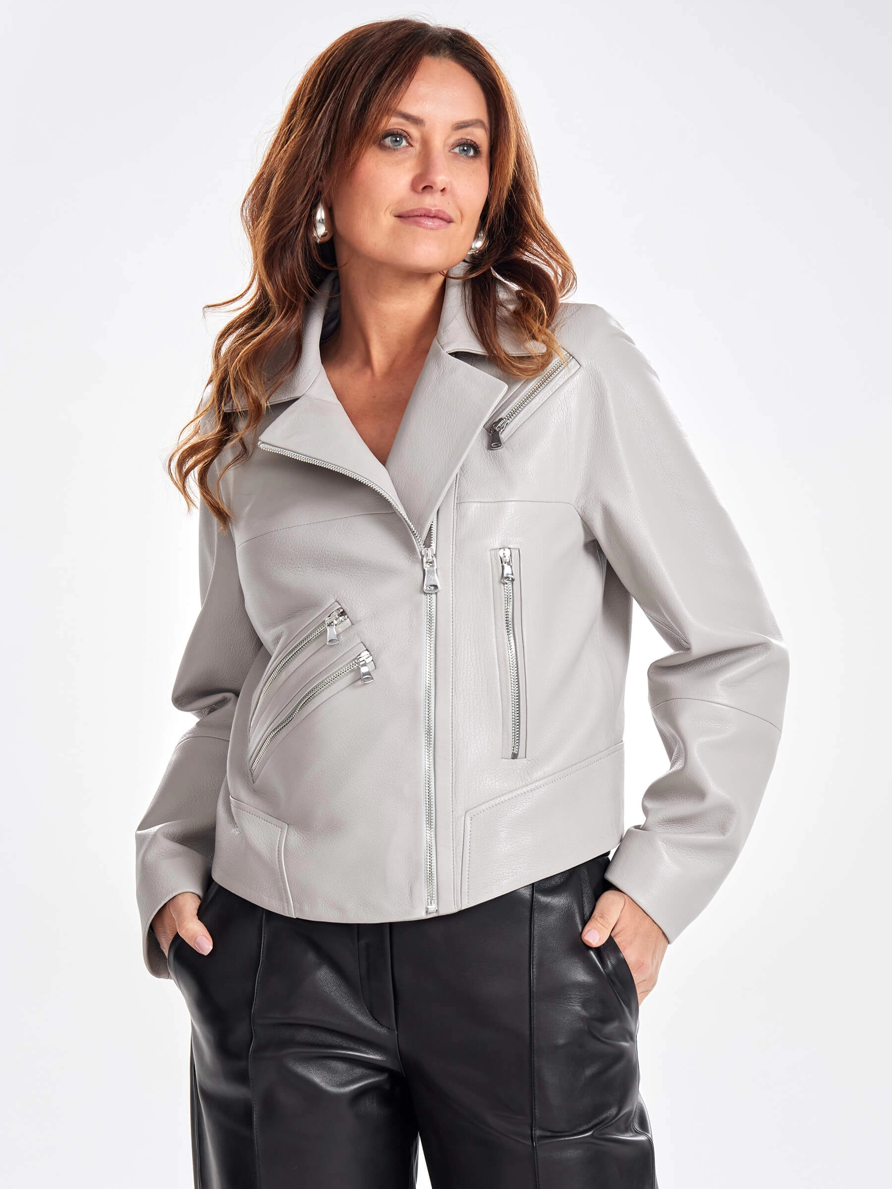 Кожаная короткая куртка косуха для женщин премиум класса 3050, серая, размер 48, артикул 23400