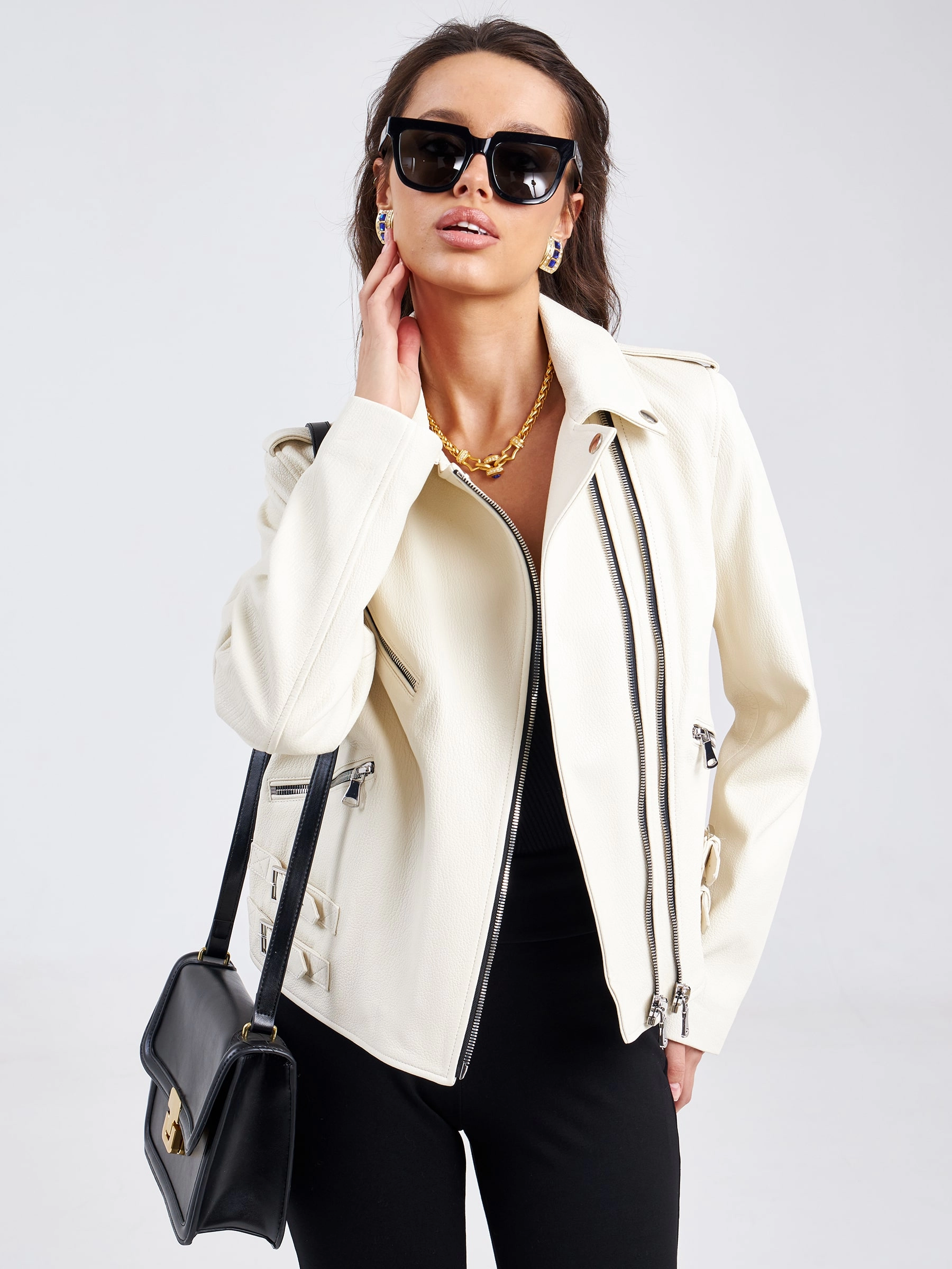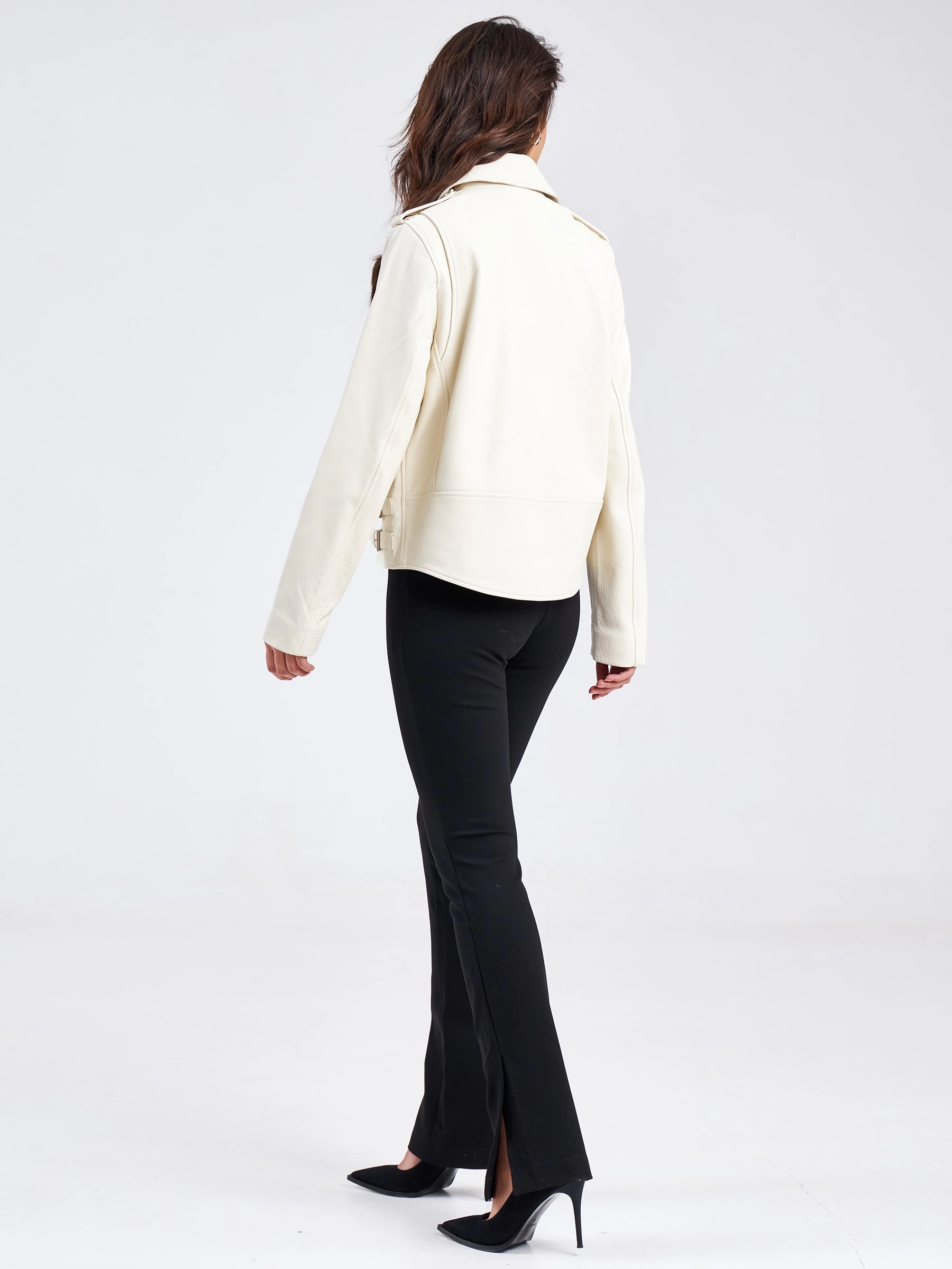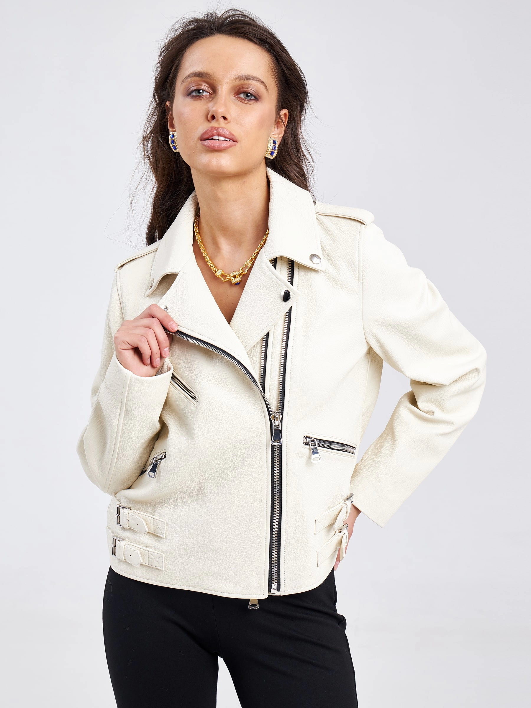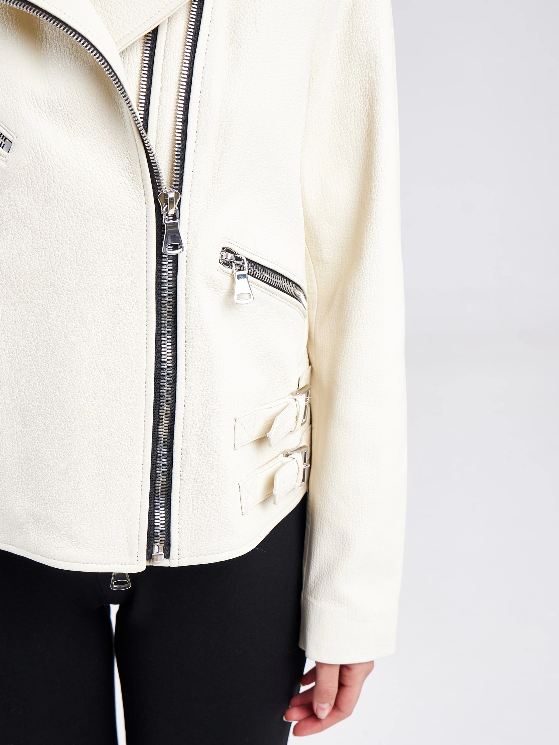 Кожаная женская куртка косуха премиум класса 3036, белая, размер 48, артикул 23170