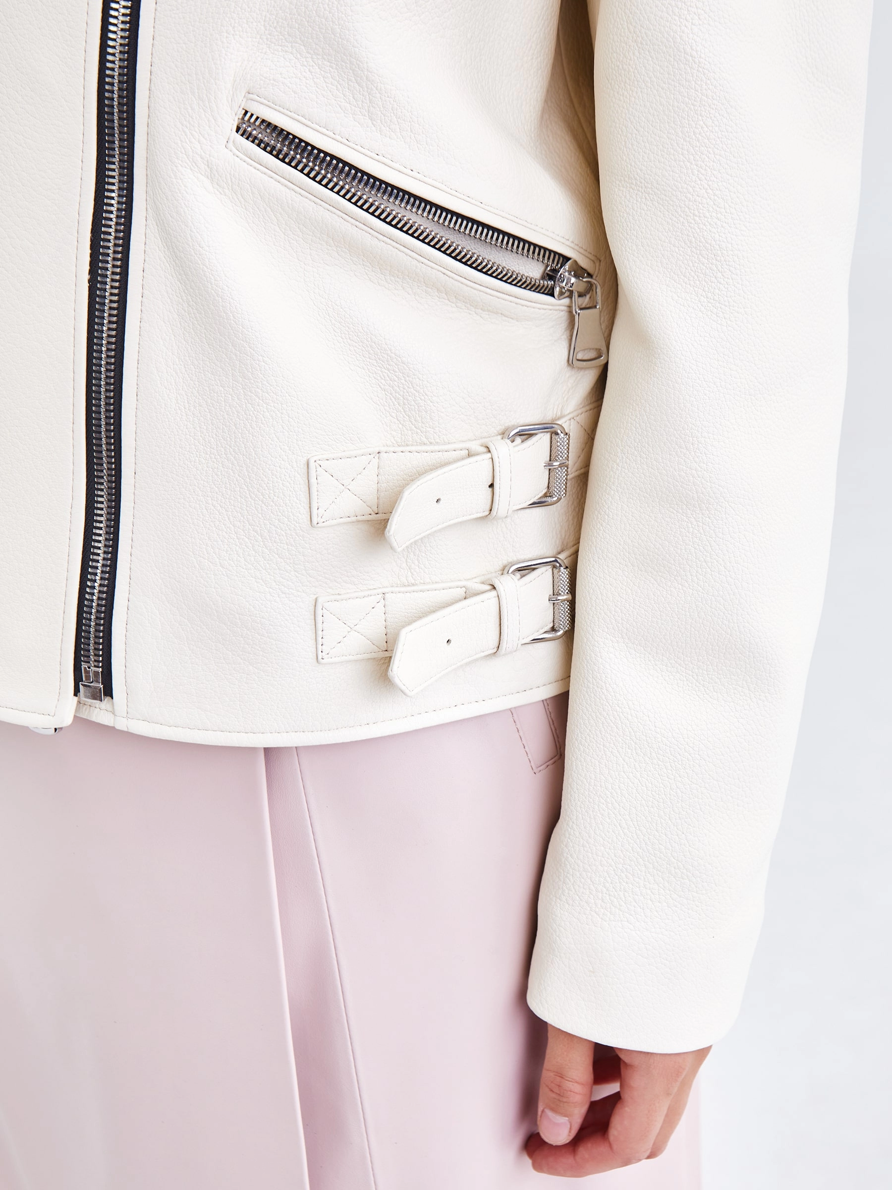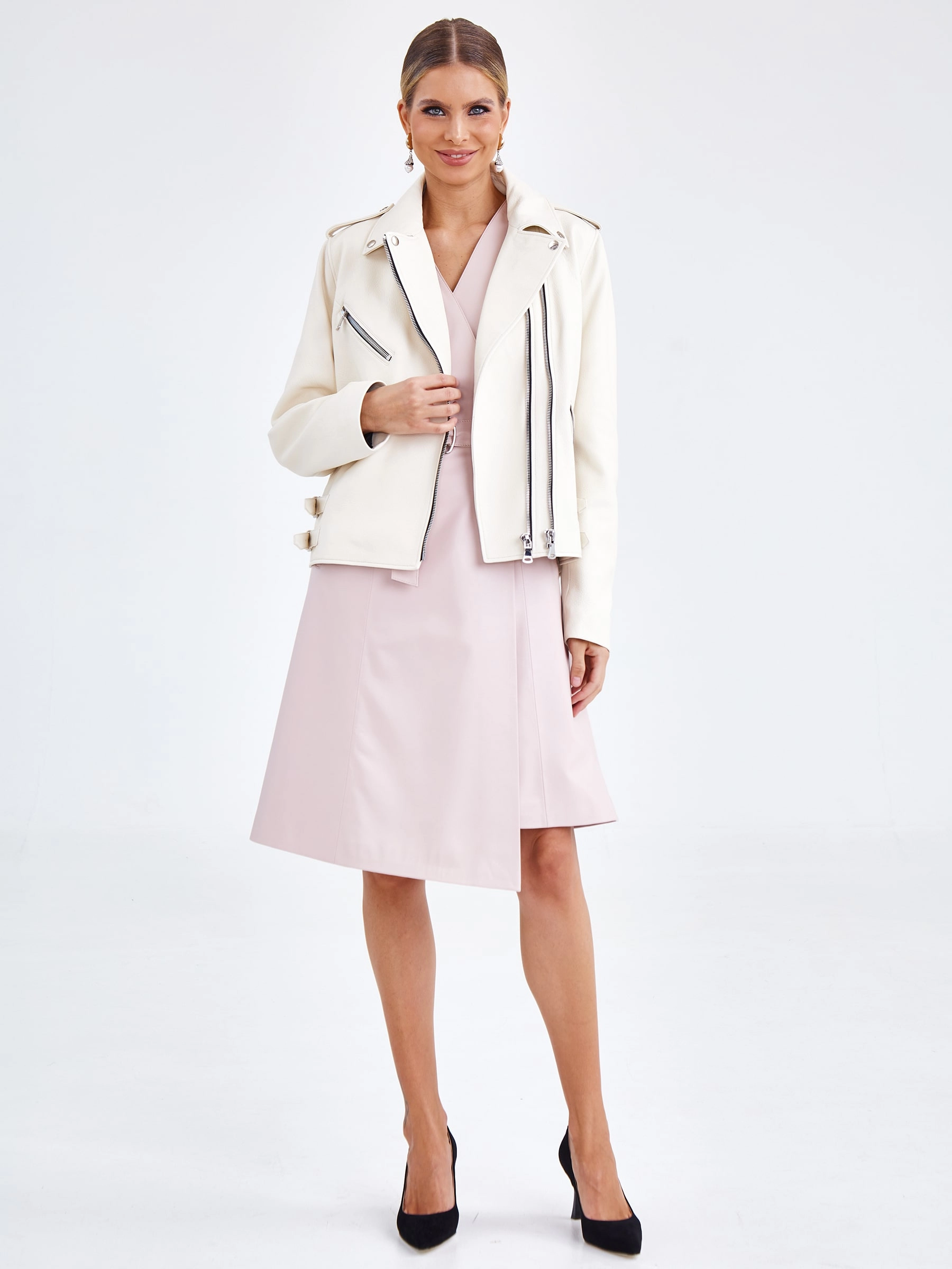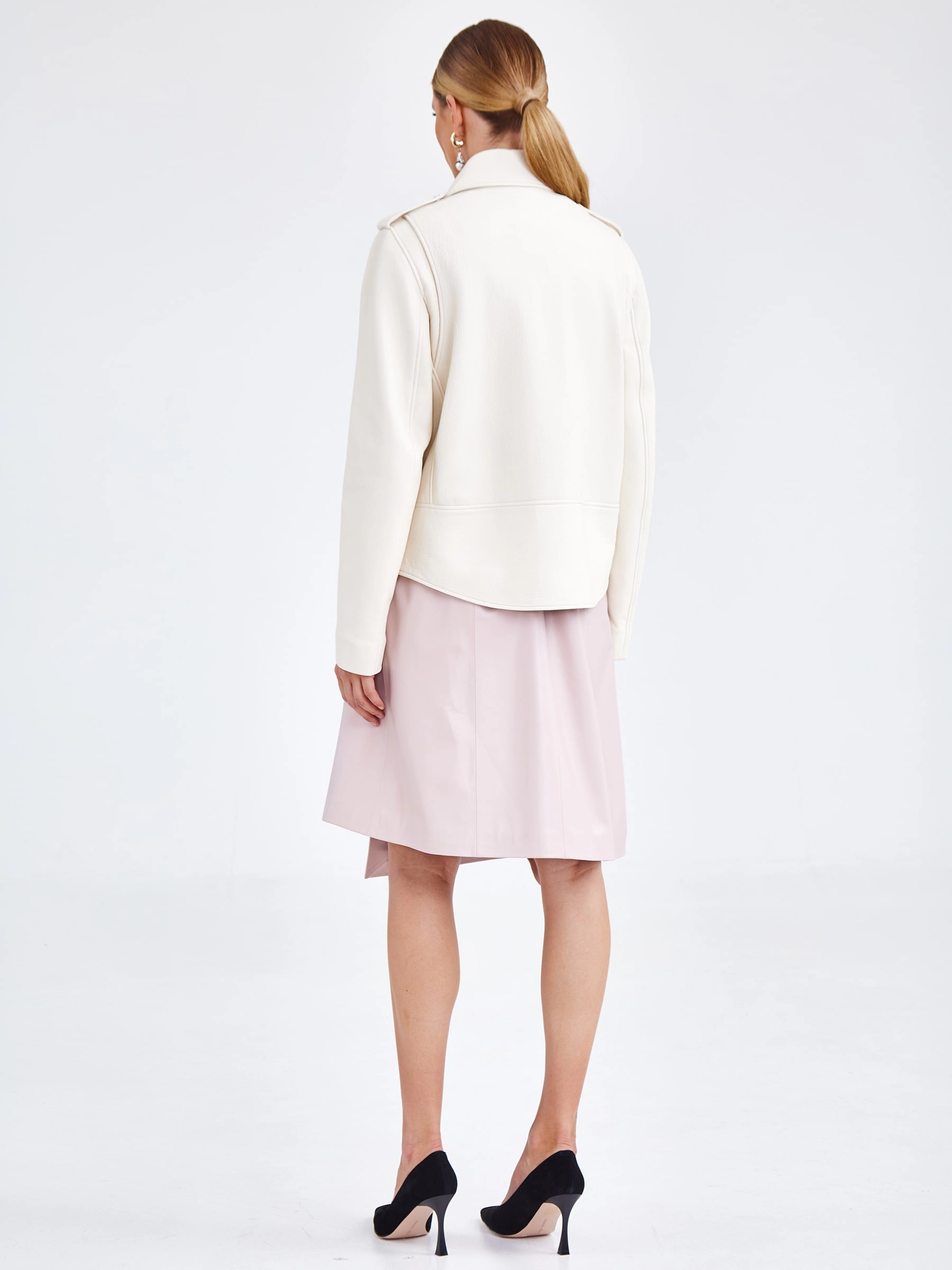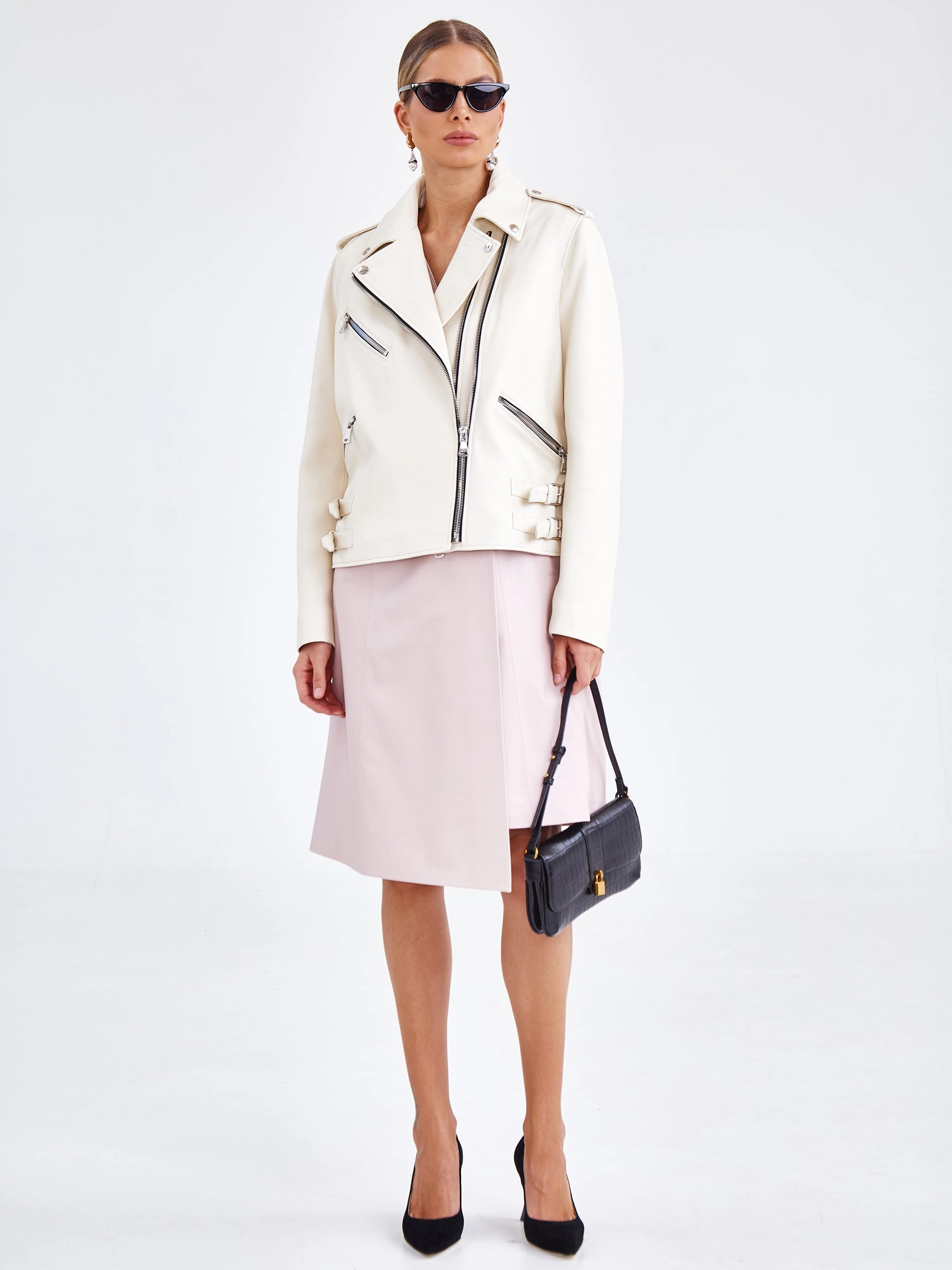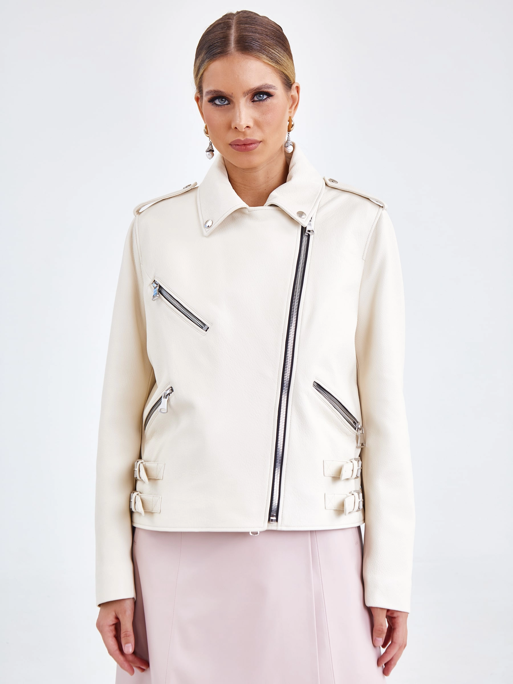 Кожаная женская куртка косуха премиум класса 3036, белая, размер 48, артикул 23171