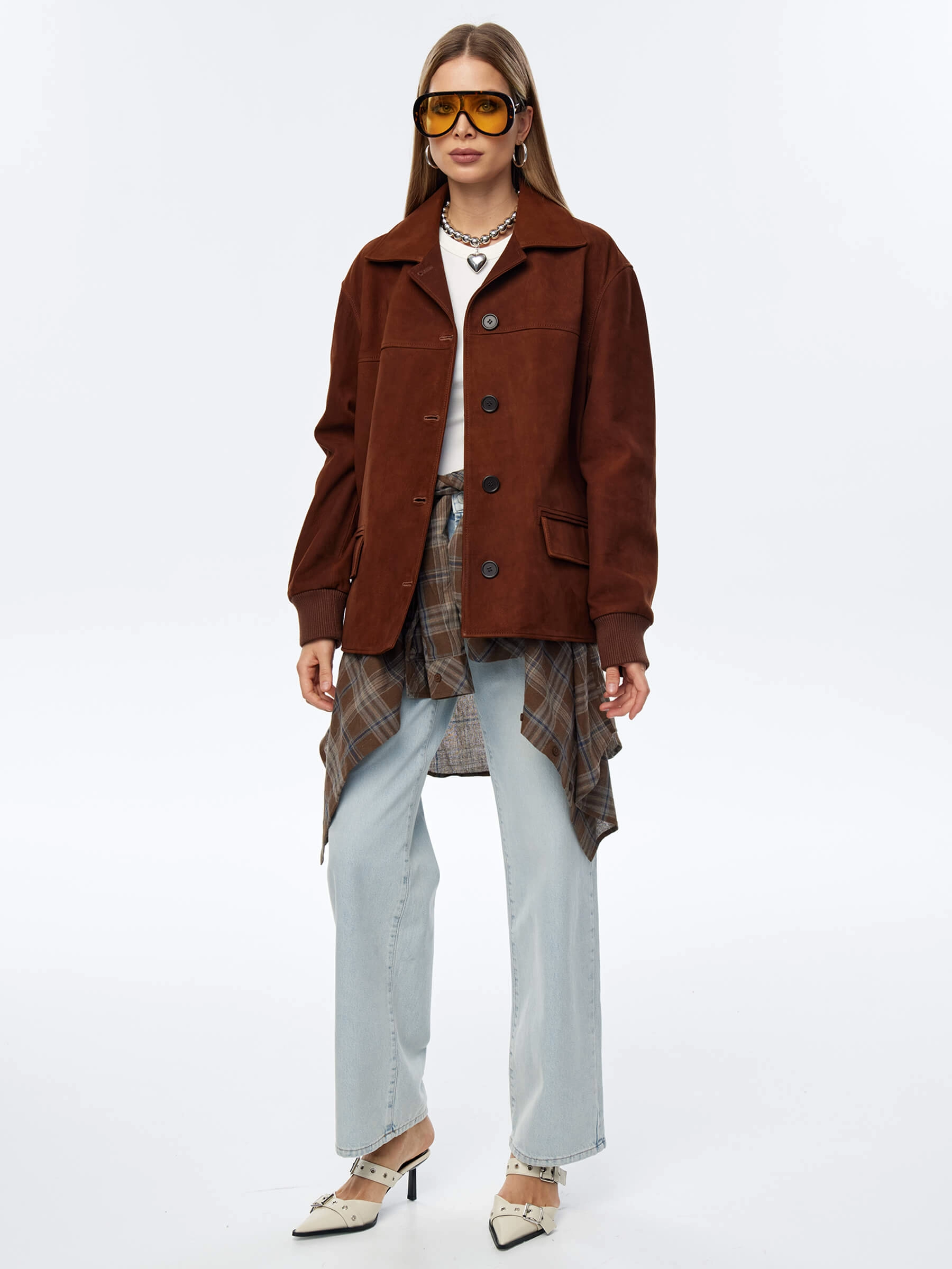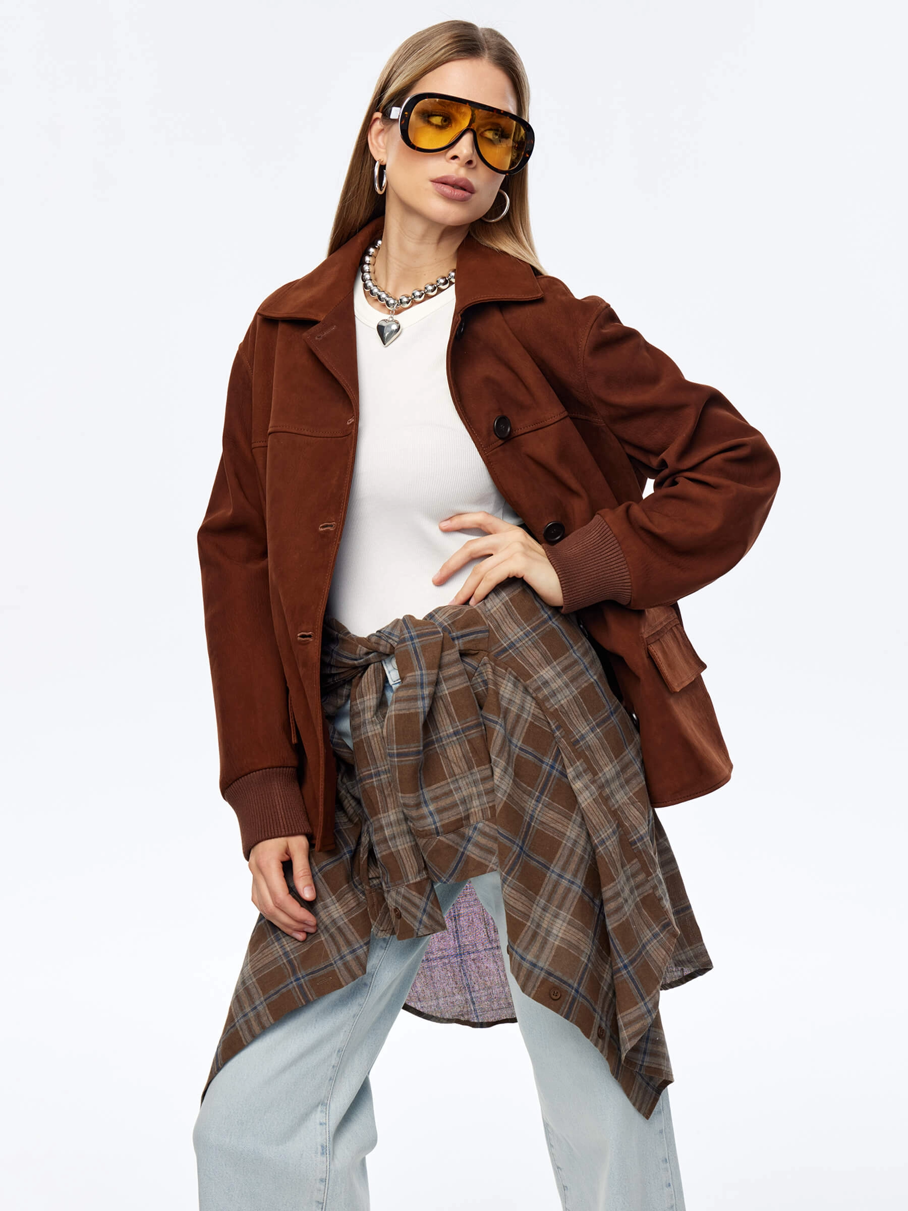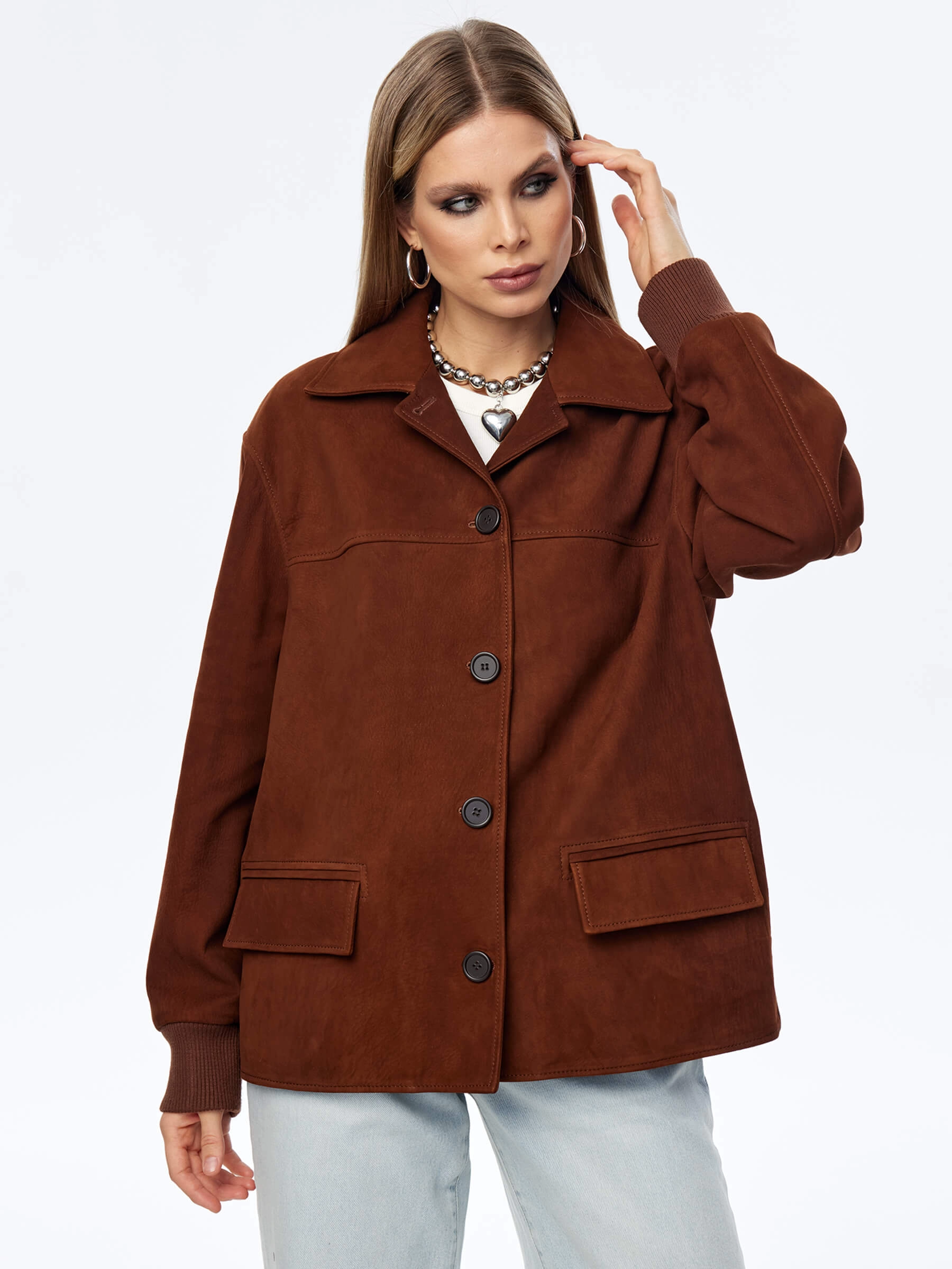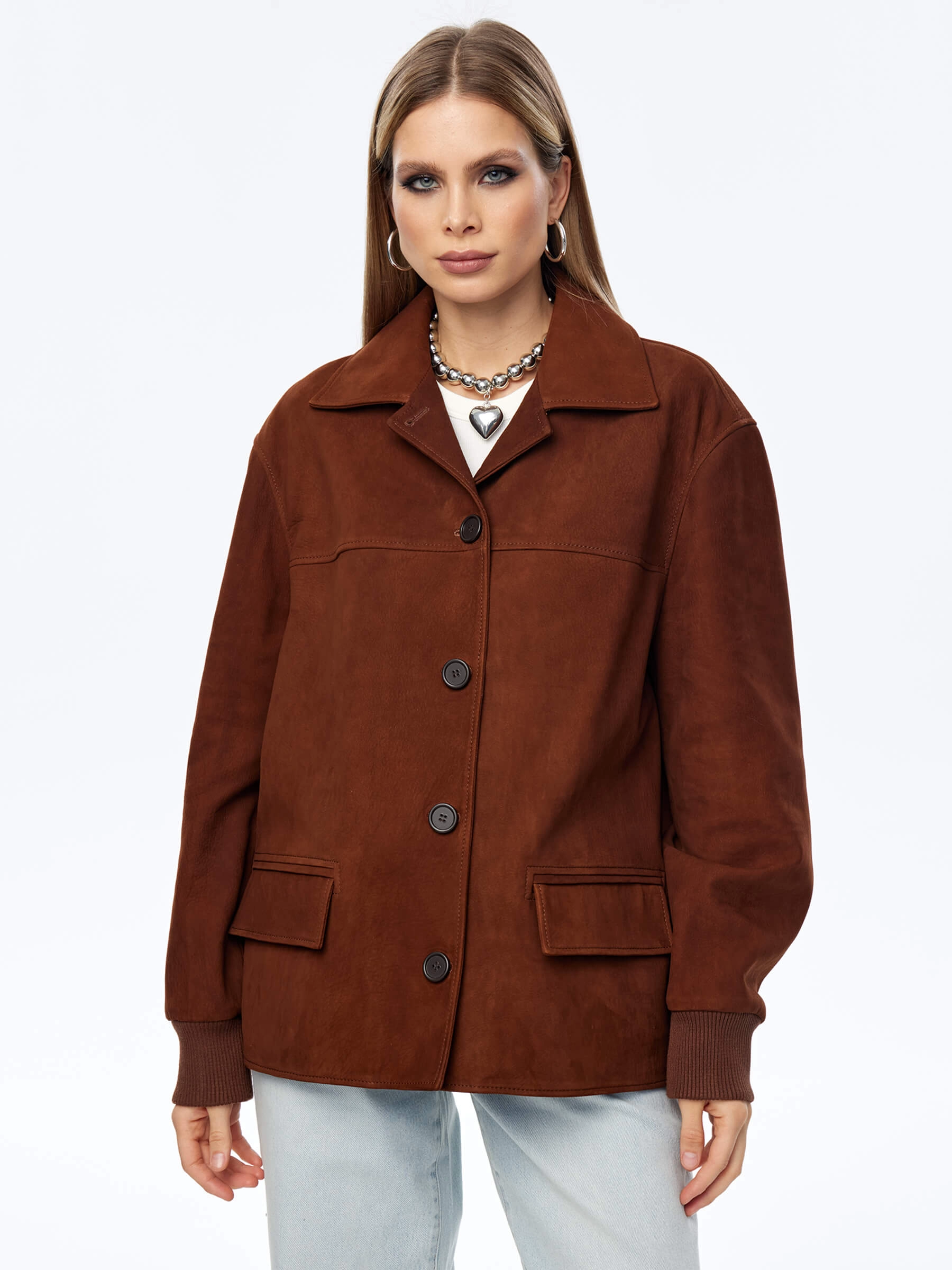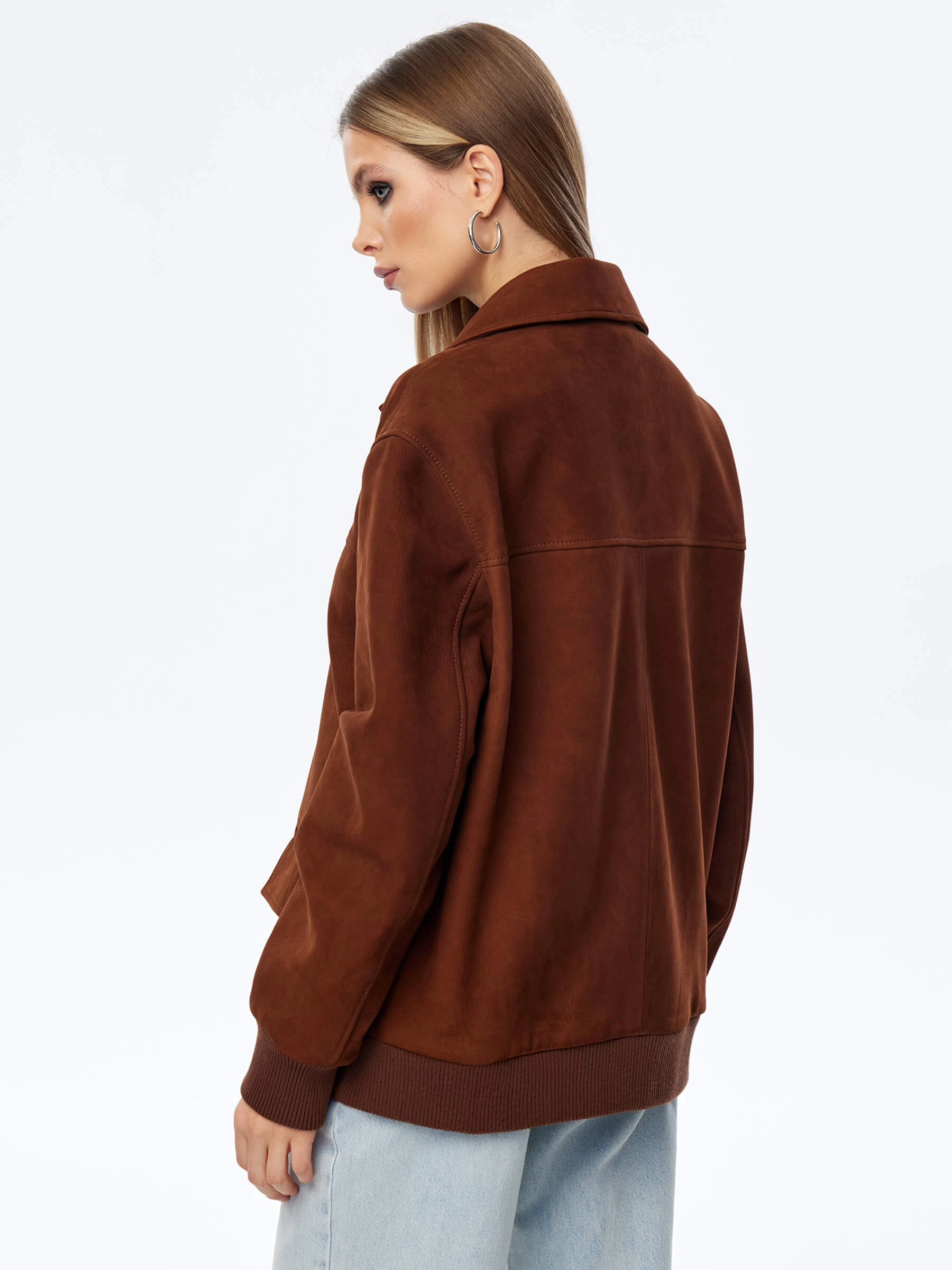 Эта удлиненная женская кожаная куртка-бомбер премиум-класса — воплощение лаконичного стиля, комфорта и универсальности для весенне-летнего сезона. При пошиве этой модели с английским воротником и двумя карманами мастера использовали мягкую натуральную кожу премиум-класса с благородной матовой фактурой, которая подчеркивает статусность и долговечность изделия. Модель свободного прямого силуэта со спущенной линией плеч и длиной 70 см не сковывает движений, удобно садится по фигуре, создавая расслабленный и актуальный образ. Дополнительный комфорт обеспечивают трикотажные манжеты и пояс, которые добавляют куртке спортивного шарма и мягко фиксируют силуэт. Классический английский воротник и лаконичный дизайн делают эту модель идеальным компаньоном для любого гардероба — куртка будет одинаково гармонично смотреться как с брюками или джинсами, так и с платьем или юбкой. Застежка на пуговицы сохраняет чистоту линий и элегантность образа. Совет стилиста: благодаря удлиненному крою и универсальному дизайну этот бомбер