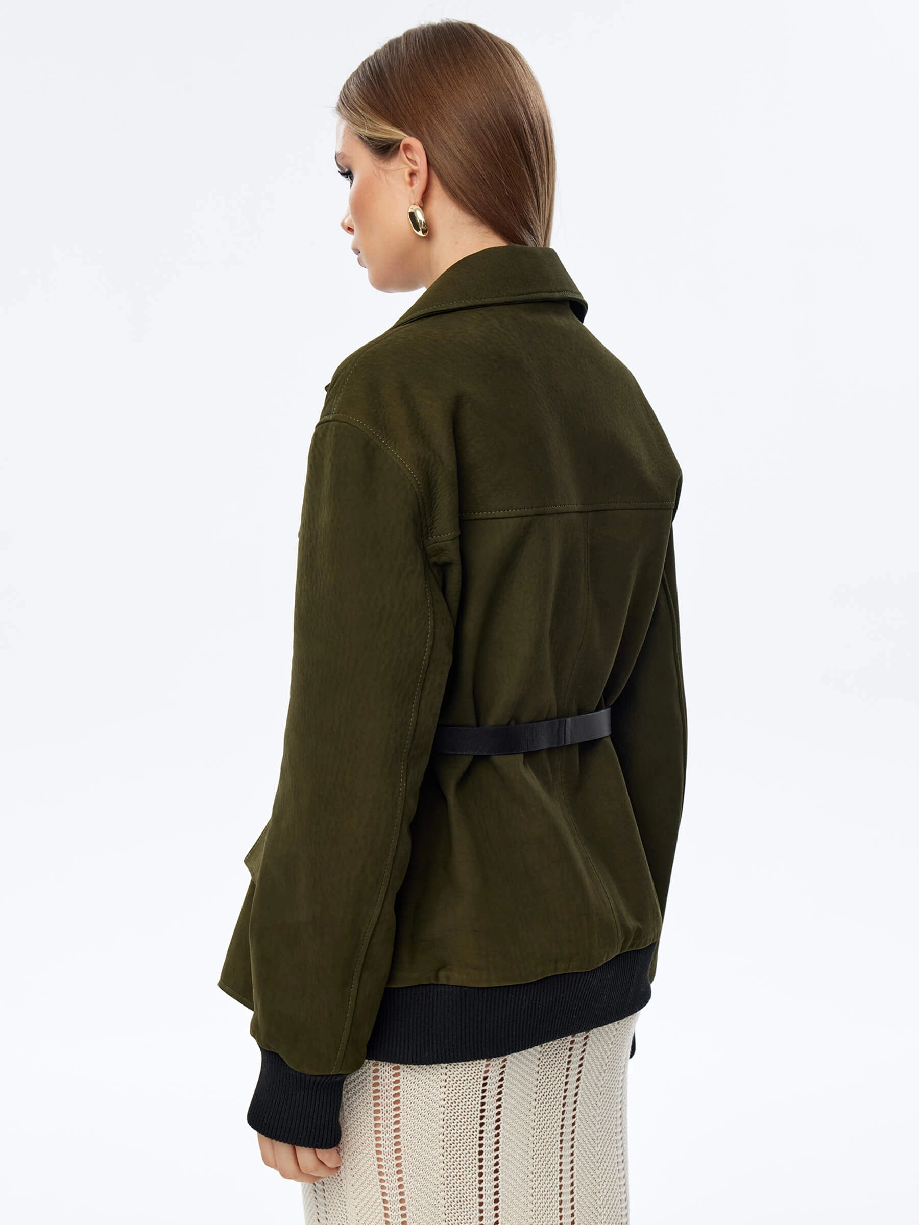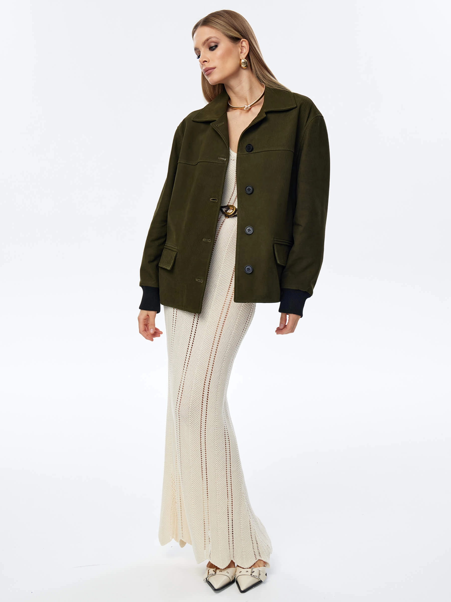Эта удлиненная женская кожаная куртка-бомбер премиум-класса — воплощение лаконичного стиля, комфорта и универсальности для весенне-летнего сезона. При пошиве этой модели с английским воротником и двумя карманами мастера использовали мягкую натуральную кожу премиум-класса с благородной матовой фактурой, которая подчеркивает статусность и долговечность изделия. Модель свободного прямого силуэта со спущенной линией плеч и длиной 70 см не сковывает движений, удобно садится по фигуре, создавая расслабленный и актуальный образ. Дополнительный комфорт обеспечивают трикотажные манжеты и пояс, которые добавляют куртке спортивного шарма и мягко фиксируют силуэт. Классический английский воротник и лаконичный дизайн делают эту модель идеальным компаньоном для любого гардероба — куртка будет одинаково гармонично смотреться как с брюками или джинсами, так и с платьем или юбкой. Застежка на пуговицы сохраняет чистоту линий и элегантность образа. Совет стилиста: благодаря удлиненному крою и универсальному дизайну этот бомбер