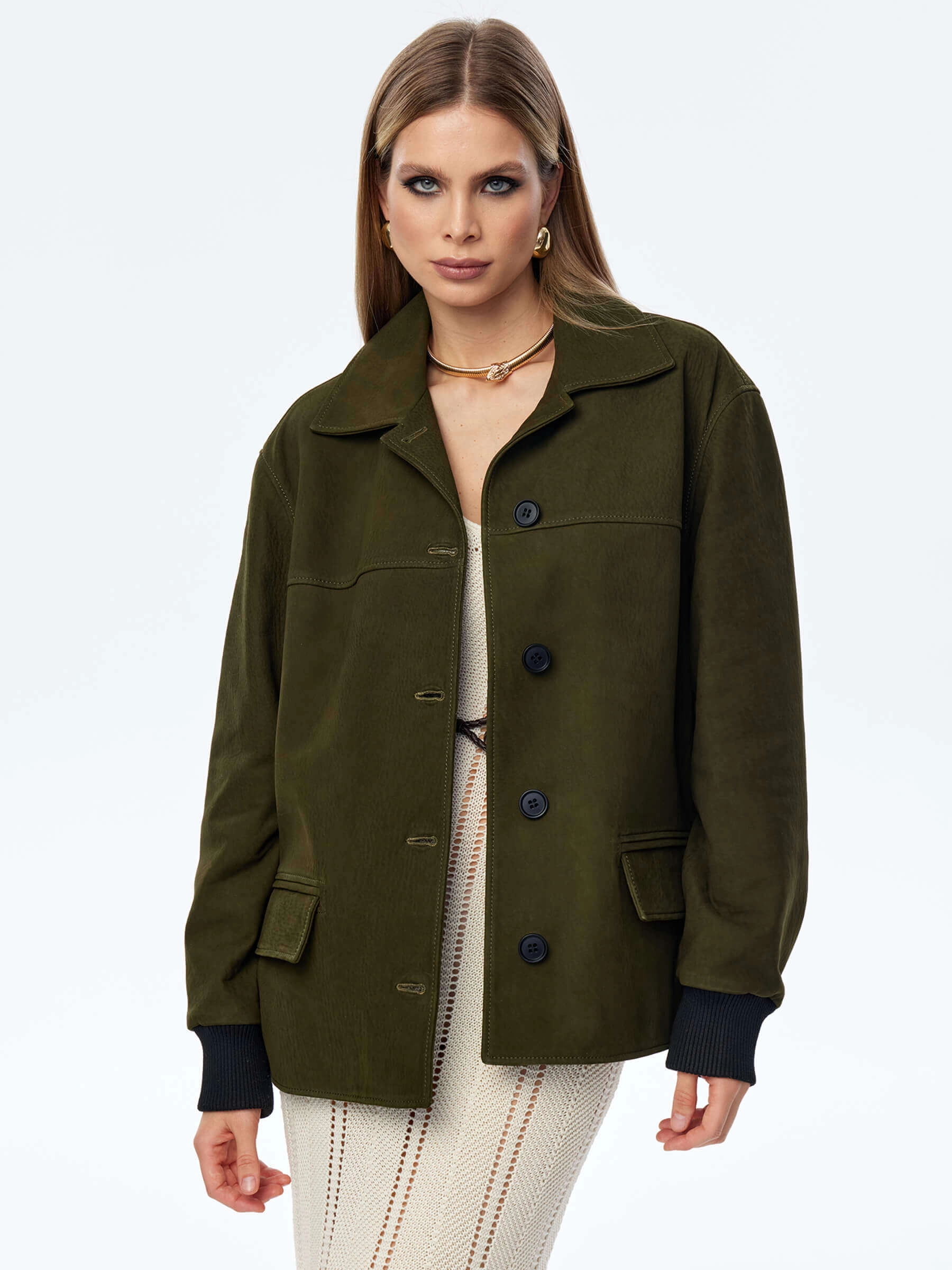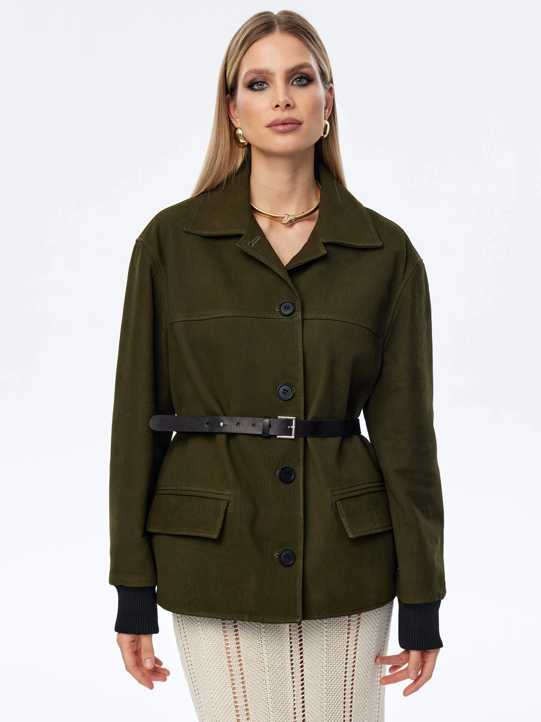 Товар кожаная куртка бомбер для женщин премиум класса 3065, хаки, размер 48, артикул 24060 выполнен из натуральной кожи с застежкой пуговицы. Рассчитан на сезон: весна-лето. Длина изделия 70 см, силуэт прямой.