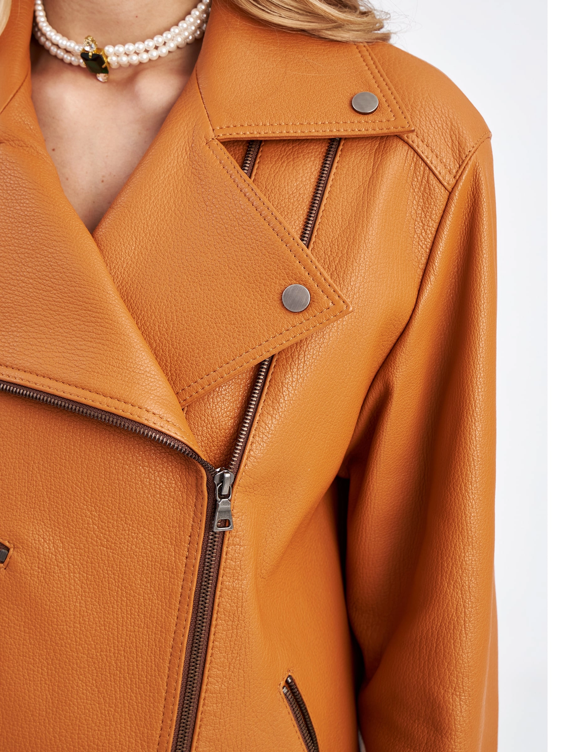 Женская кожаная куртка косуха премиум класса 3047, табачная, размер 48, артикул 23310