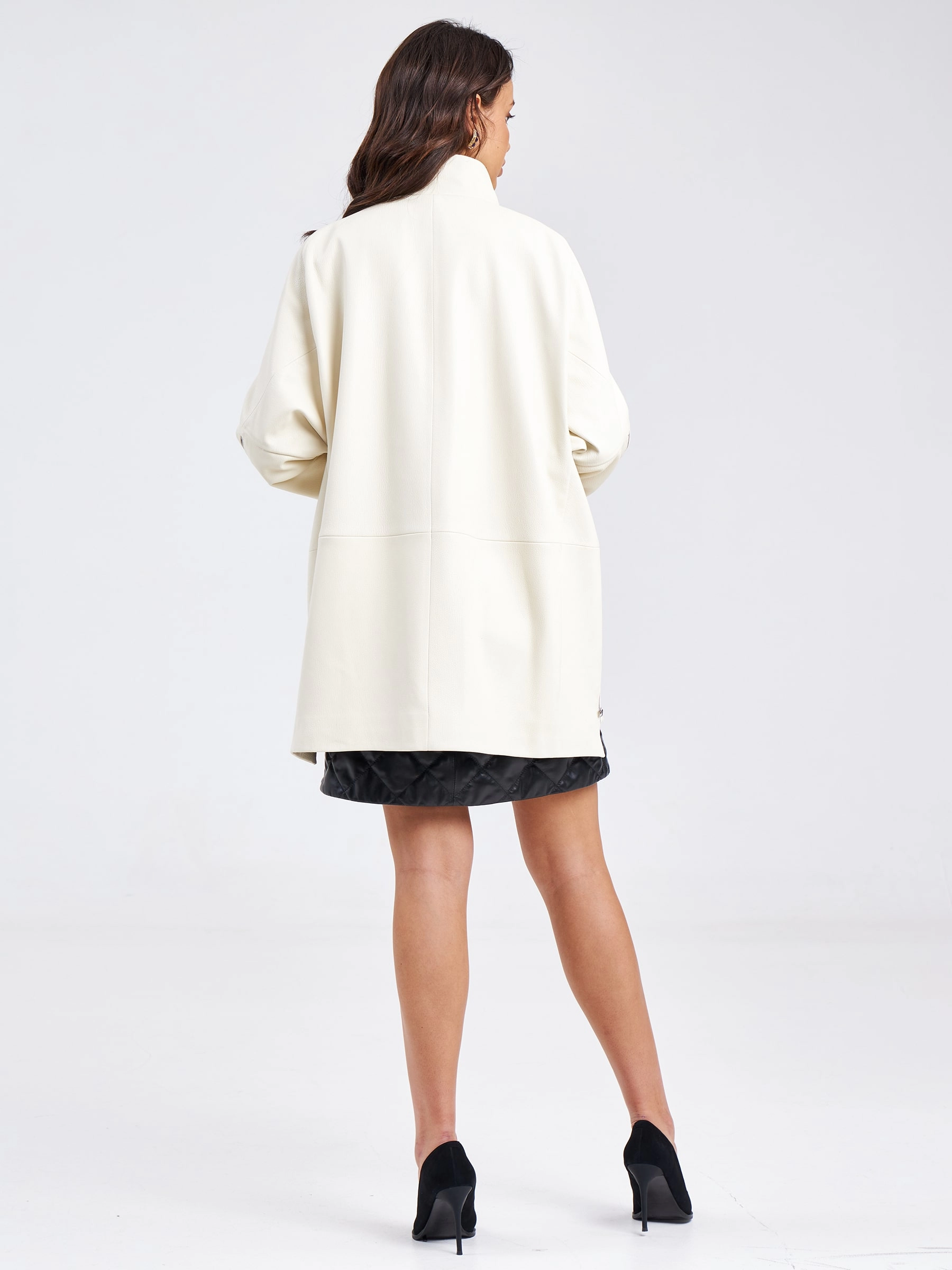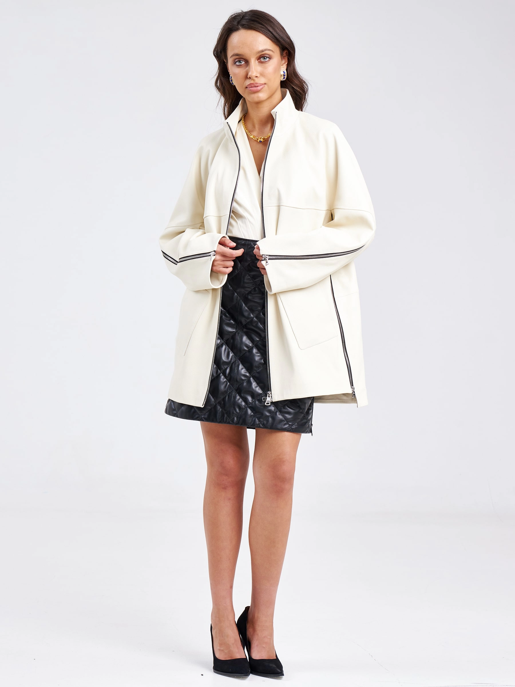 Товар кожаная женская куртка оверсайз премиум класса 3038, белая, размер 50, артикул 23150 выполнен из натуральной кожи с застежкой молния. Рассчитан на сезон: весна-лето. Длина изделия 80 см, силуэт свободный.
