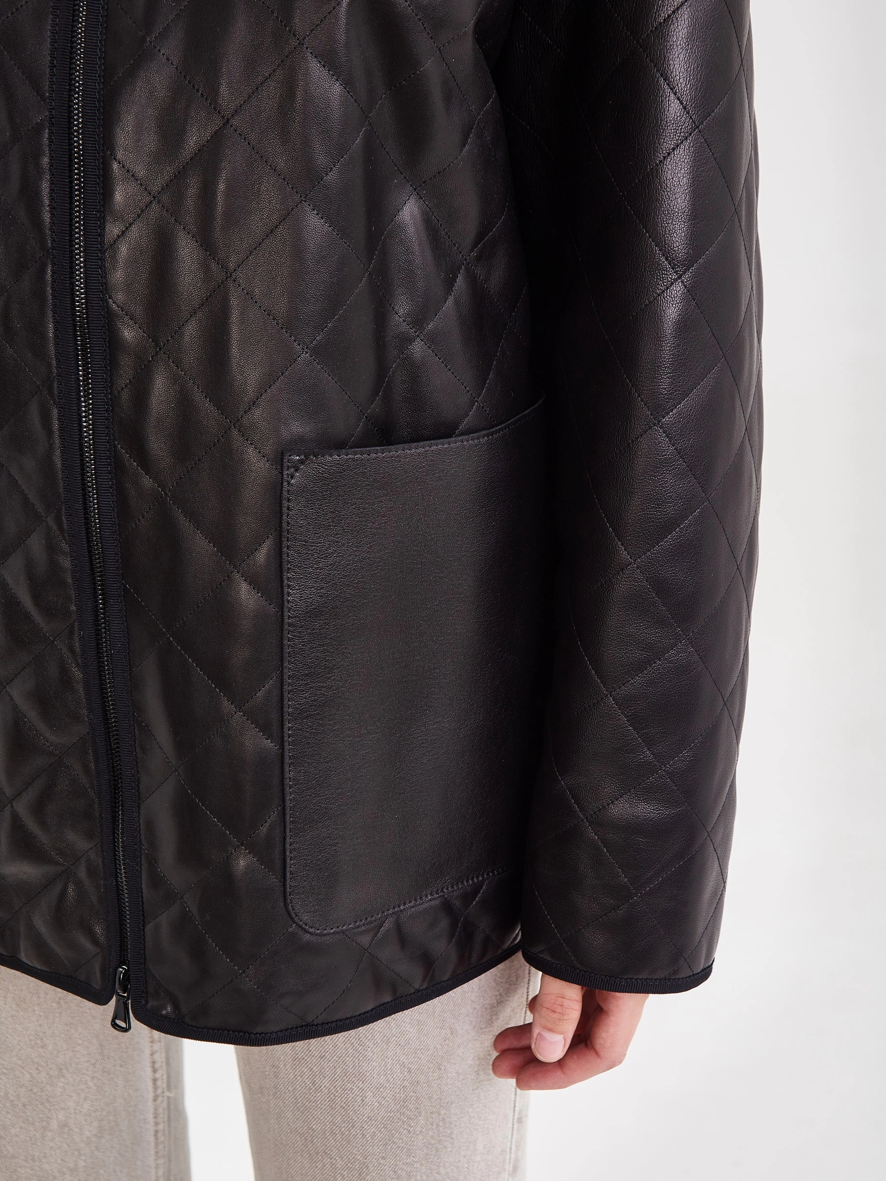 Заменить привычные элементы гардероба и разнообразить стиль к весне, поможет удлиненная стеганая куртка выполненная из натуральной кожи премиум класс. Прямой крой, длинный рукав, воротник стойку можно трансформировать в отложной .Модель дополнили двумя накладными карманами. Детали изделия кроя подчеркнули тонким контрастным кантом.