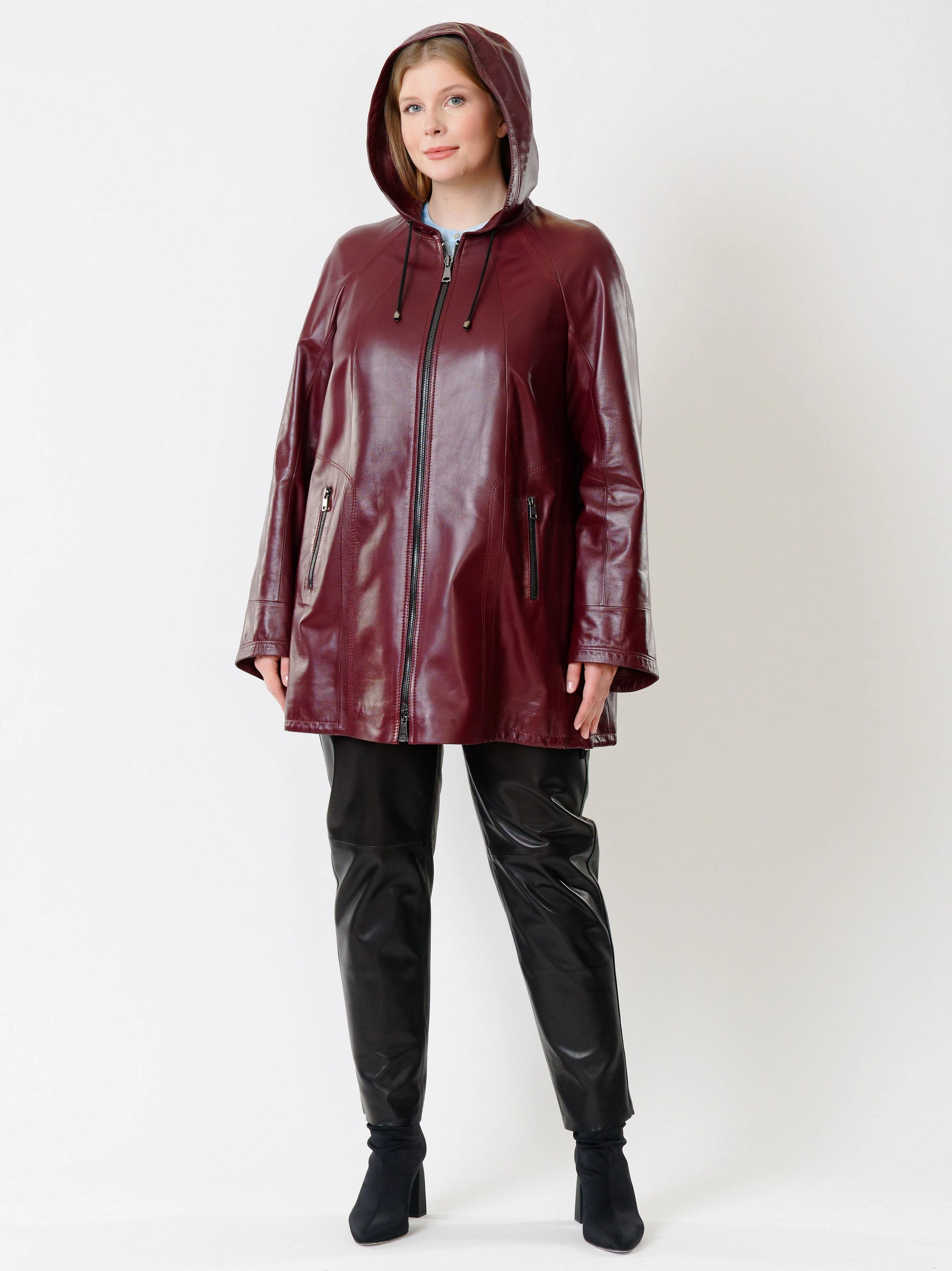 Товар кожаная женская куртка оверсайз с капюшоном 383, бордовая, размер 52, артикул 91301 выполнен из натуральной кожи с застежкой молния. Рассчитан на сезон: демисезон. Длина изделия 74 см, силуэт трапеция.