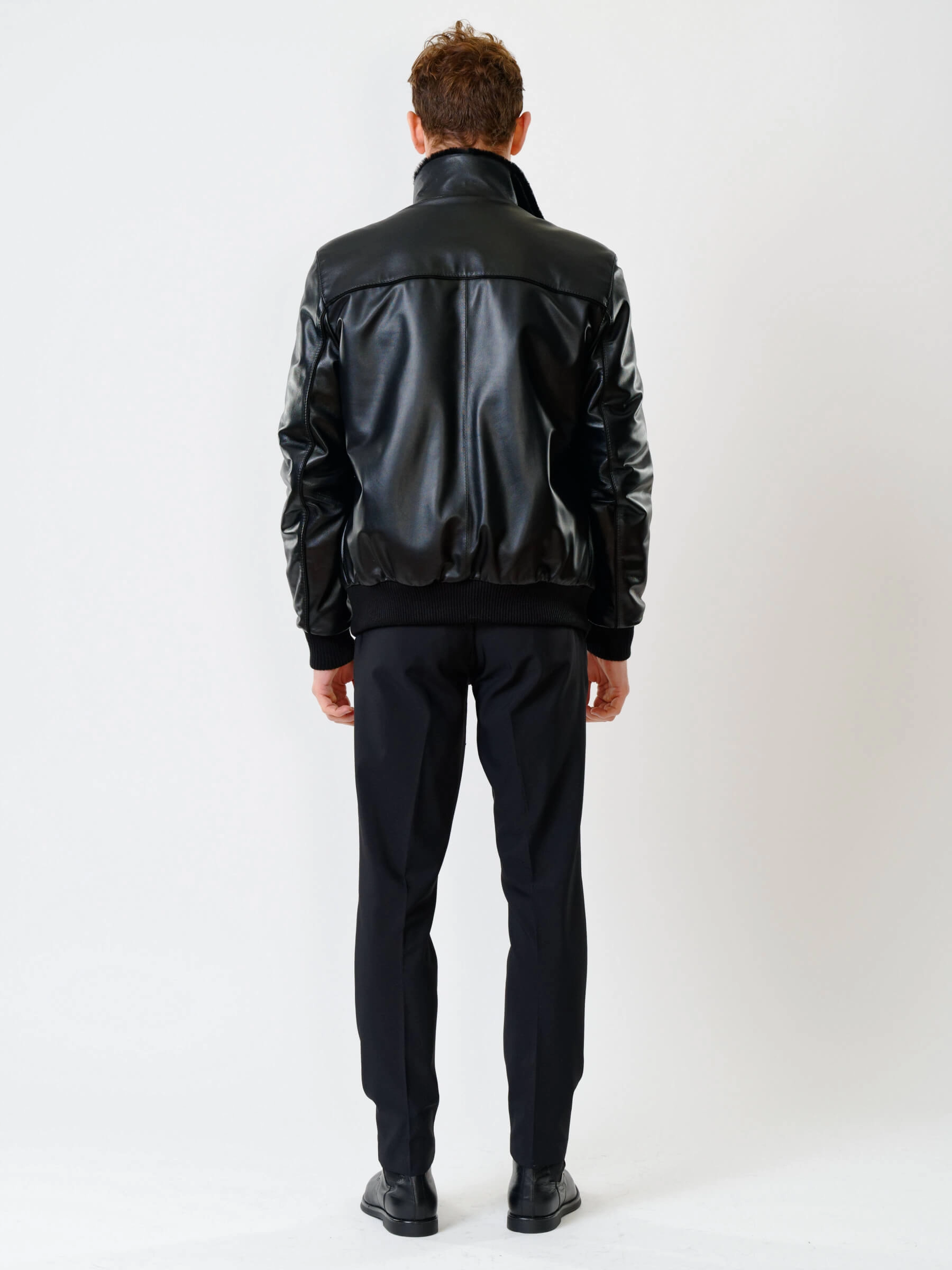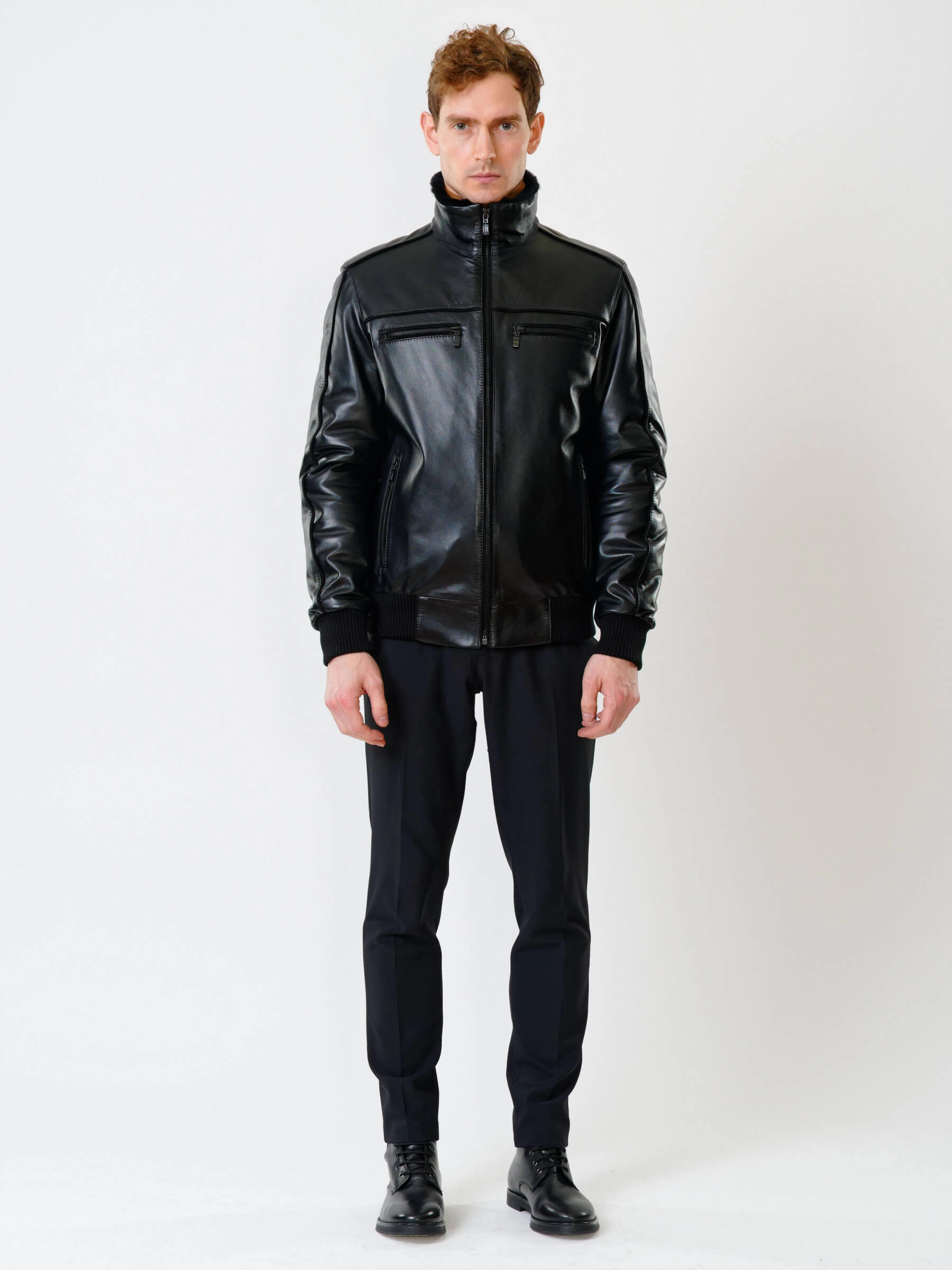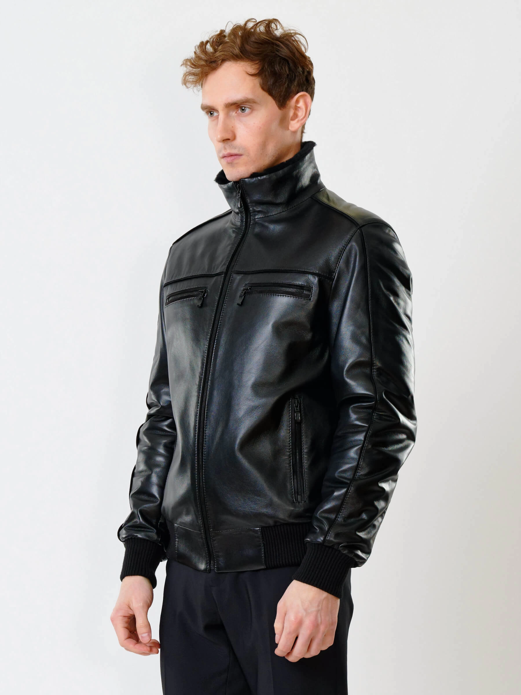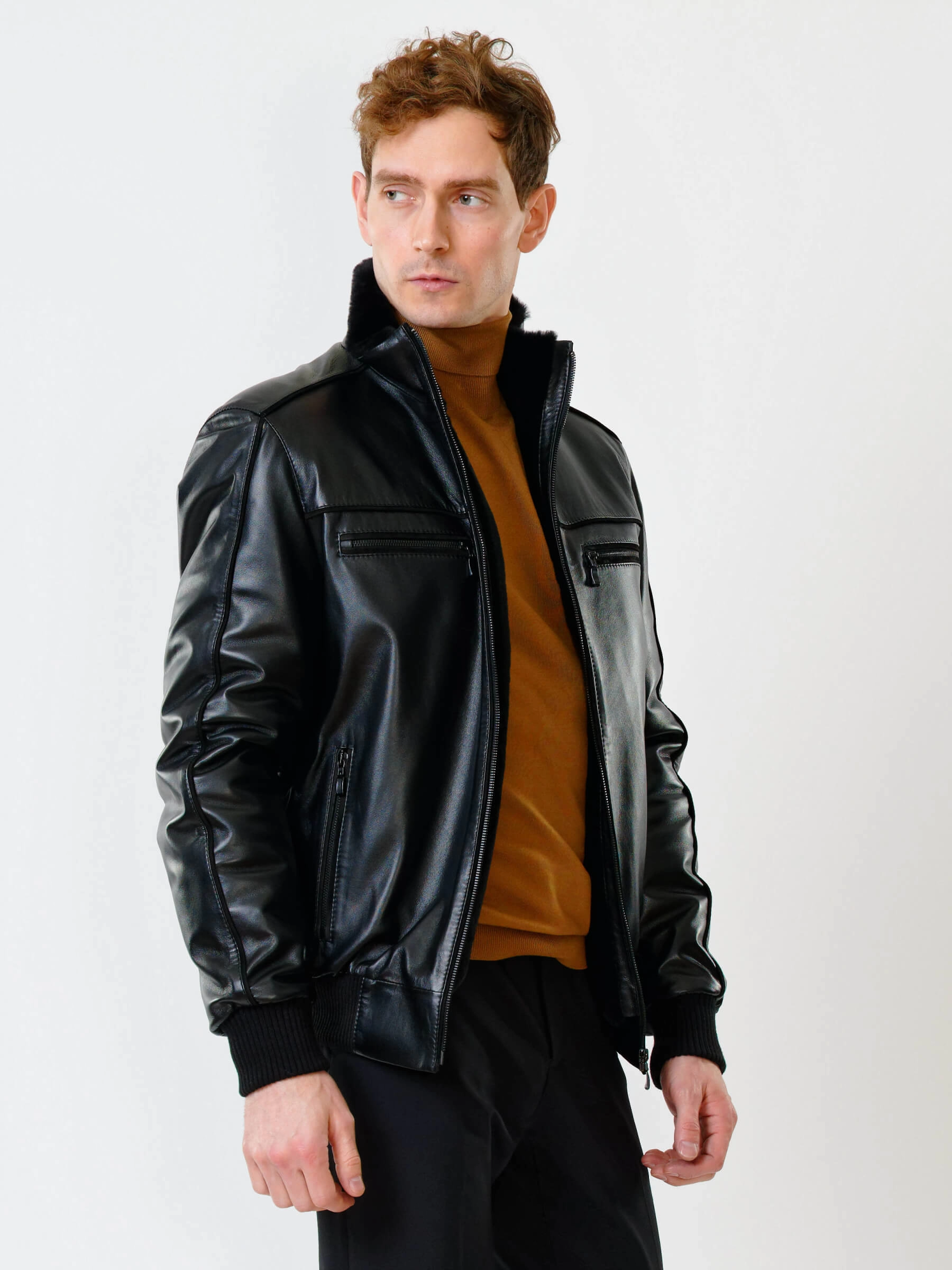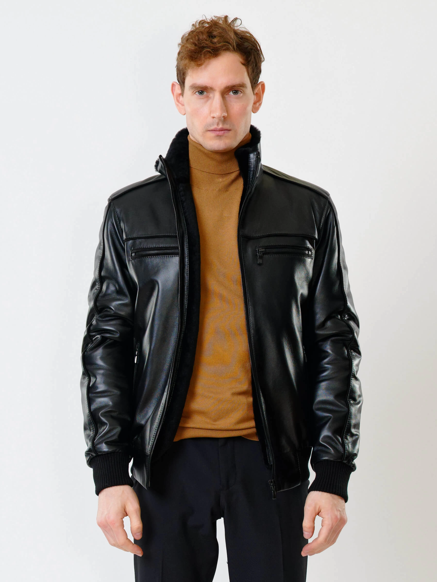 Мужская зимняя кожаная куртка на подстежке из овчины 515, черная, размер 50, артикул 40840
