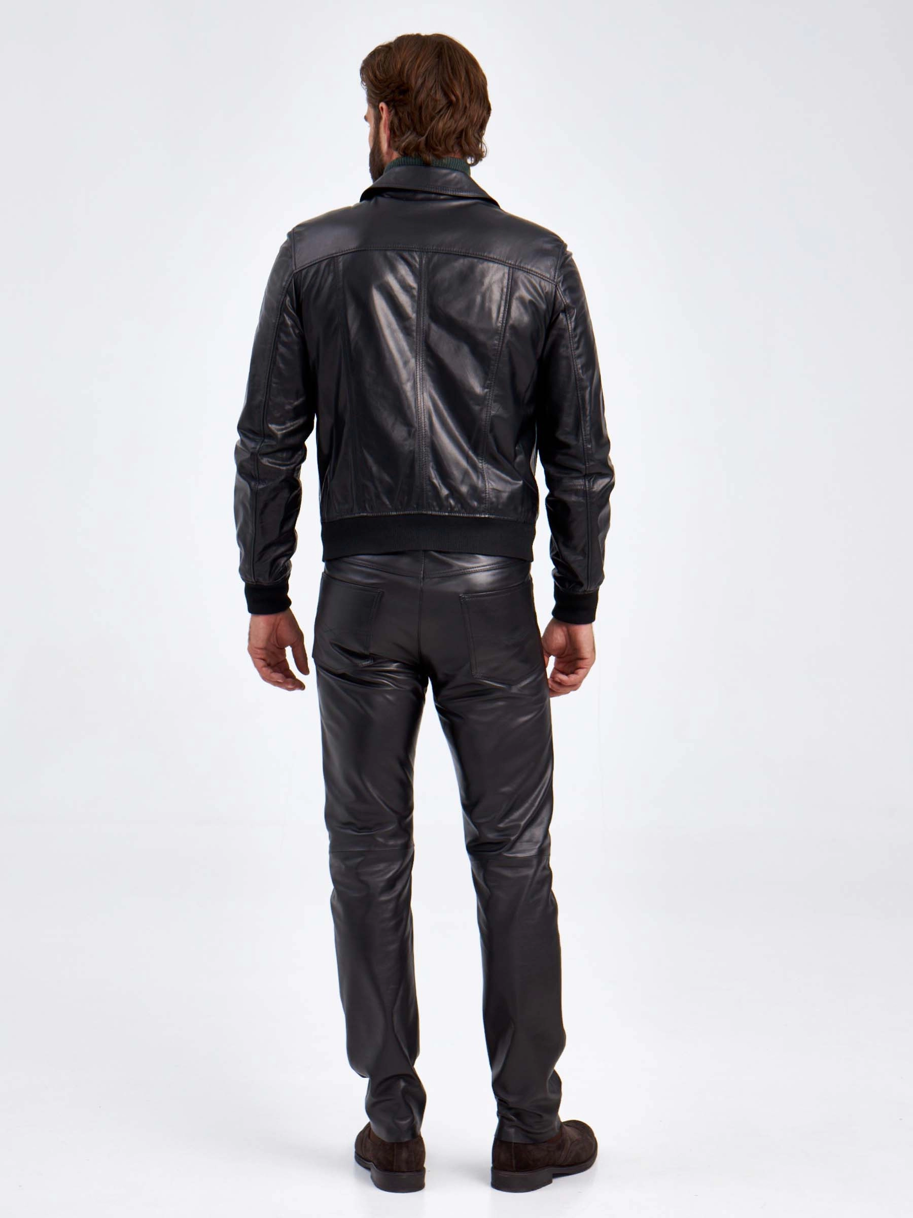 Кожаная куртка бомбер мужская 2010-16, черная, размер 50, артикул 29350