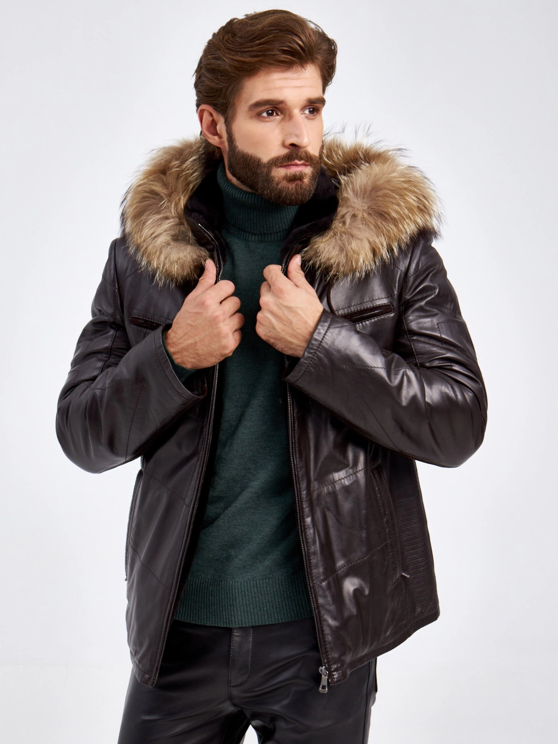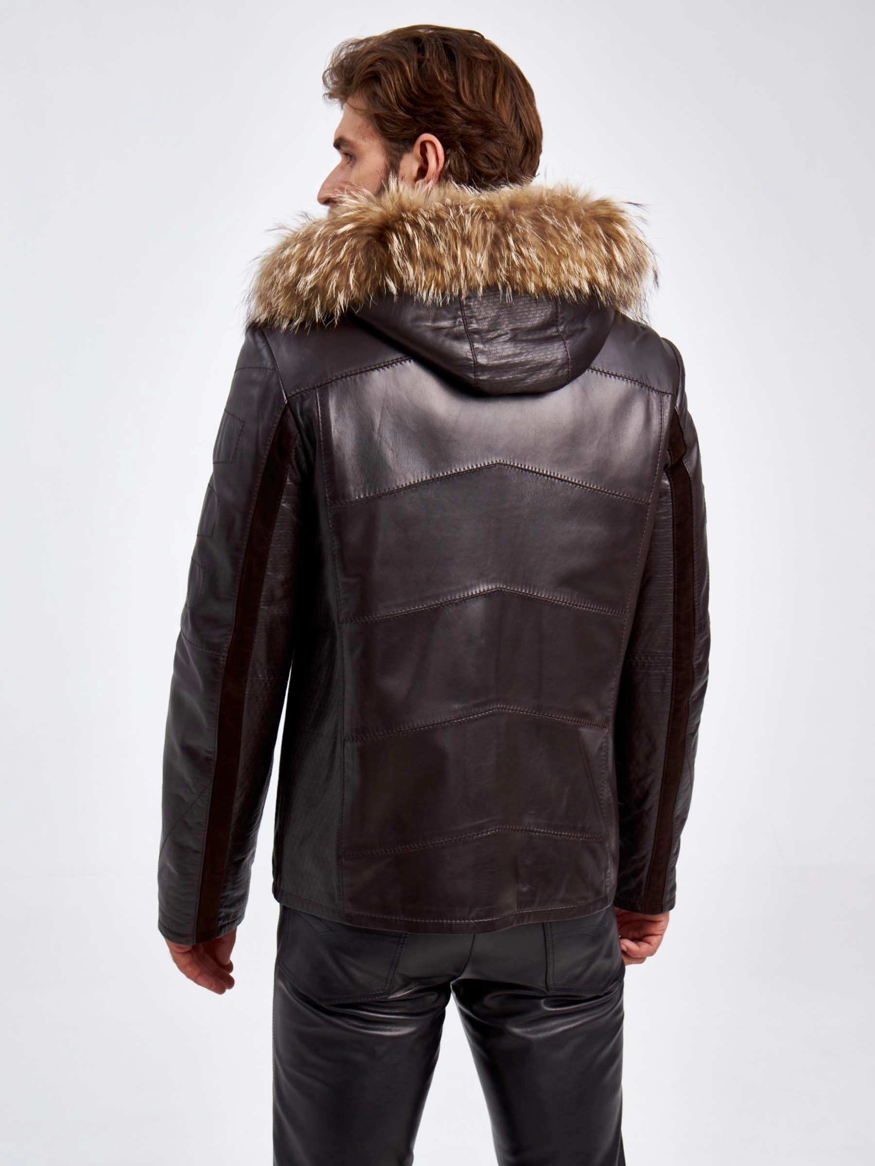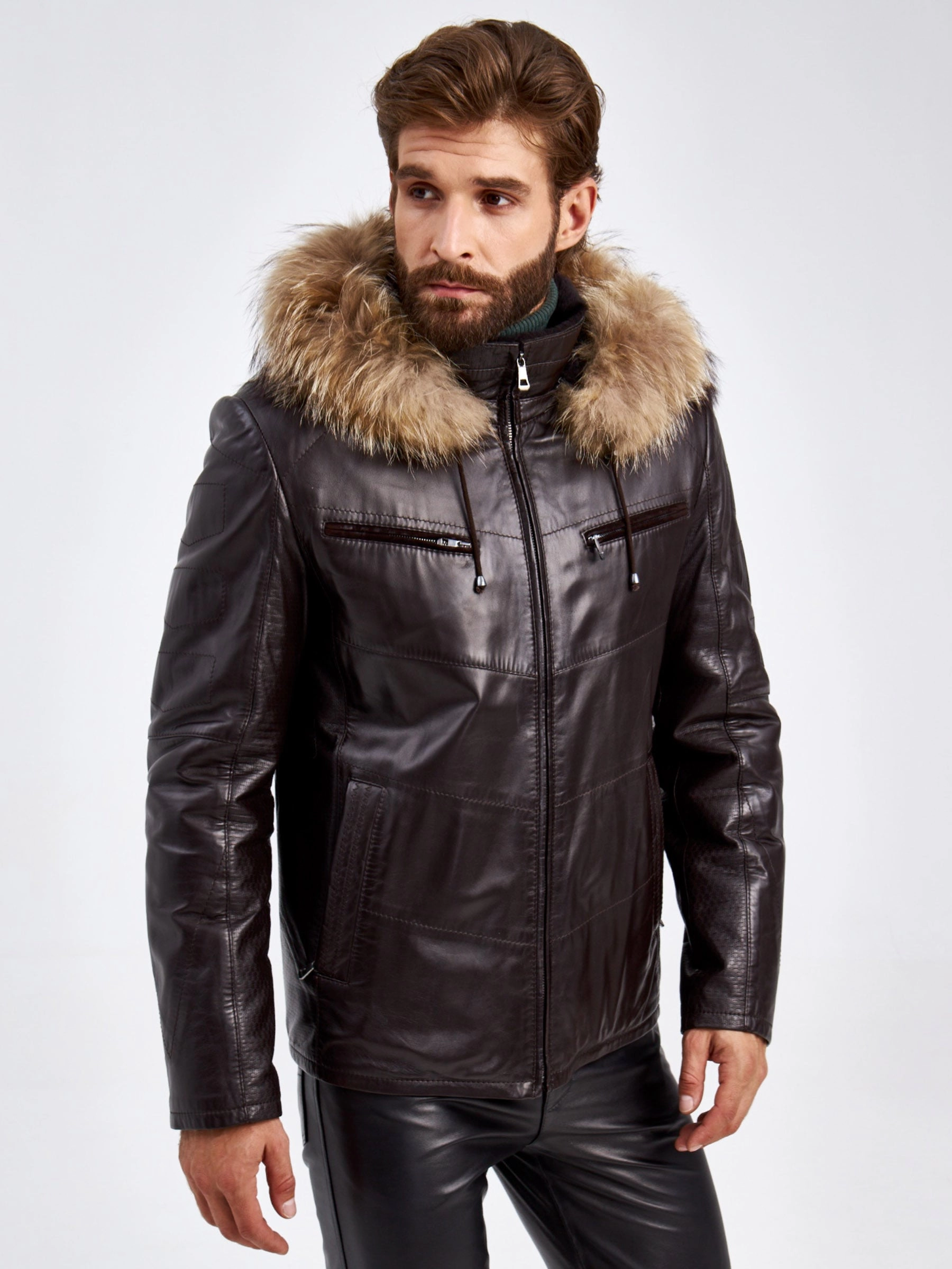 Отличным дополнением к зимнему гардеробу станет утепленная кожаная куртка с капюшоном. Лицевая сторона выполнена из гладкой высококачественной кожи. Внутренняя из шелковистого на ощупь меха ягненка. Воротник- стойка с отстегивающимся капюшоном и отделкой мехом енот. Силуэт- полуприталенный. Модель дополнили четырьмя карманами. Куртка, которая подарит вам тепло и комфорт.