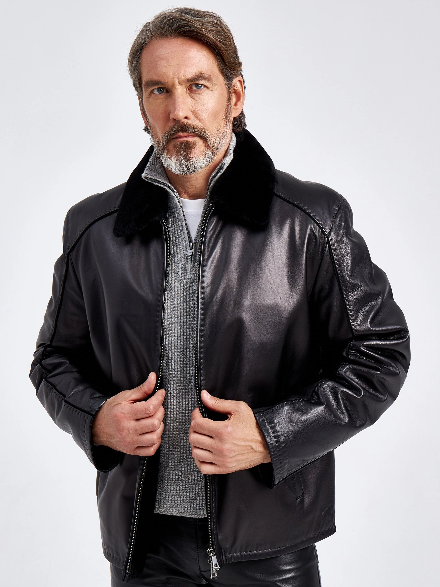 Куртка универсального черного цвета- это отличная основа для базового гардероба. Мастера использовали мягкую кожу и плотную овчину с густым ворсом, которая особенно хорошо сохраняет тепло. Небольшой штрих к модели добавит лишь ручной стежок. Благодаря классическому крою, модель идеально подружится как со строгими брюками, так и с любыми джинсами.