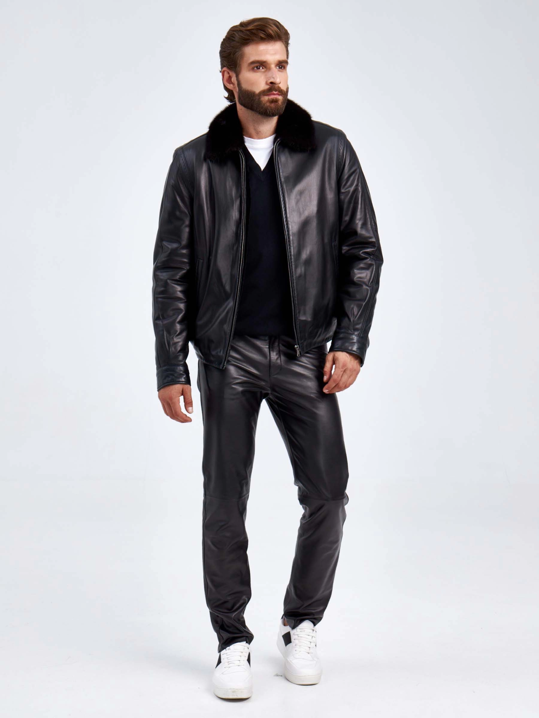 Товар кожаная зимняя мужская куртка на подкладке из овчины с норковым воротником 4634, черная, размер 48, артикул 29420 выполнен из натуральной кожи с застежкой молния. Рассчитан на сезон: осень-зима. Длина изделия 51-74 см, силуэт свободный.