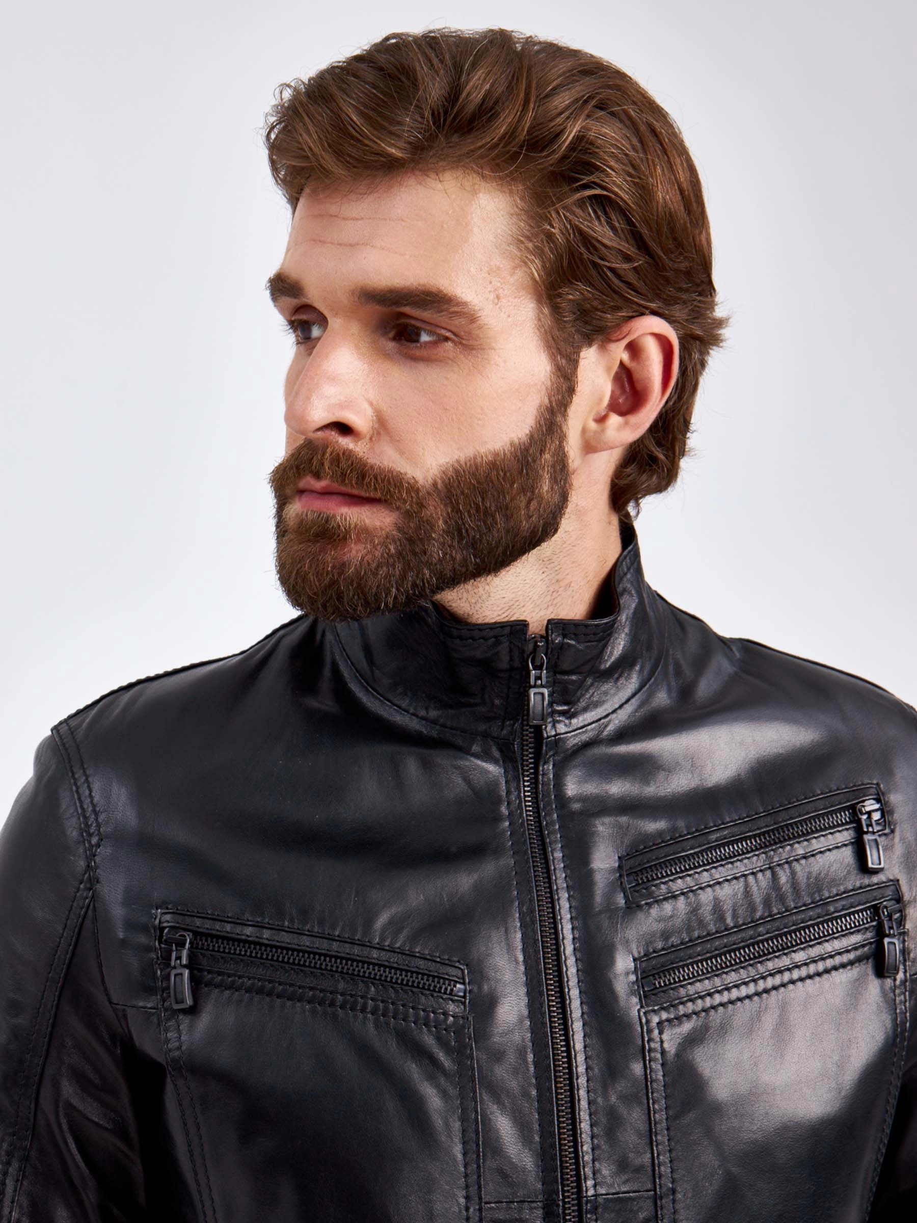 Короткая кожаная мужская куртка 502, черная, размер 50, артикул 29110