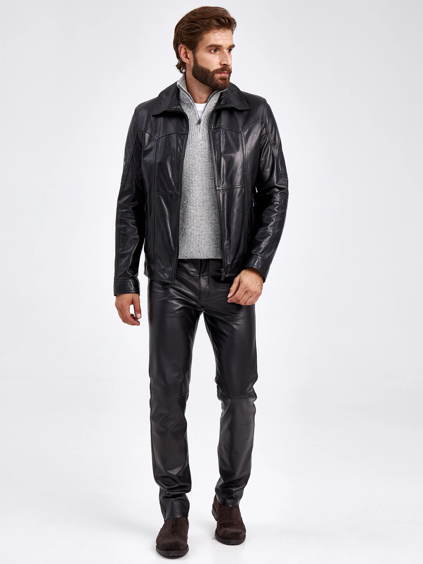 Короткая кожаная куртка для мужчин 504, черная, размер 50, артикул 29330