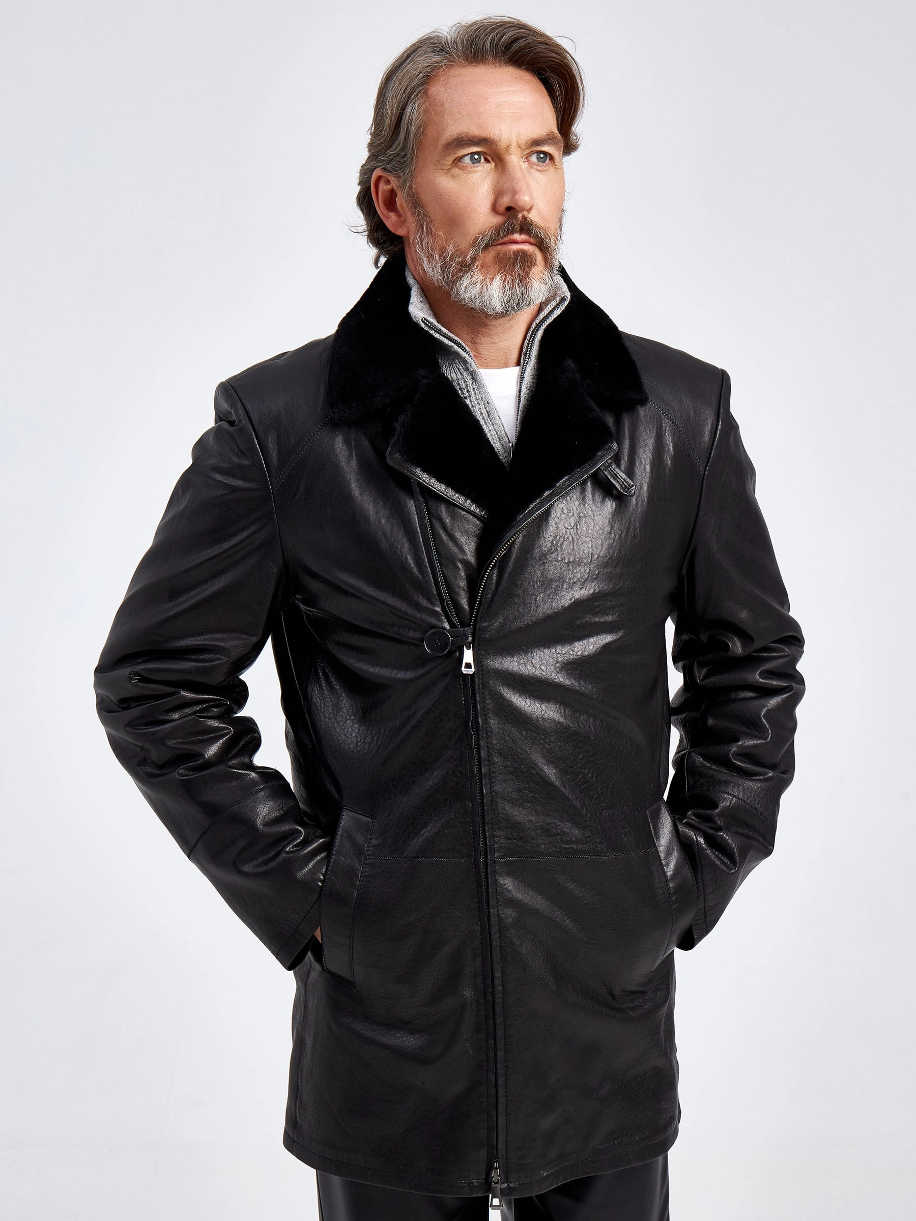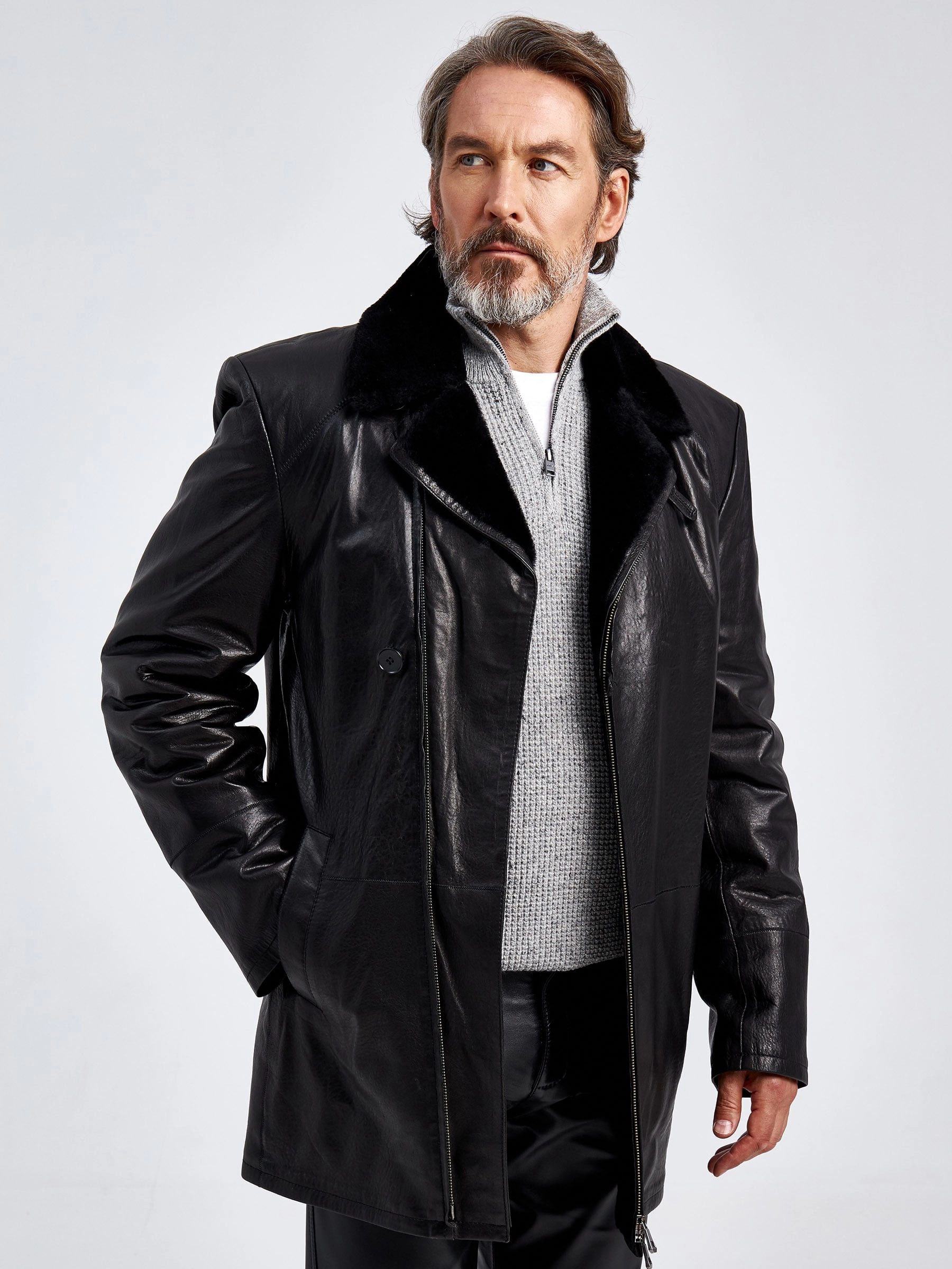 Разнообразить гардероб поможет стильная утепленная куртка. Мастера использовали мягкую черную кожу и овчину с плотным ворсом. Изделие получилось легким и теплым. Великолепное сочетание как со свободным, так и с классическим стилем.