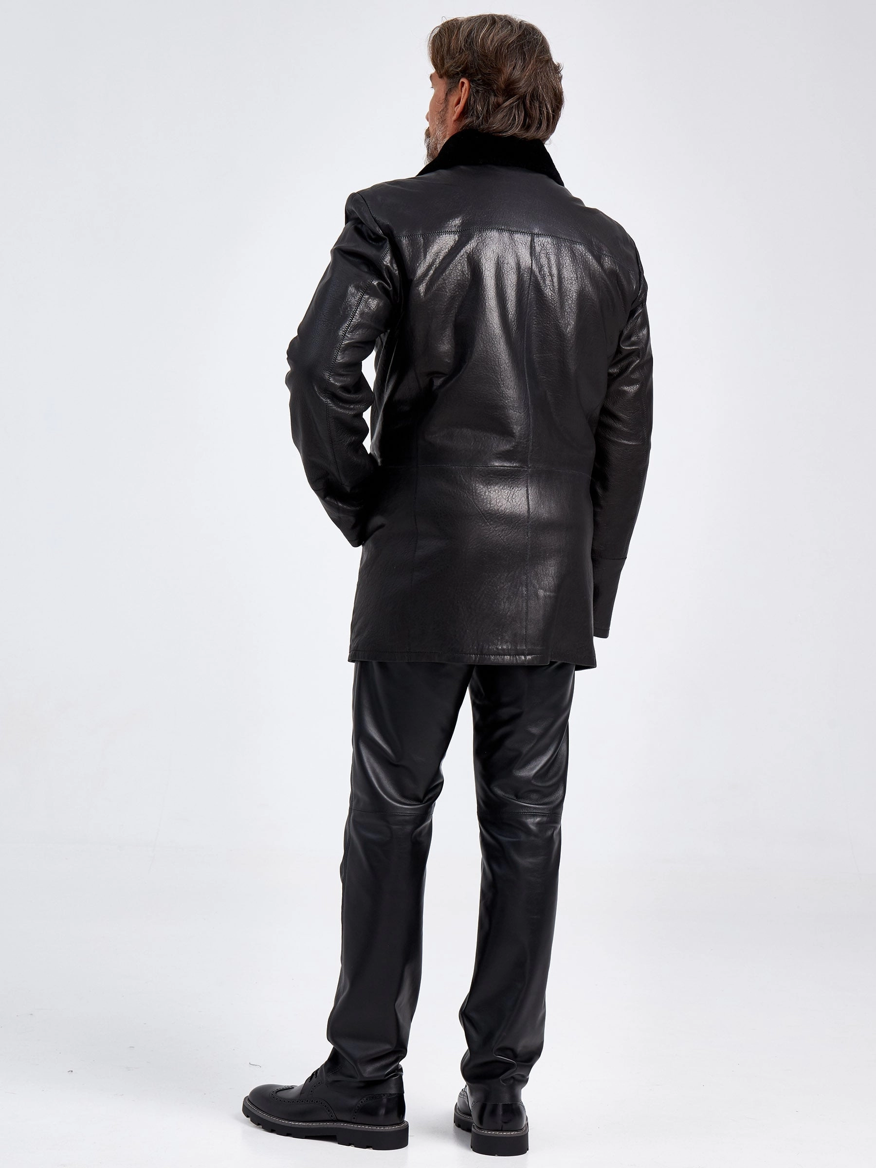 Товар зимняя мужская кожаная куртка на подкладке из овчины 5358, черная, размер 46, артикул 40630 выполнен из натуральной кожи с застежкой молния. Рассчитан на сезон: осень-зима. Длина изделия 75-90 см, силуэт полуприлегающий.