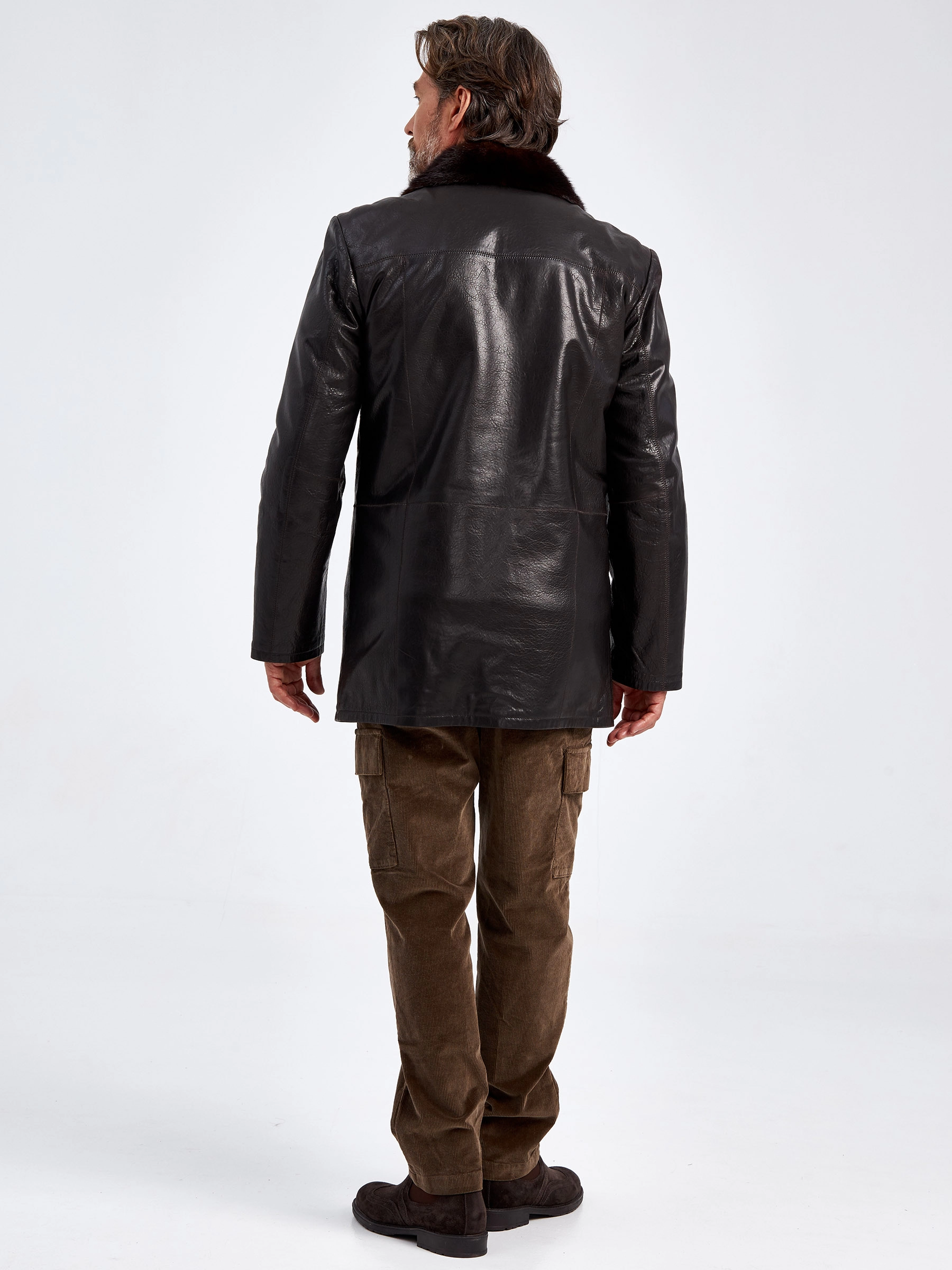 Товар зимняя мужская кожаная куртка на подкладке из овчины с воротником меха норки премиум класса 5450, коричневая, размер 46, артикул 40640 выполнен из натуральной кожи с застежкой пуговицы. Рассчитан на сезон: осень-зима. Длина изделия 90 см, силуэт прямой.
