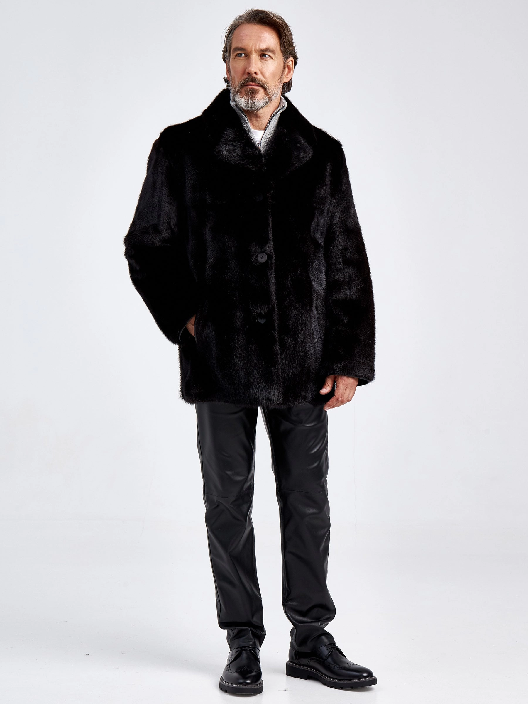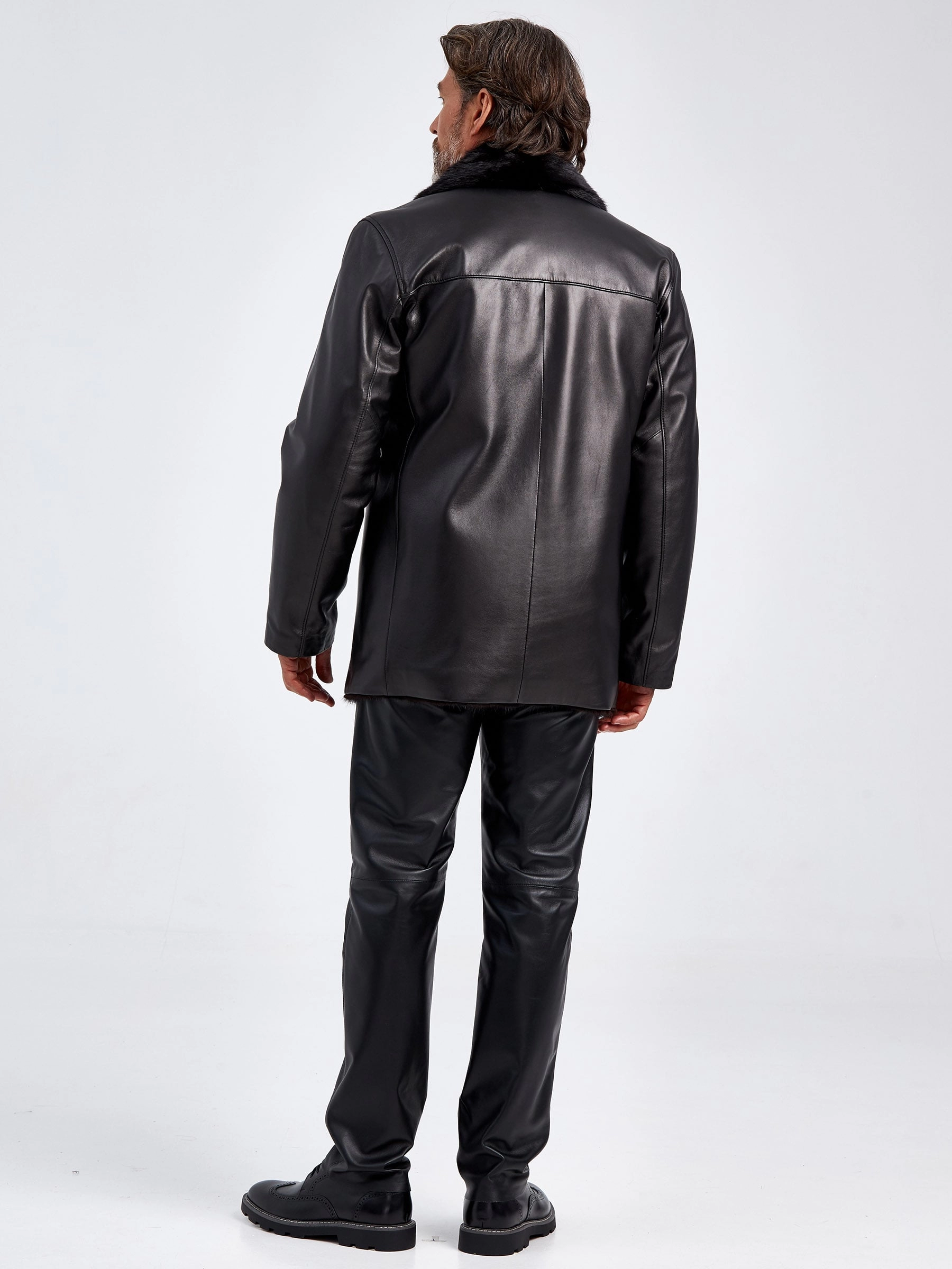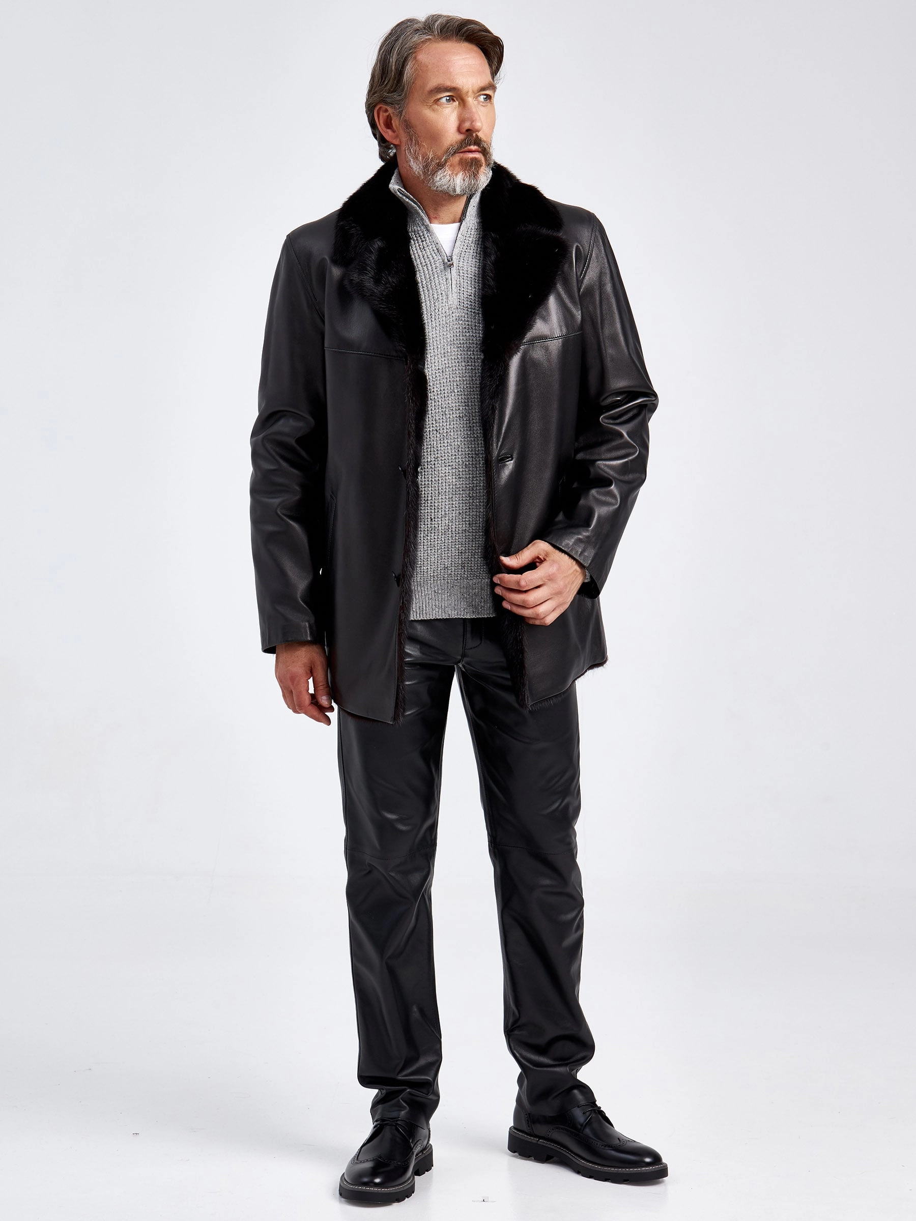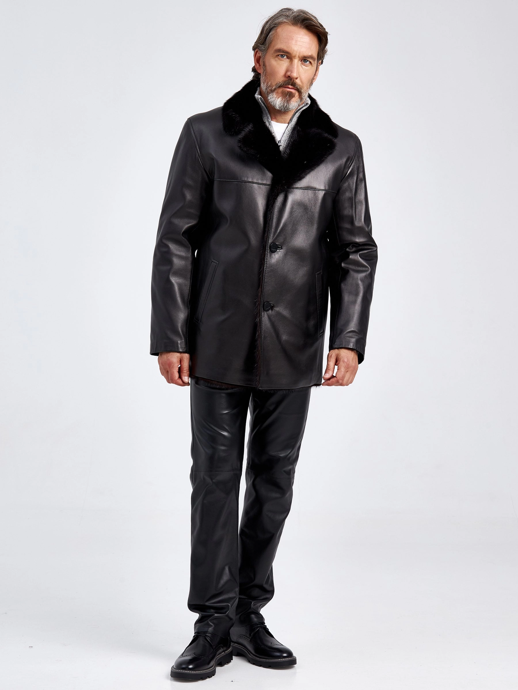 Двустороннее меховое кожаное полупальто на подкладке из меха норки Delon, черное, размер 48, артикул 40690