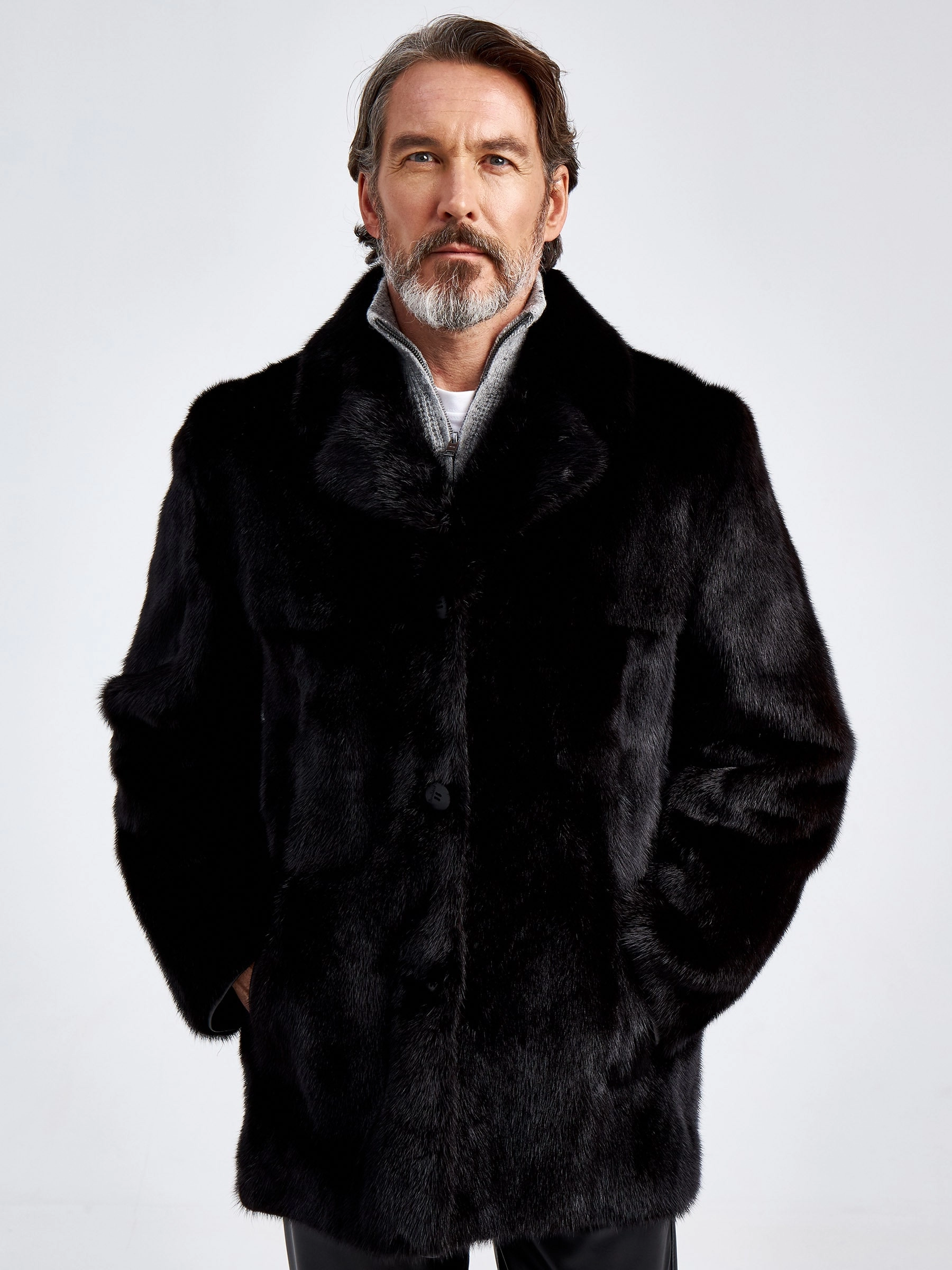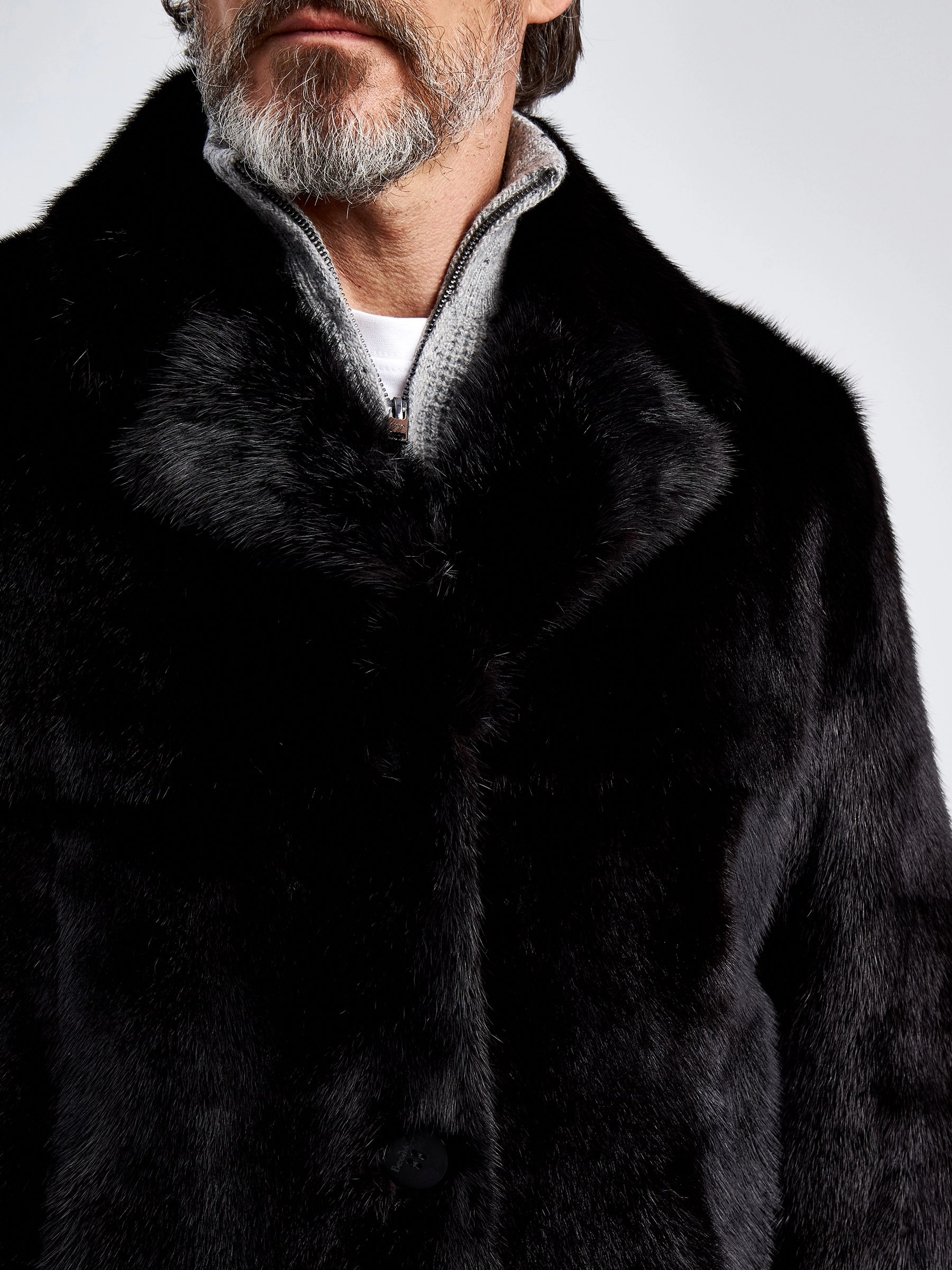 Товар двустороннее меховое кожаное полупальто на подкладке из меха норки delon, черное, размер 48, артикул 40690 выполнен из натуральной кожи с застежкой пуговицы. Рассчитан на сезон: осень-зима. Длина изделия 82 см, силуэт прямой.