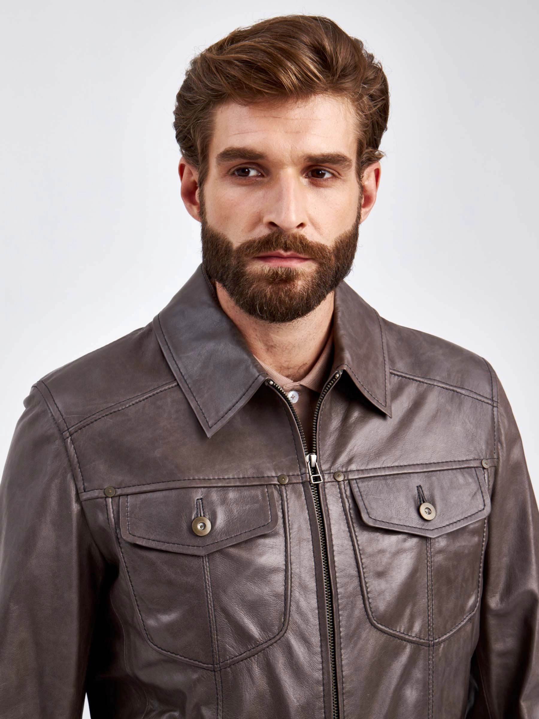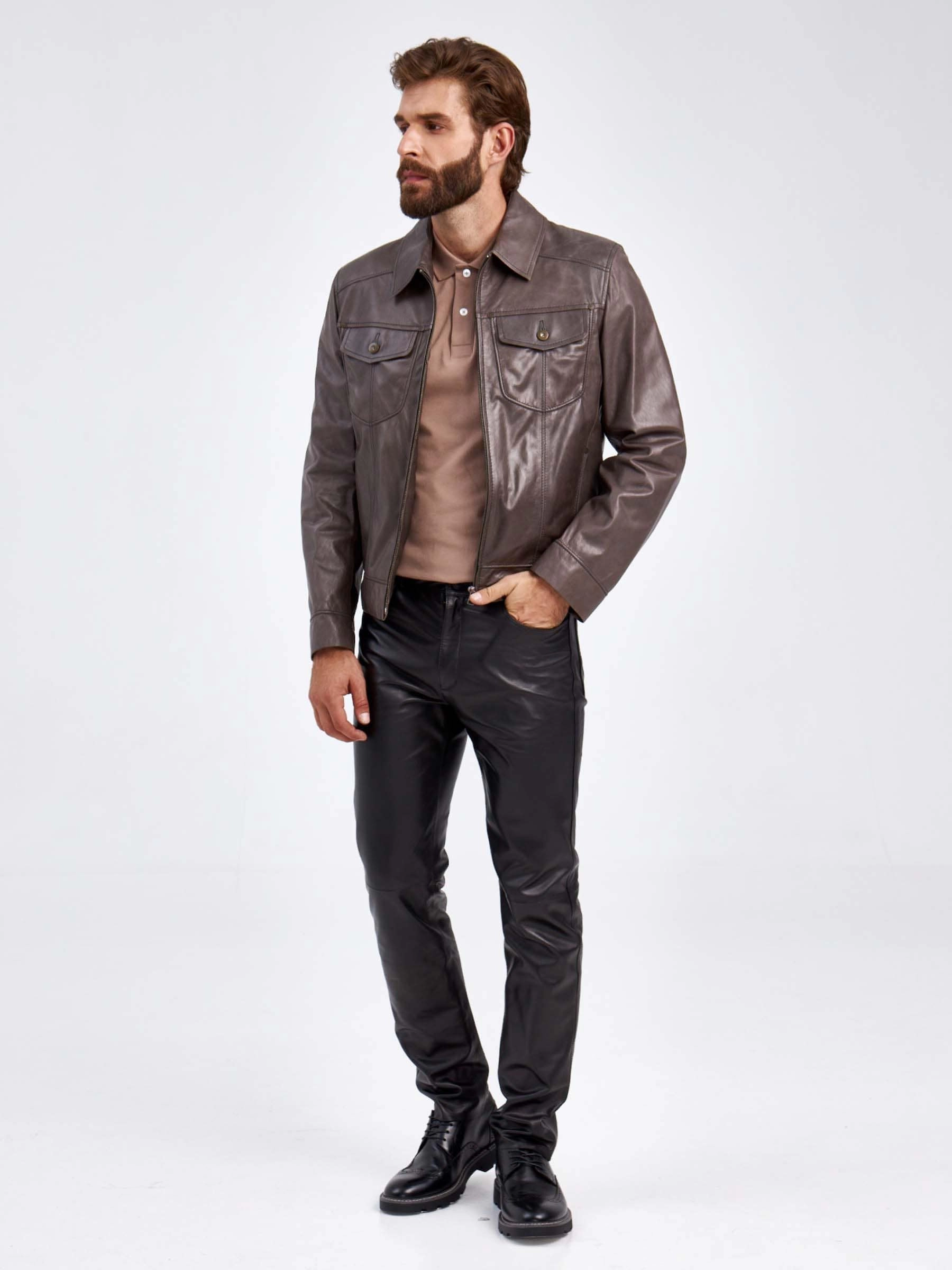 Создавая эту куртку мастера взяли за основу классическую джинсовую модель, но изменили материал. Для ее пошива наши мастера выбрали кожу пуллап. Полуприлегающий силуэт. Воротник- рубашечный. Изделие получилось стильным и комфортным. Идеальная посадка по фигуре.