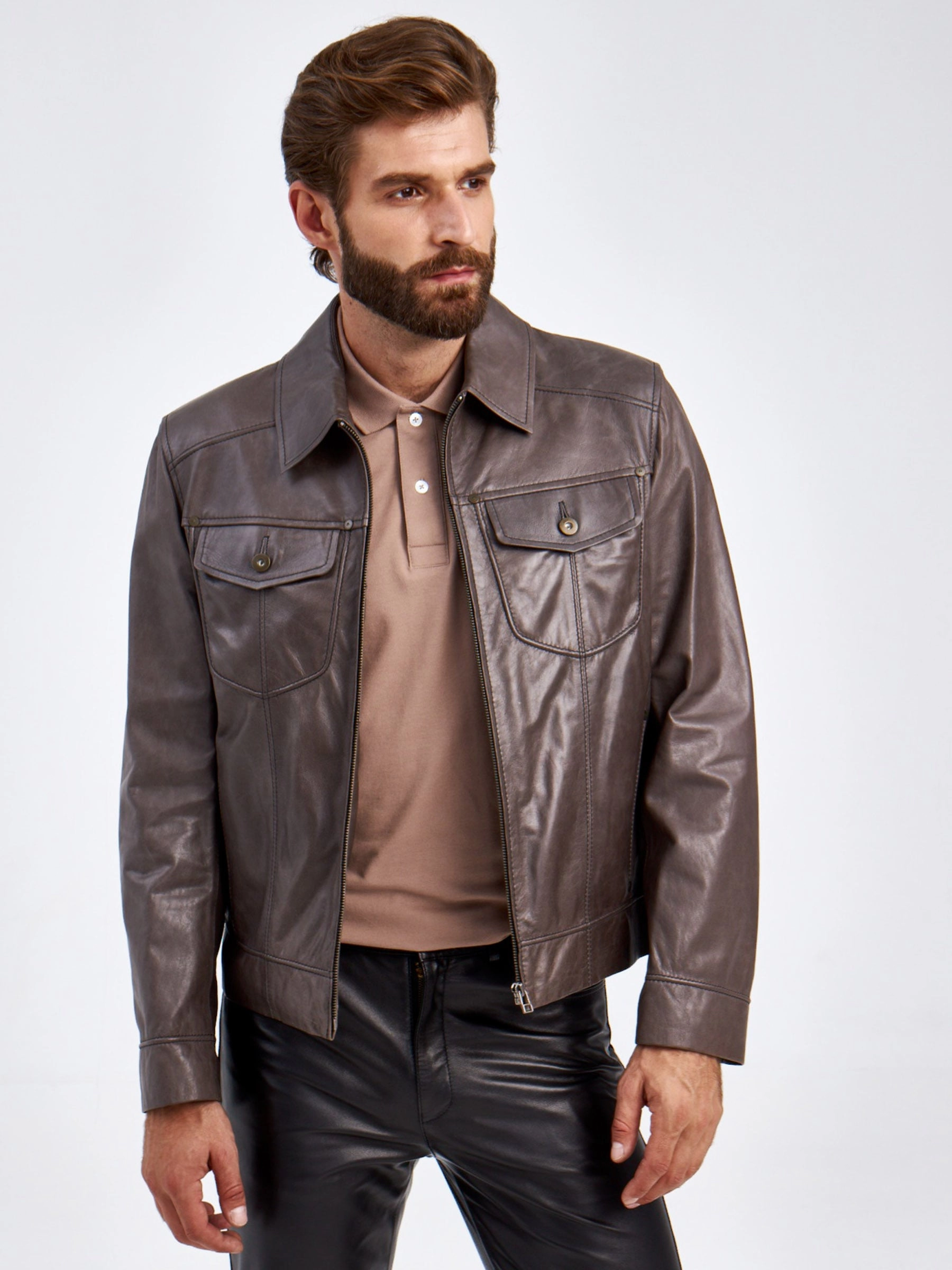 Короткая кожаная мужская куртка Ray, серая, размер 48, артикул 29290