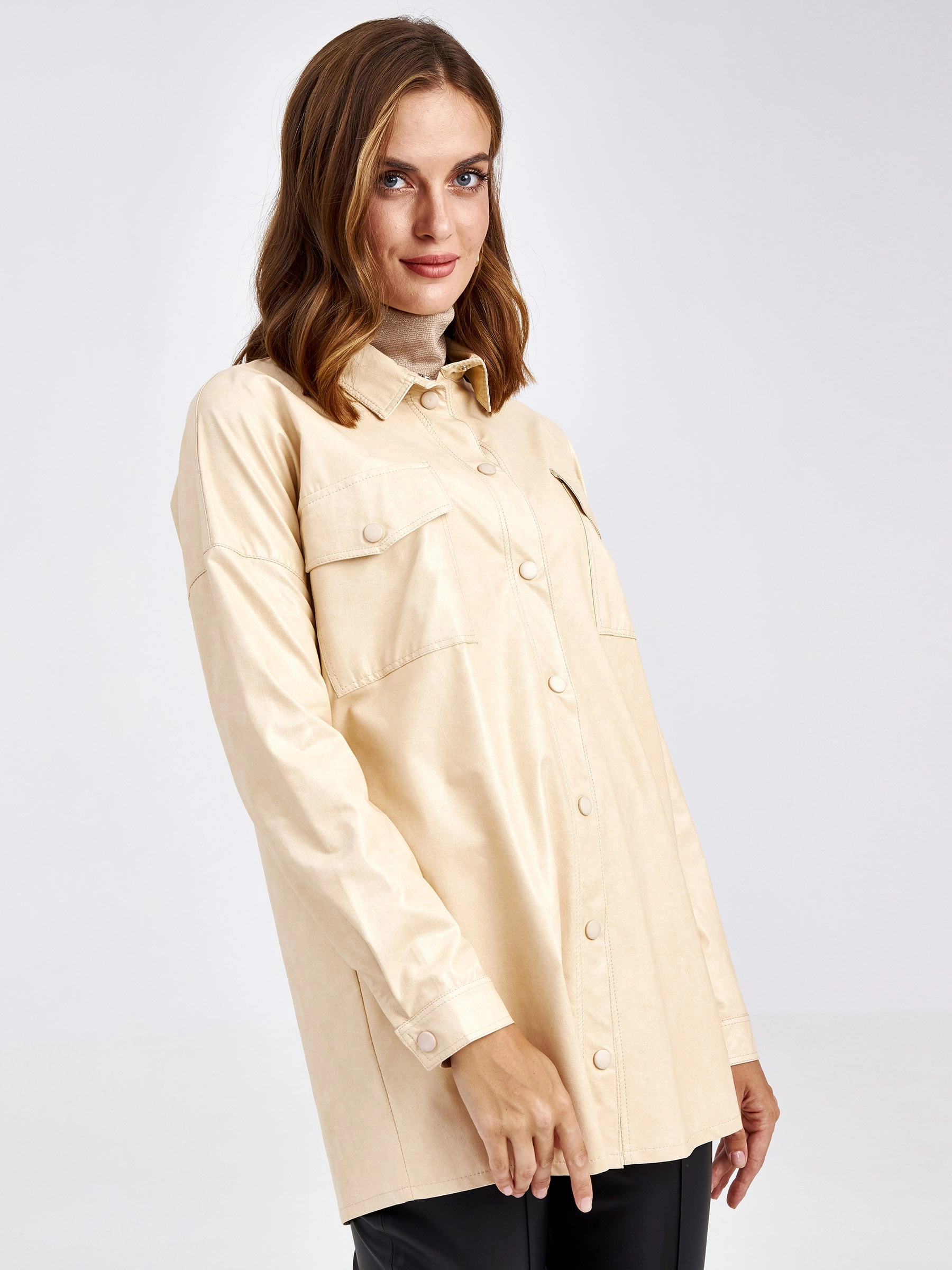 Женская кожаная рубашка из экокожи 4820785, молочная, размер 44, артикул 85720