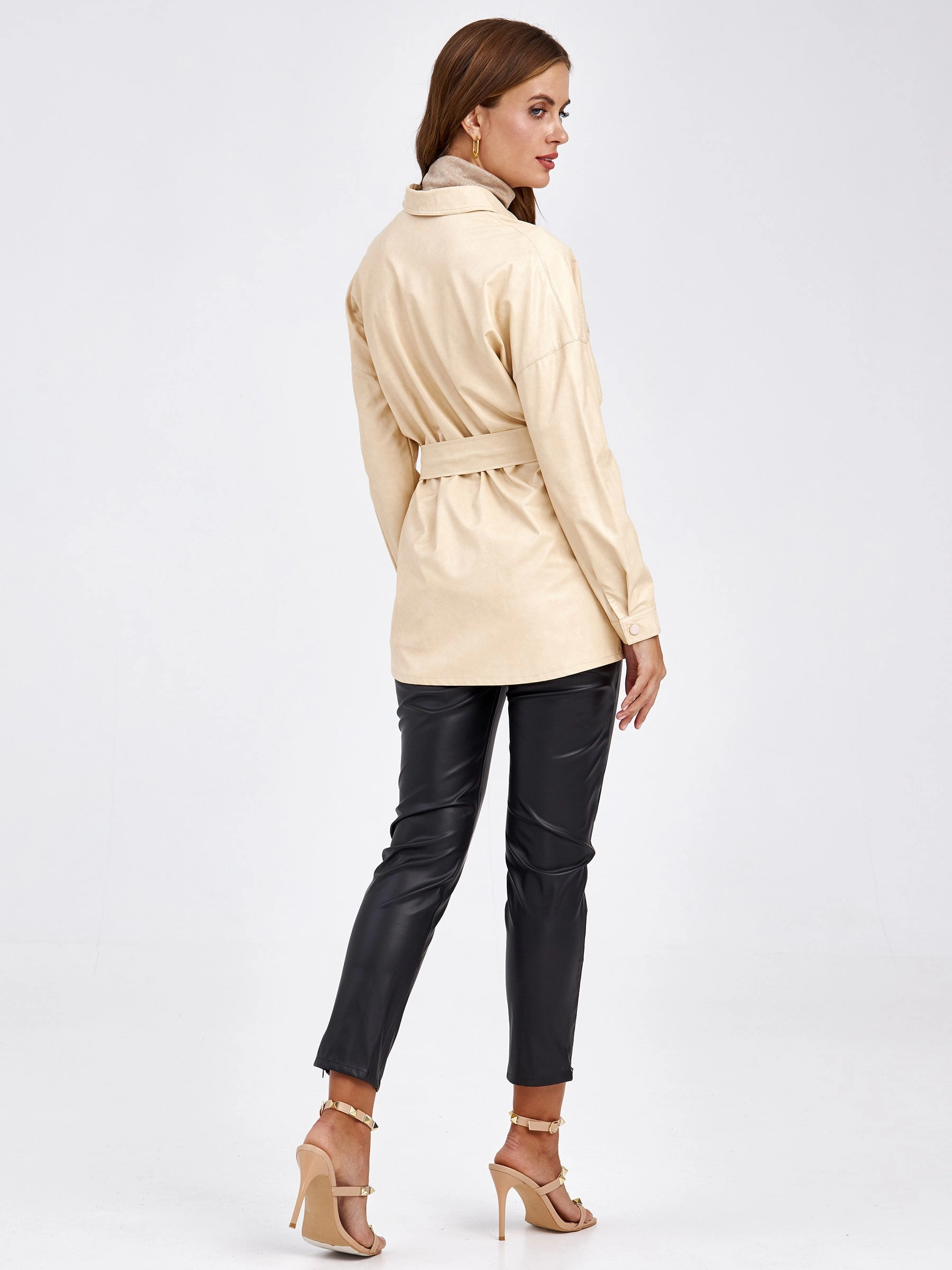 Товар женская кожаная рубашка из экокожи 4820785, молочная, размер 44, артикул 85720 выполнен из экокожи с застежкой кнопки. Рассчитан на сезон: демисезон. Длина изделия 73 см, силуэт прямой.