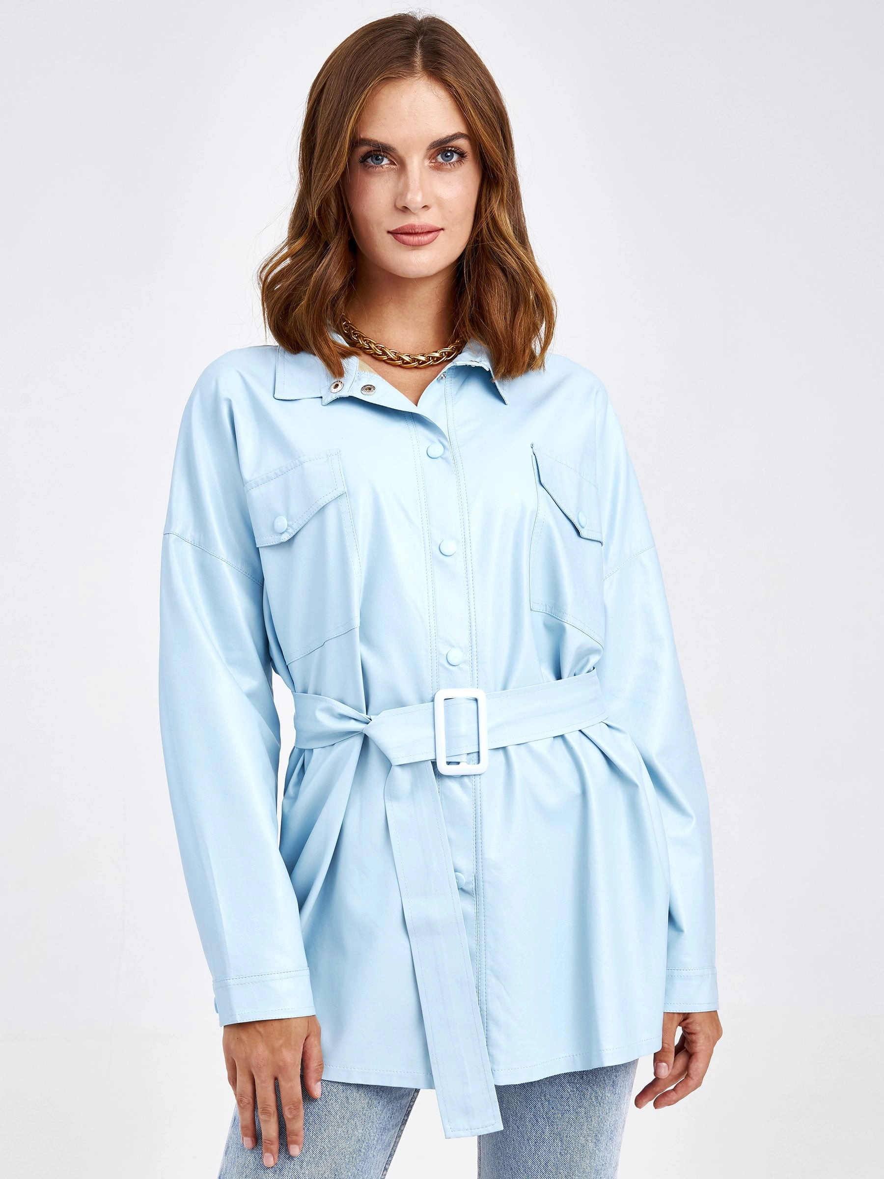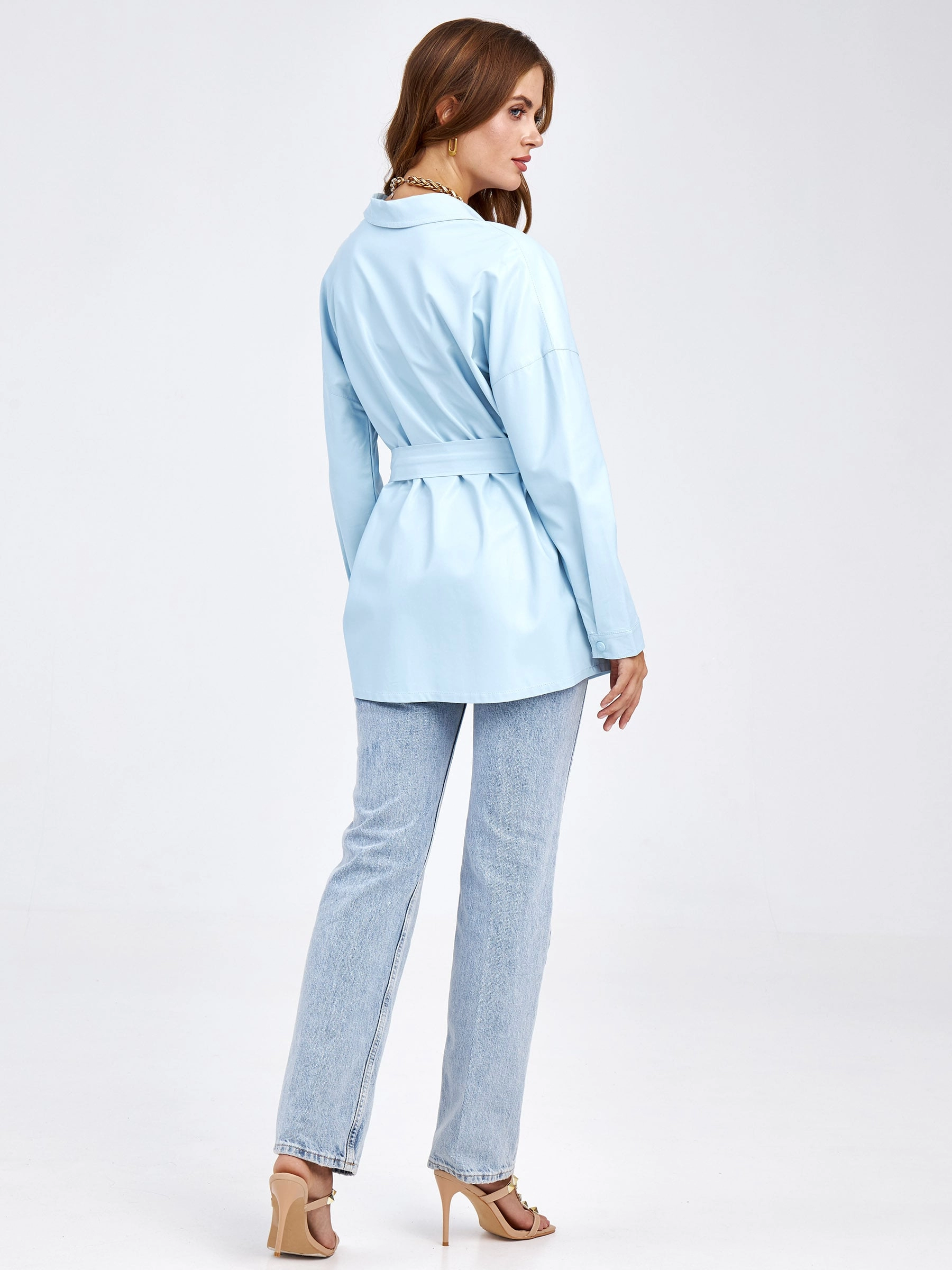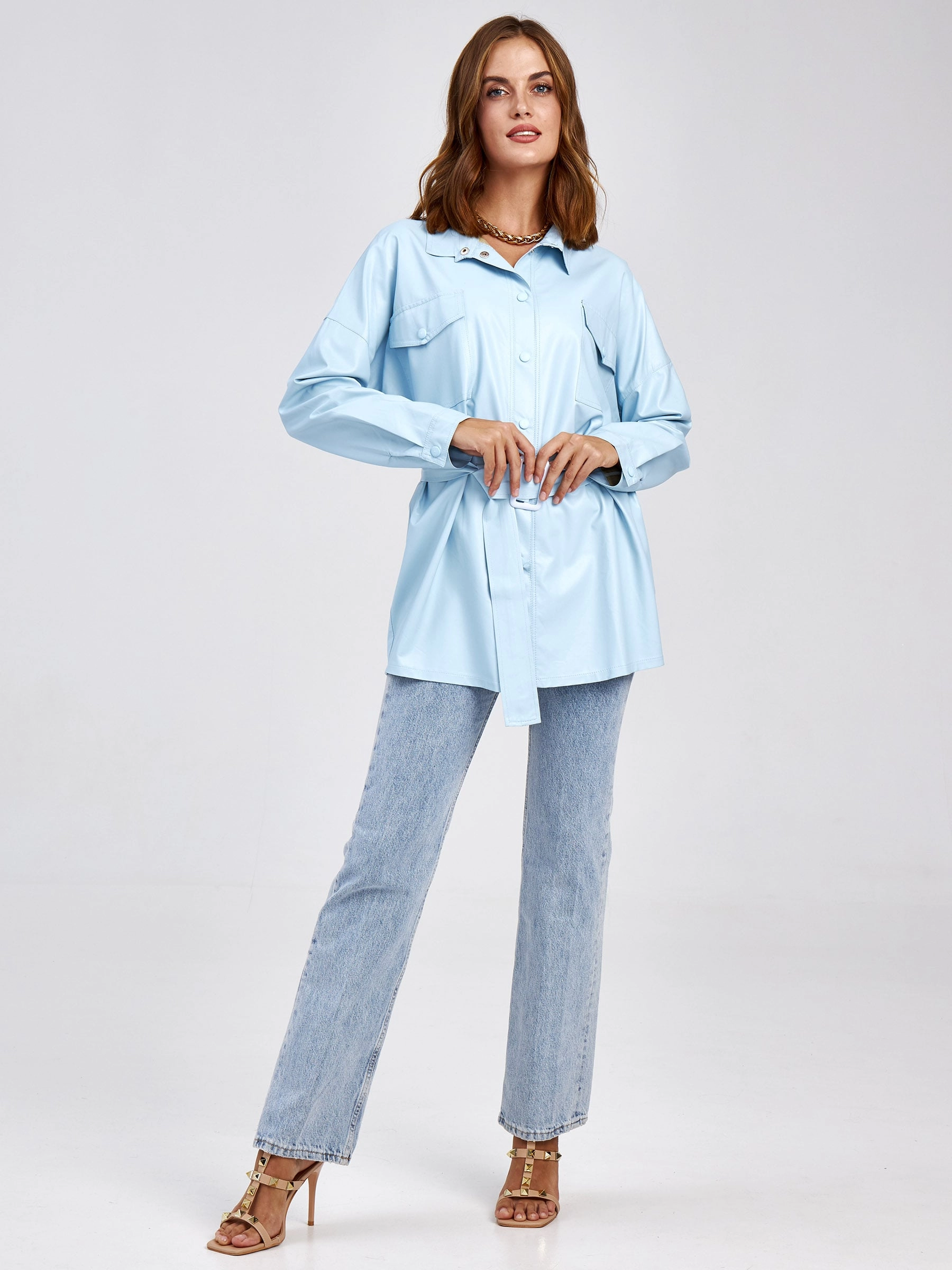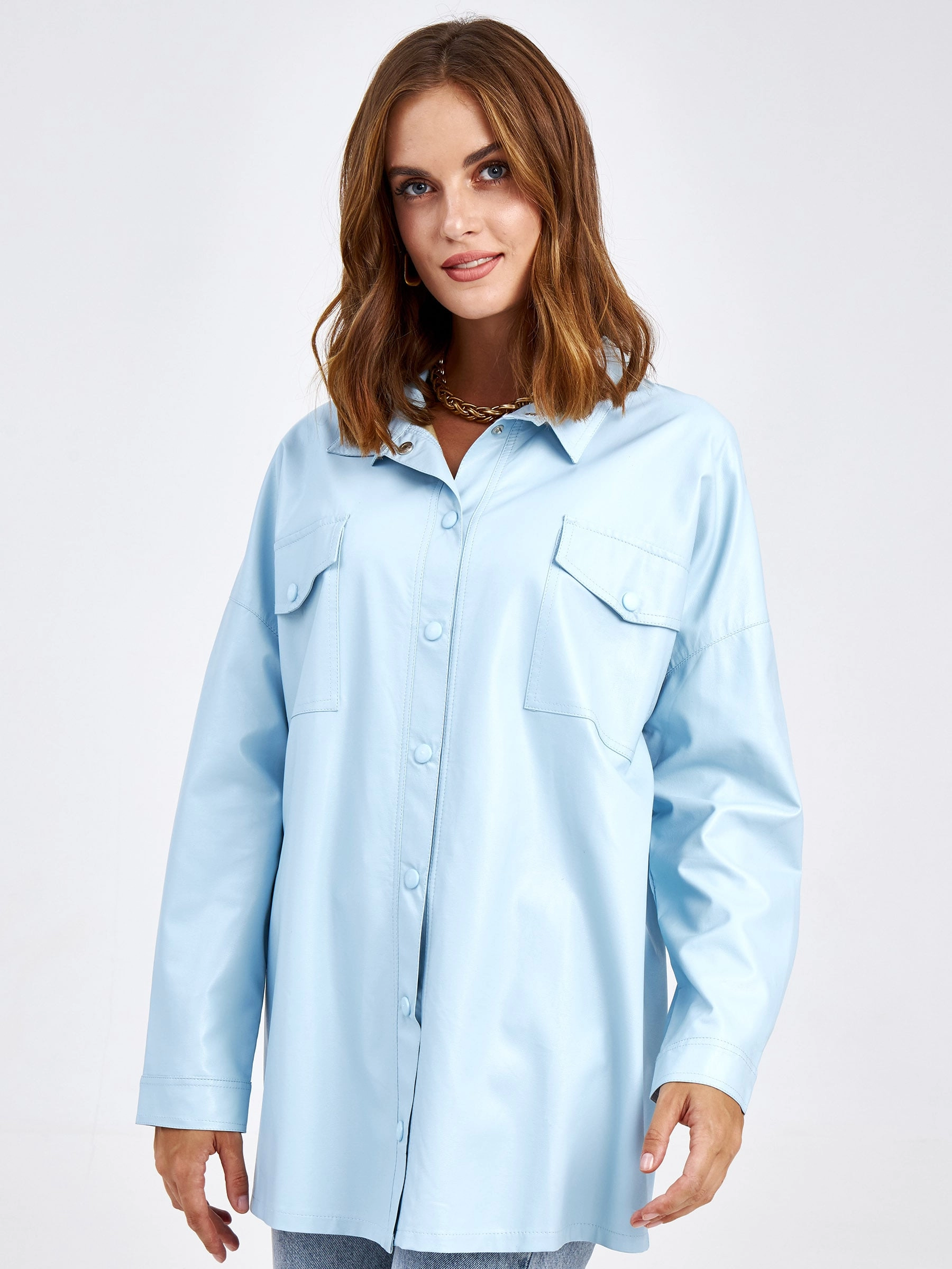 Кожаная рубашка женская из экокожи 4820791, голубая, размер 46, артикул 85690
