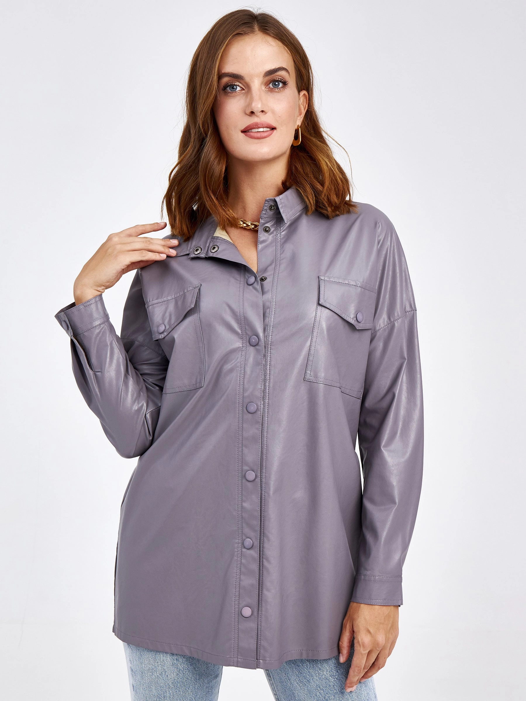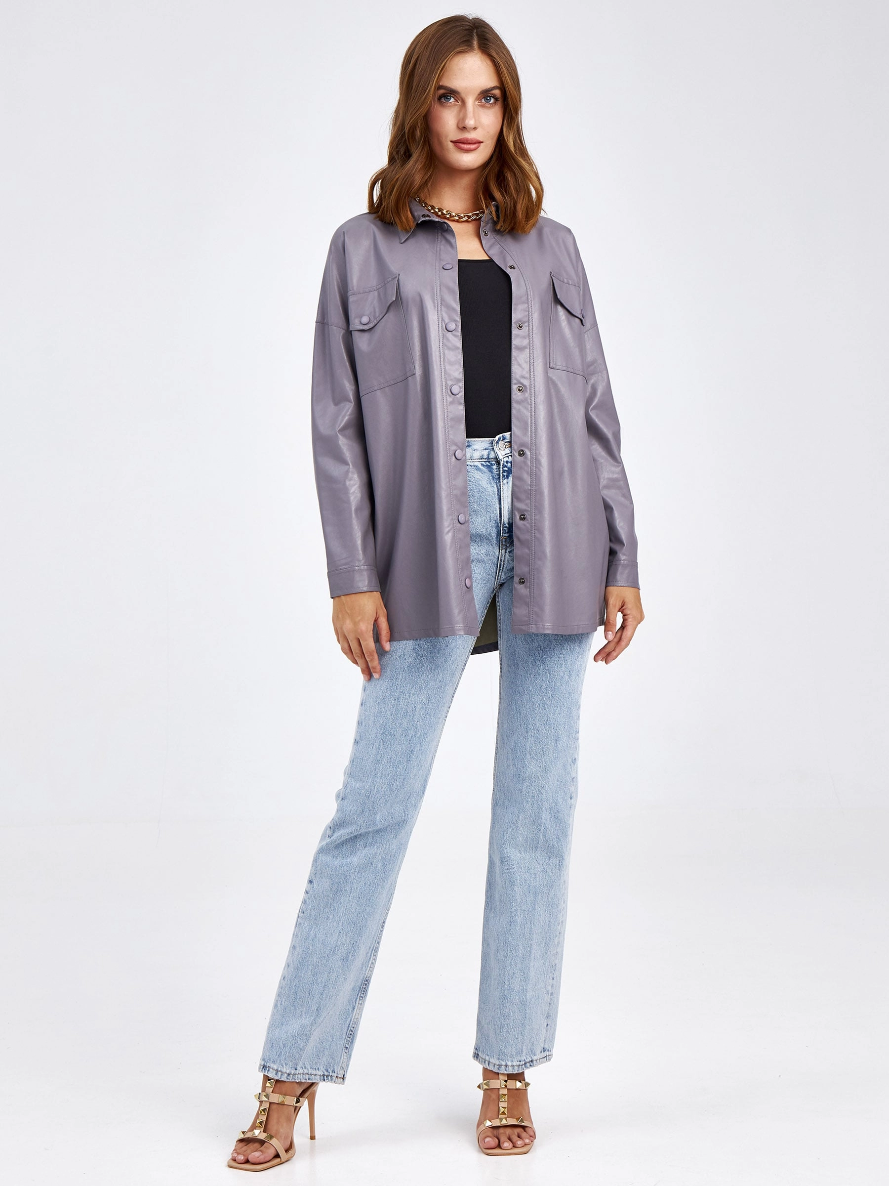 Товар кожаная рубашка женская из экокожи 4820795, серая, размер 44, артикул 85741 выполнен из экокожи с застежкой кнопки. Рассчитан на сезон: демисезон. Длина изделия 73 см, силуэт прямой.