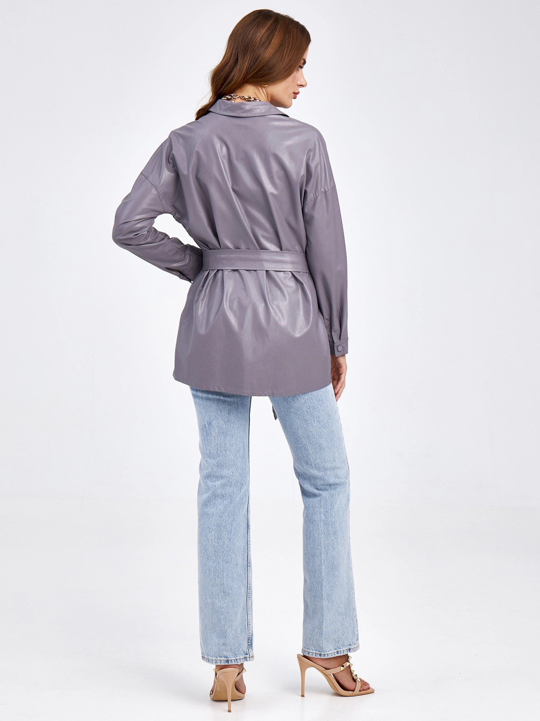 Кожаная рубашка женская из экокожи 4820795, серая, размер 44, артикул 85741