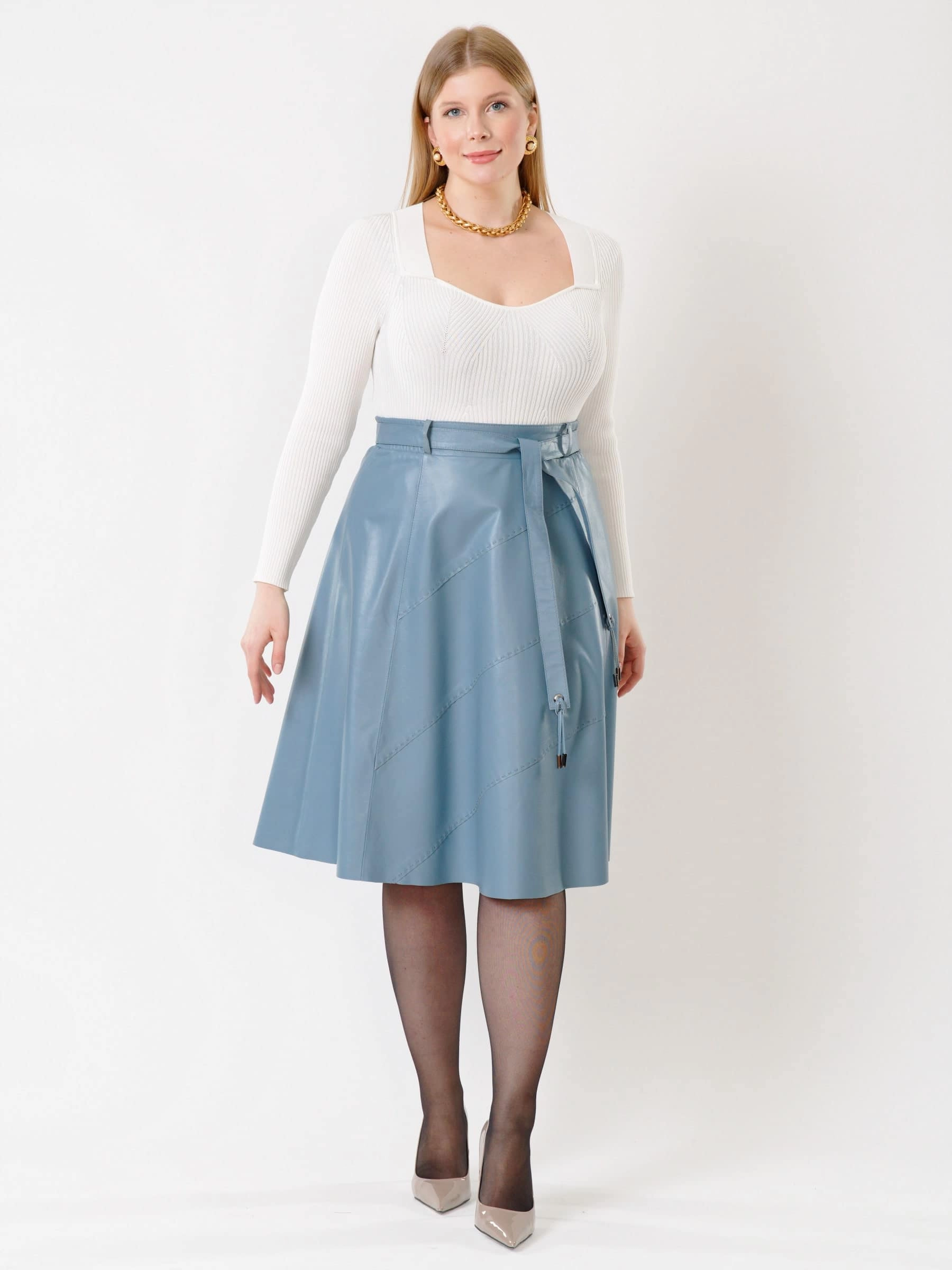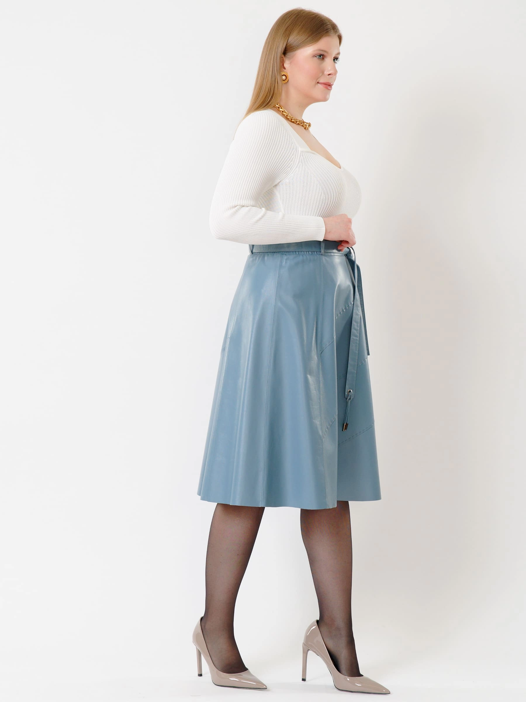 Товар кожаная расклешенная юбка из натуральной кожи 01рс, голубая, размер 46, артикул 85451 выполнен из натуральной кожи с застежкой молния. Рассчитан на сезон: демисезон. Длина изделия 70 см, силуэт расклешенный.